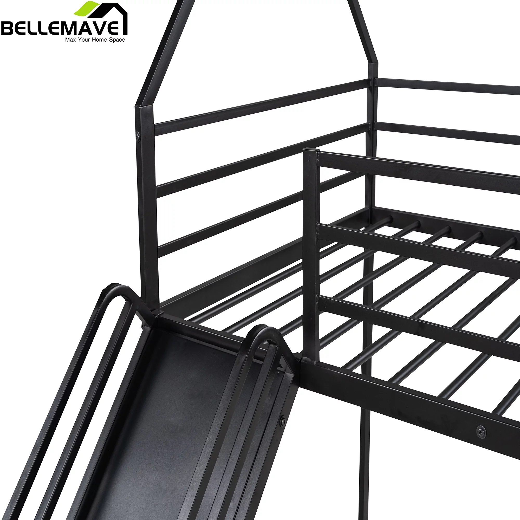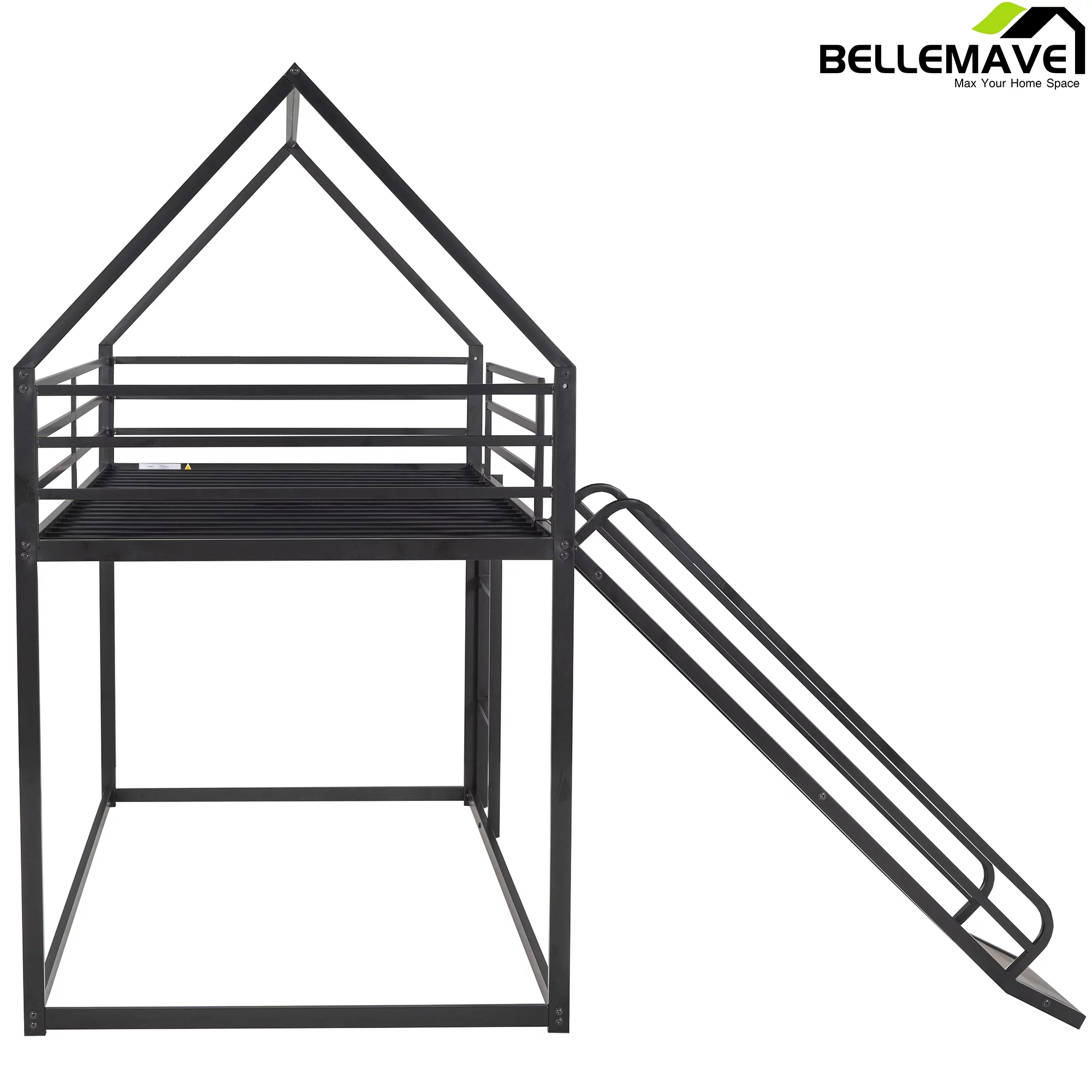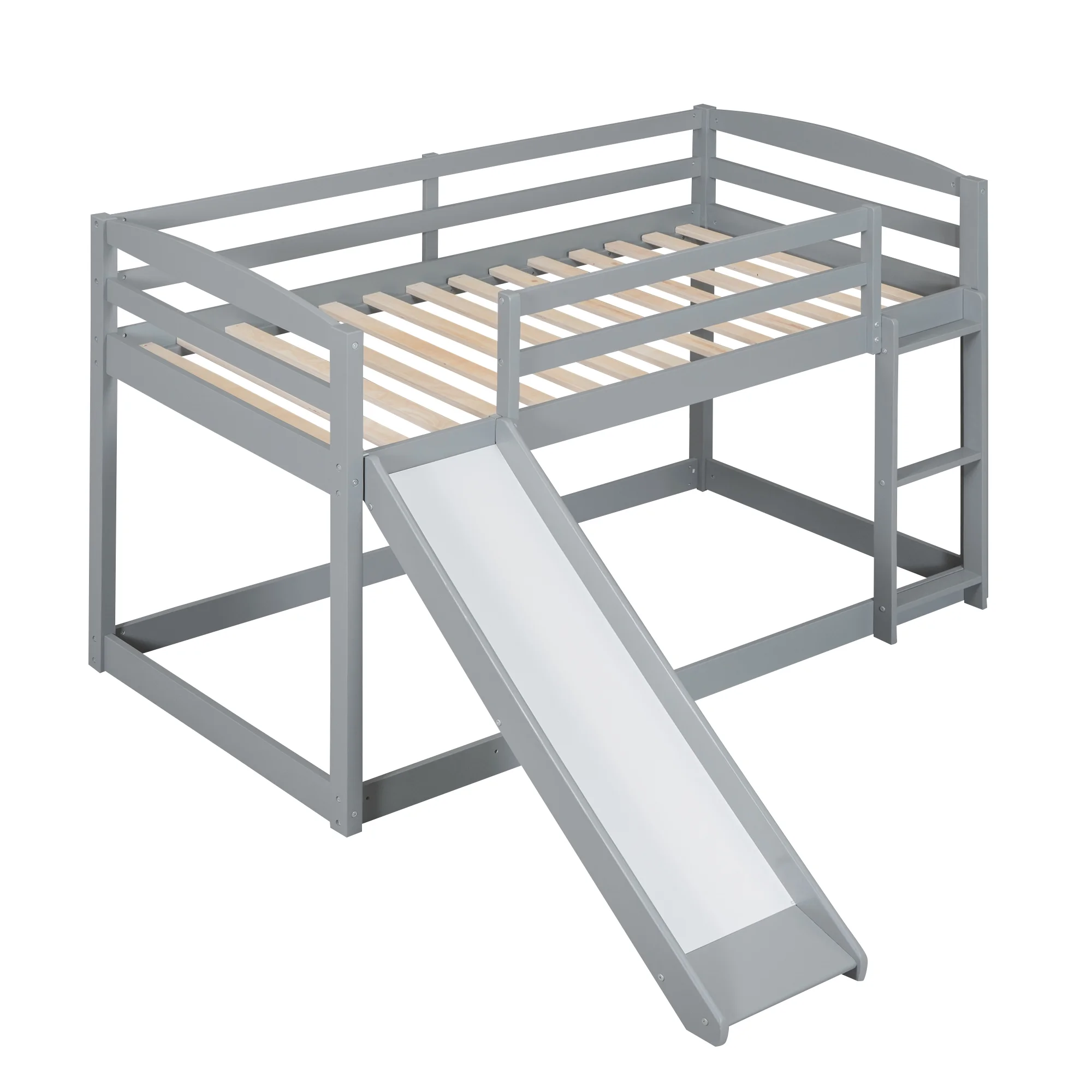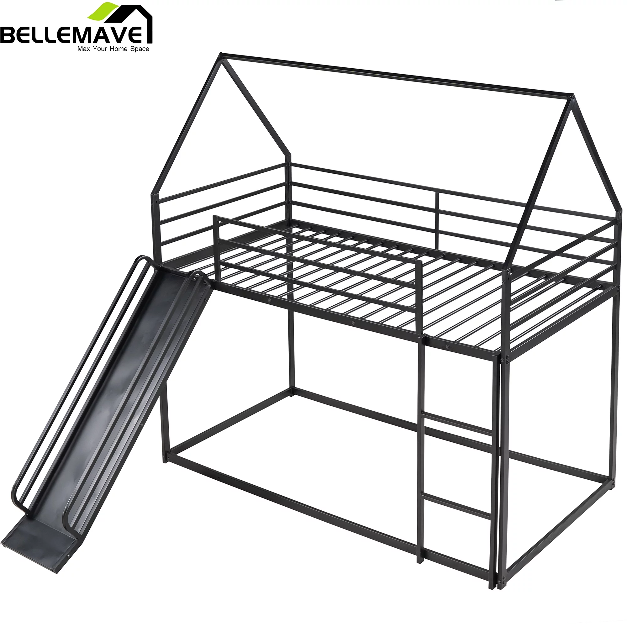Bellemave Bunk Bed with Slide, Wood Twin Over Twin House Bed Frame with Ladder for Kids Teens(Gray)