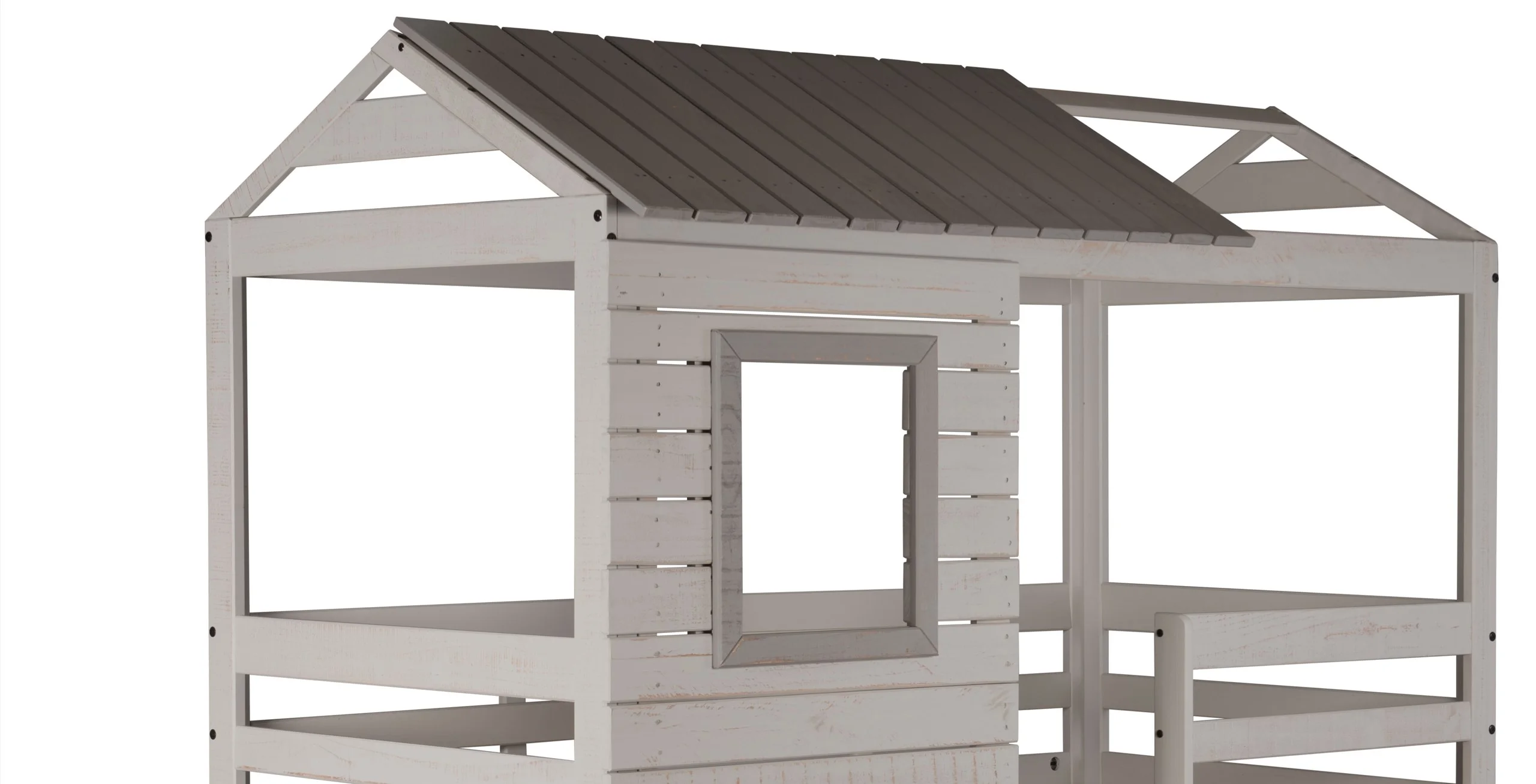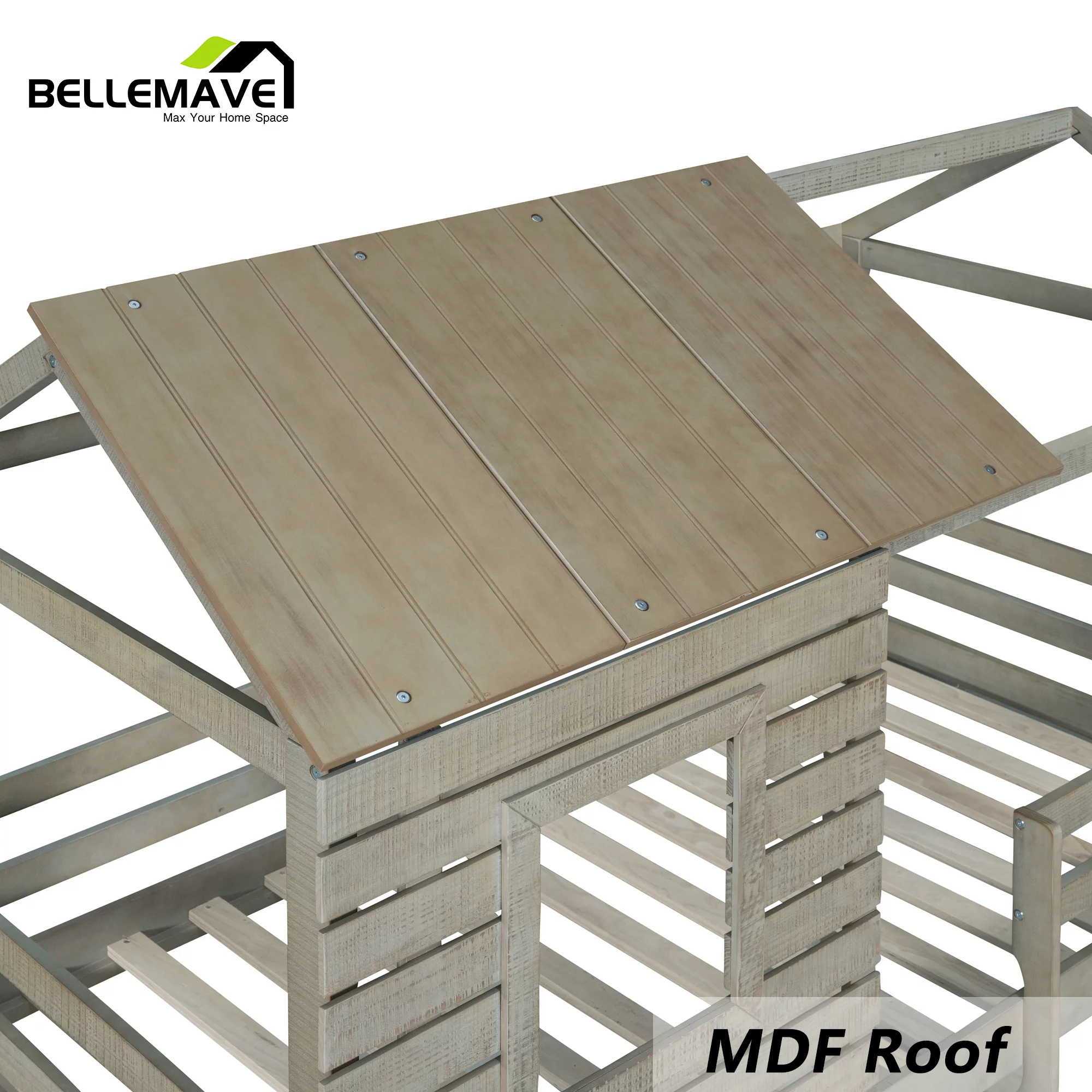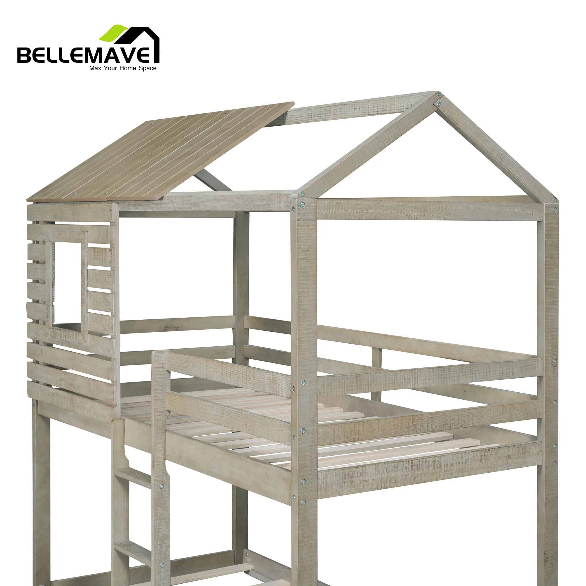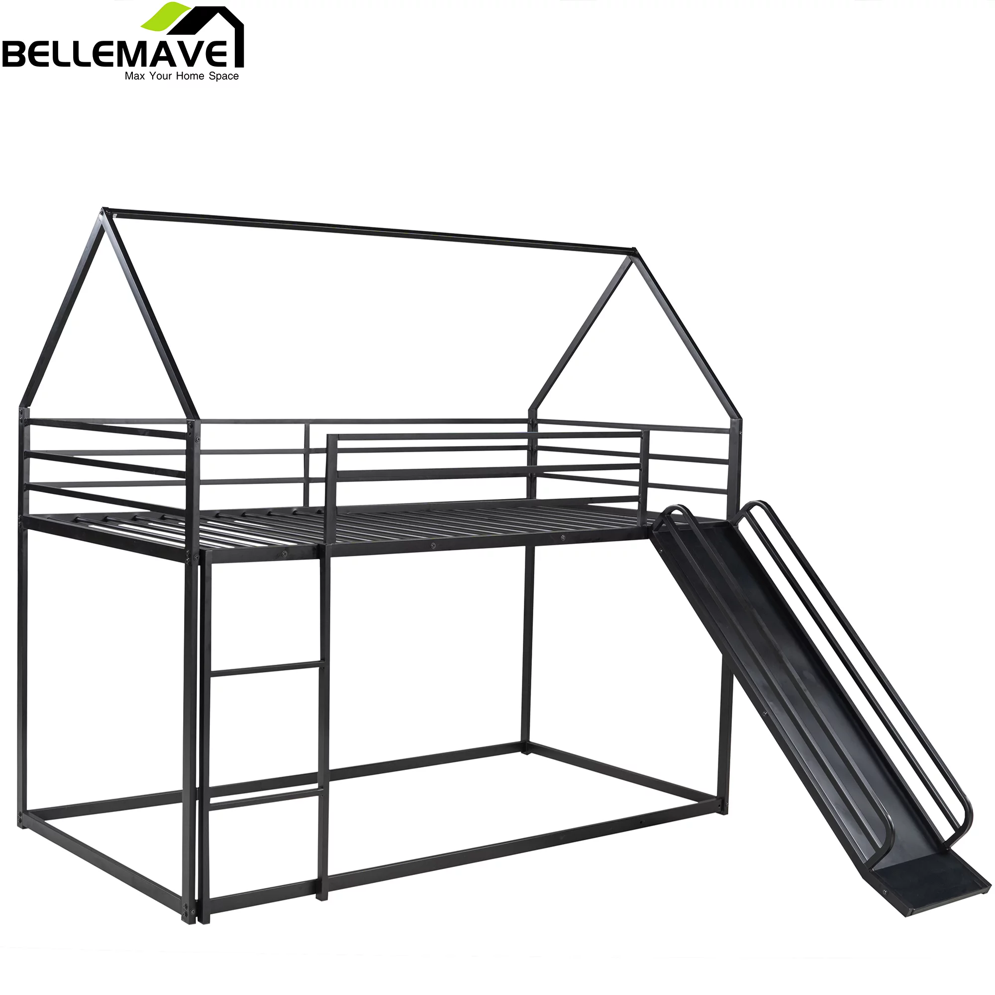 Bellemave Bunk Bed with Slide, Wood Twin Over Twin House Bed Frame with Ladder for Kids Teens(Gray)