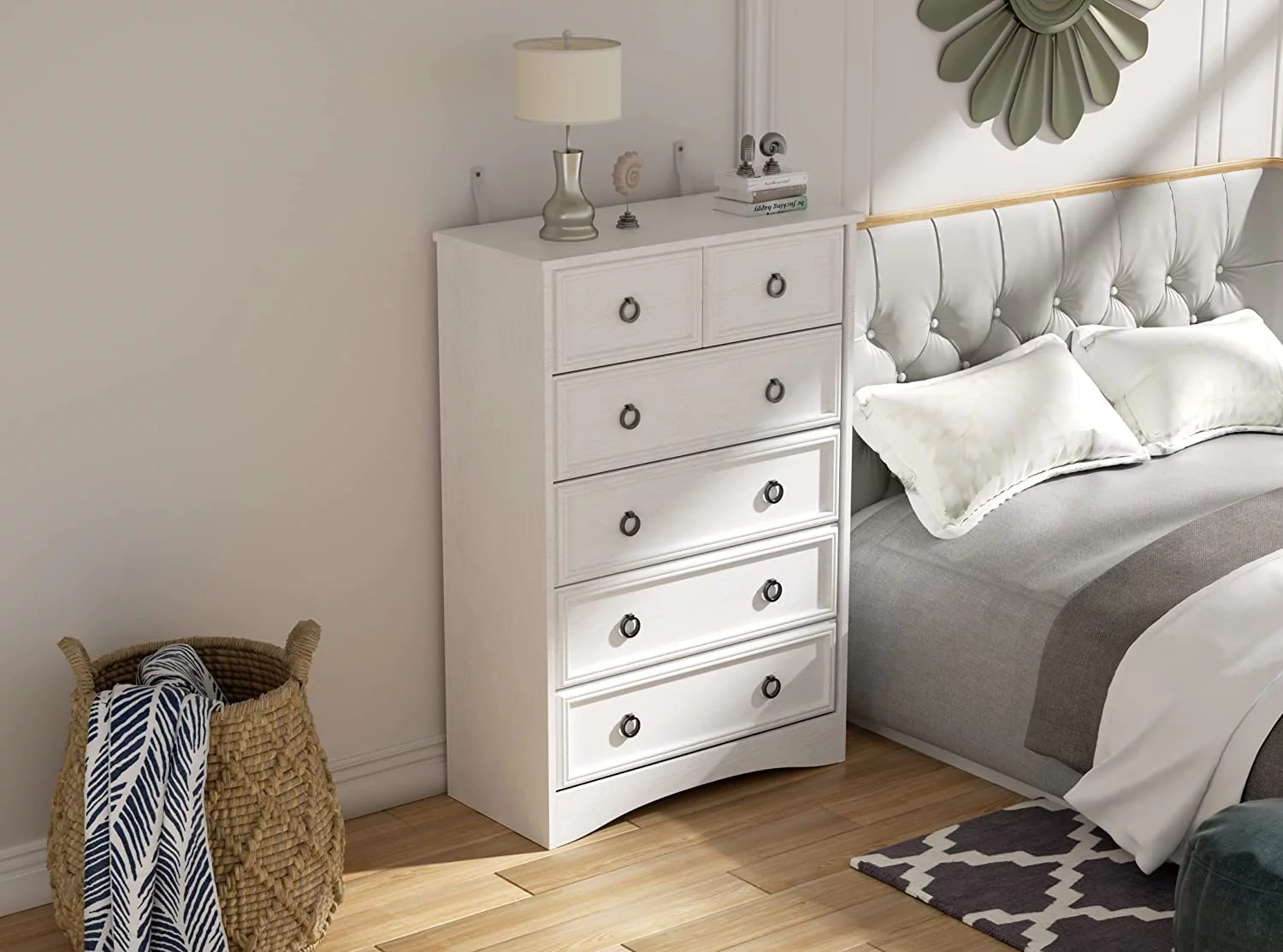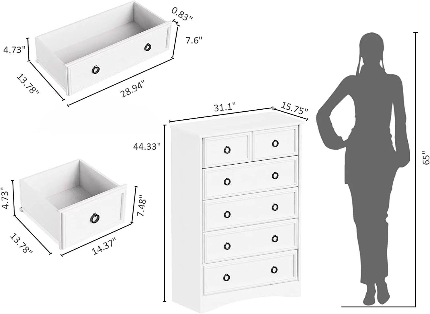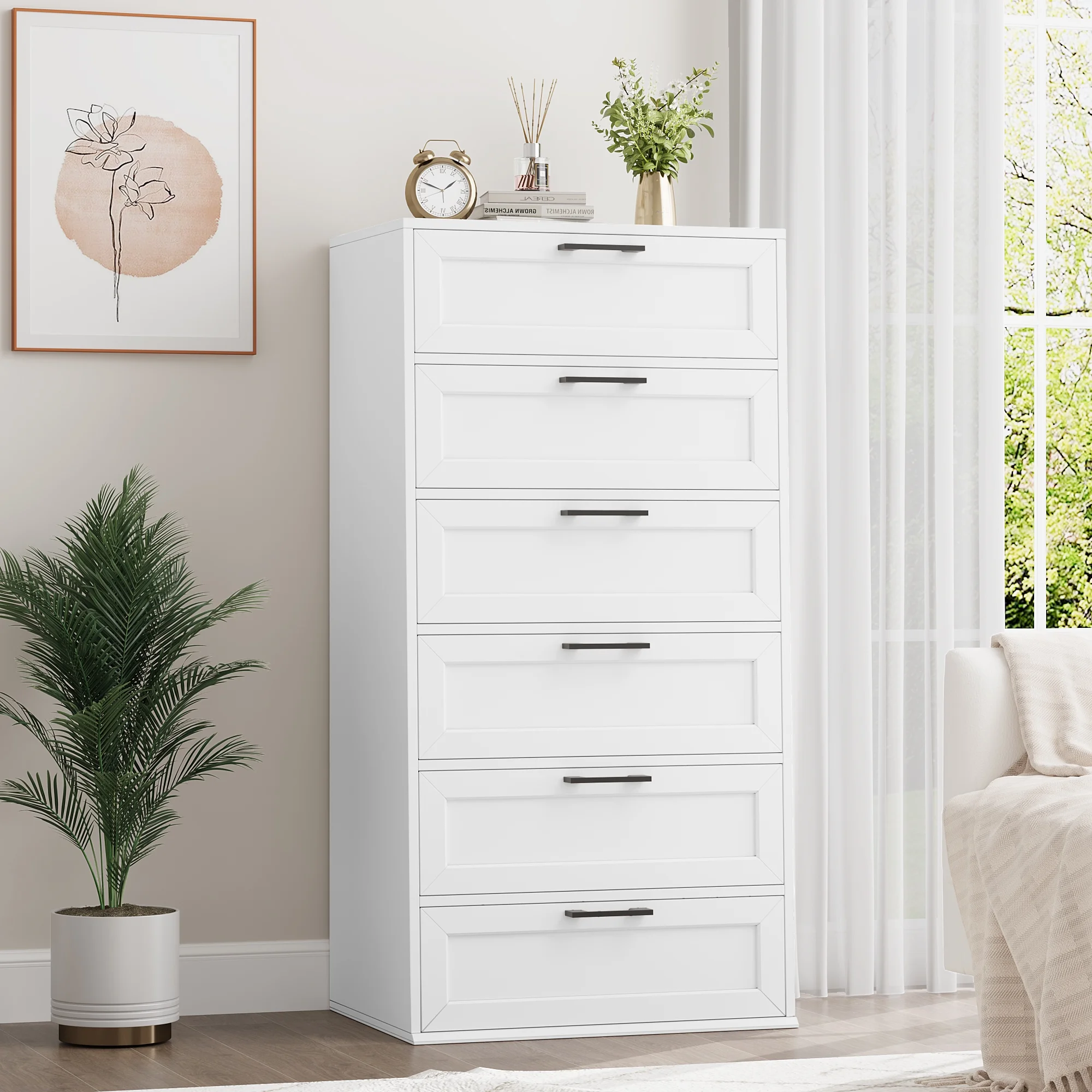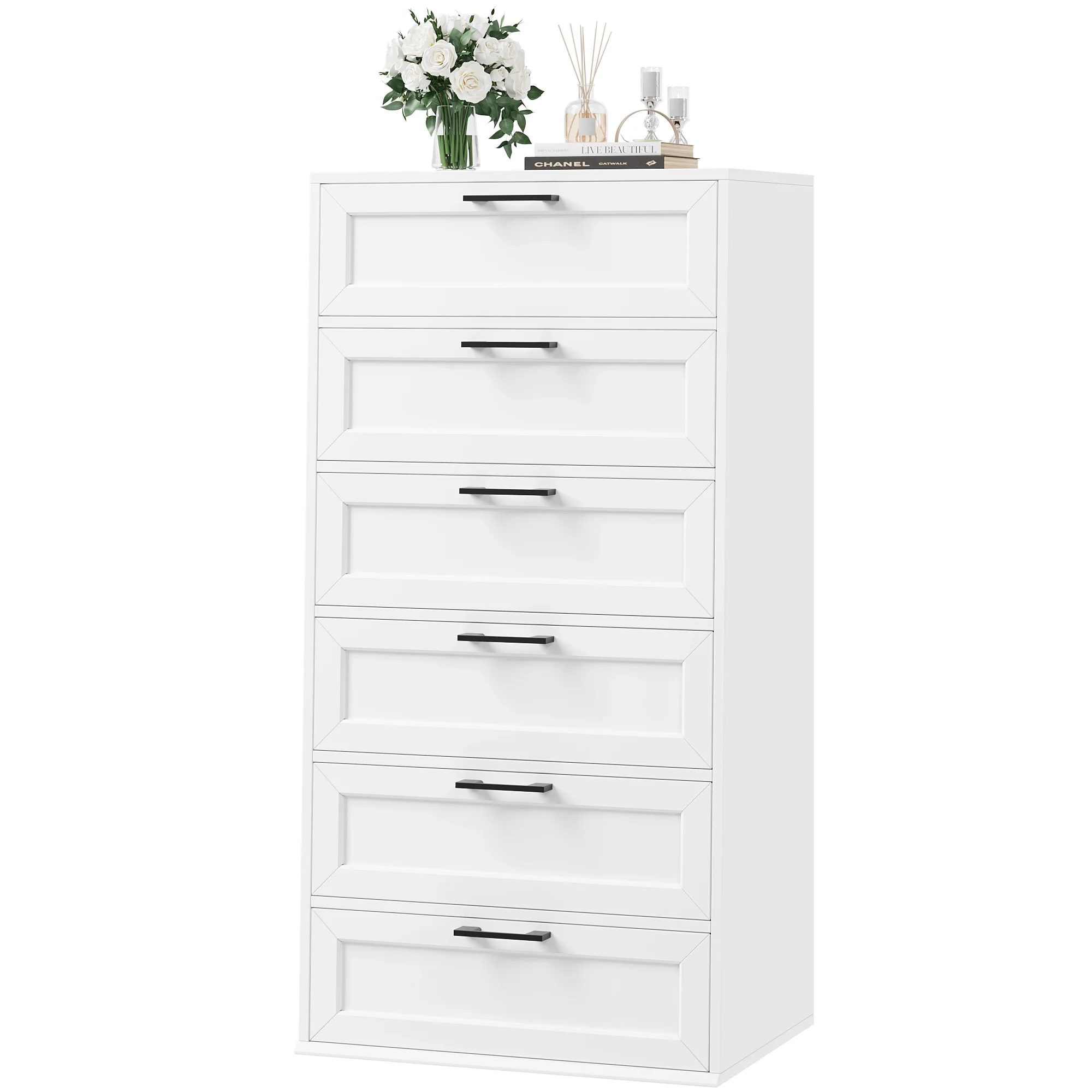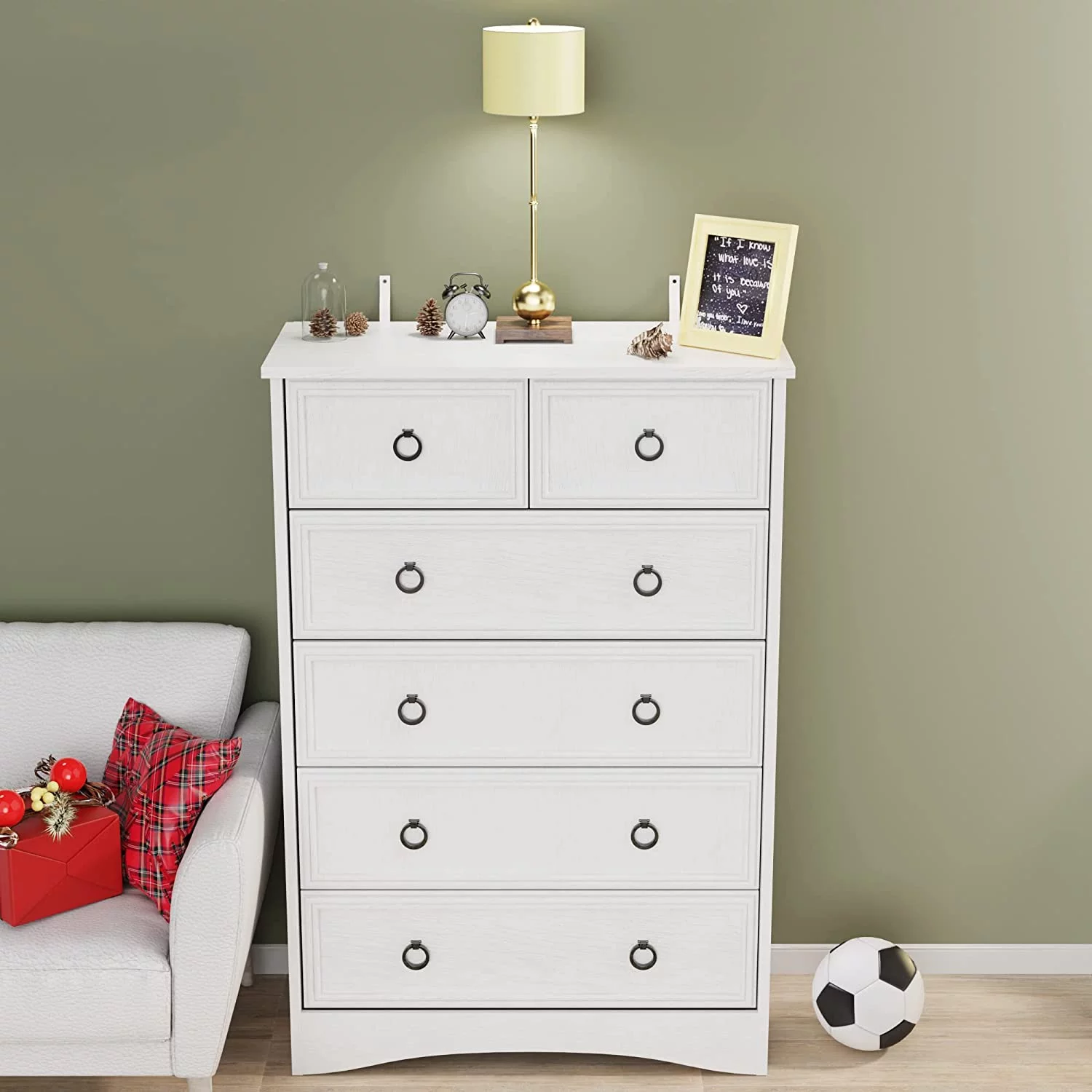 Homfa 6 Drawer White Dresser, Tall Storage Cabinet Chest of Drawer for Bedroom Living Room