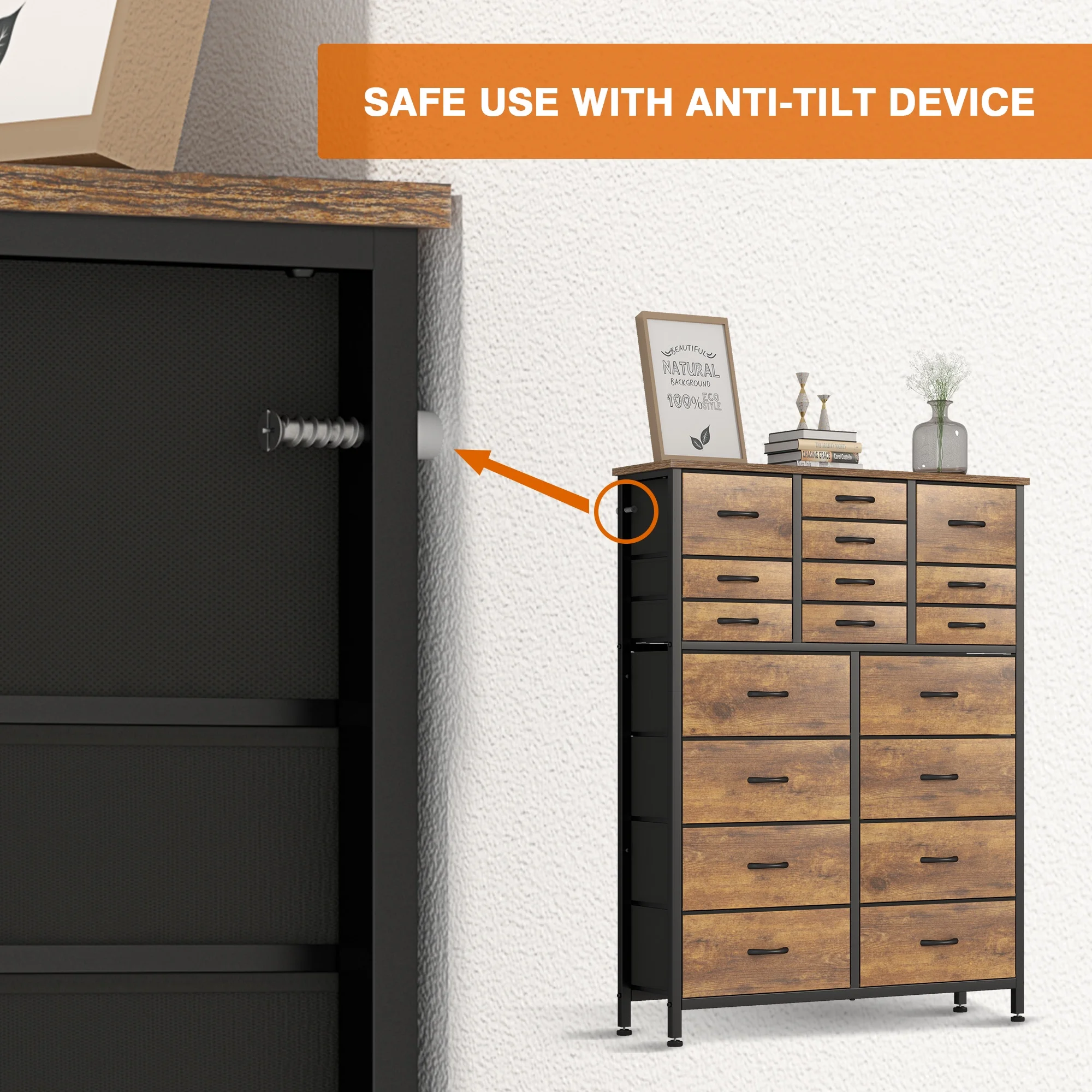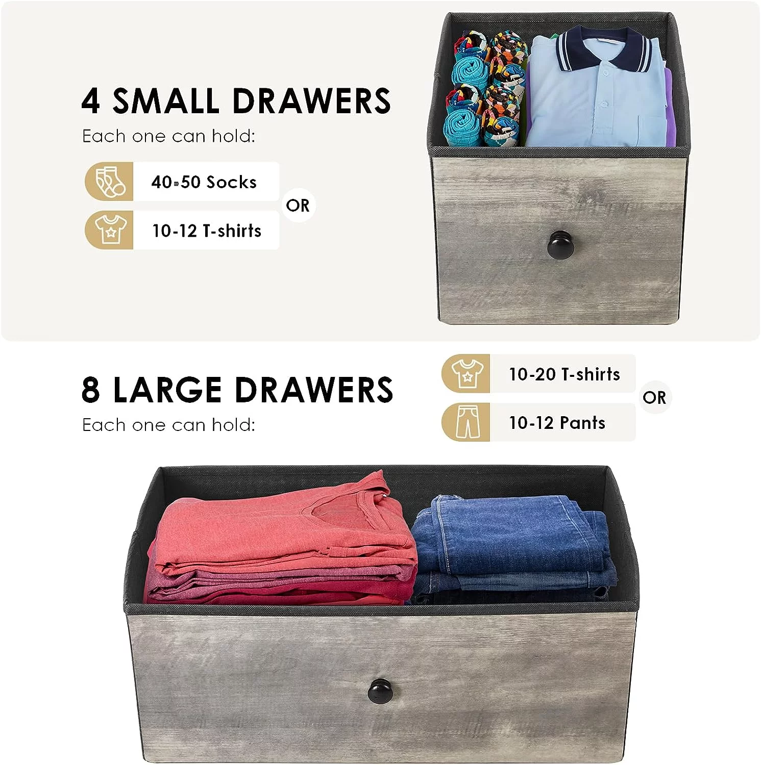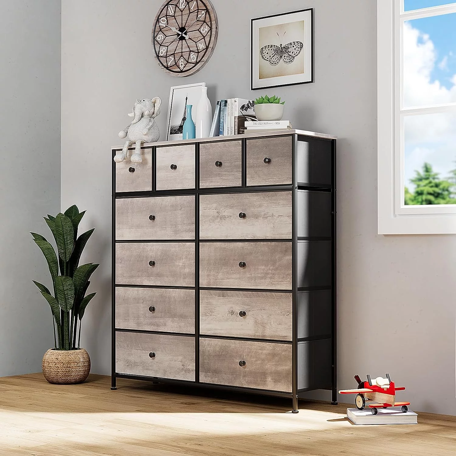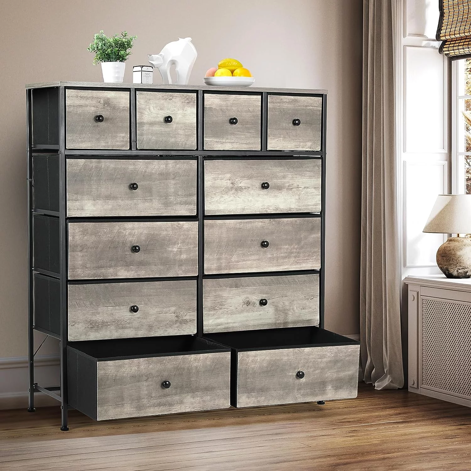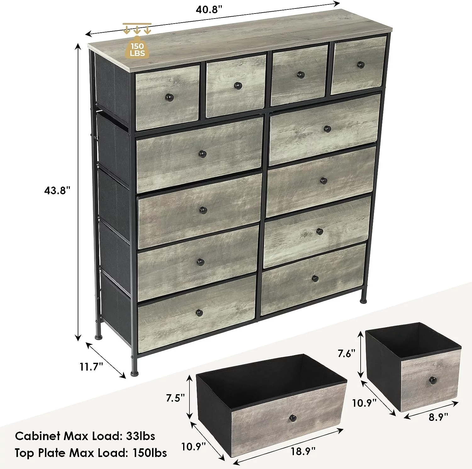 Arlopu Tall Dresser for Bedroom with 12 Drawer, Vertical Dresser with Fabric Storage Organizer Units Tall Chest, 5-Layer