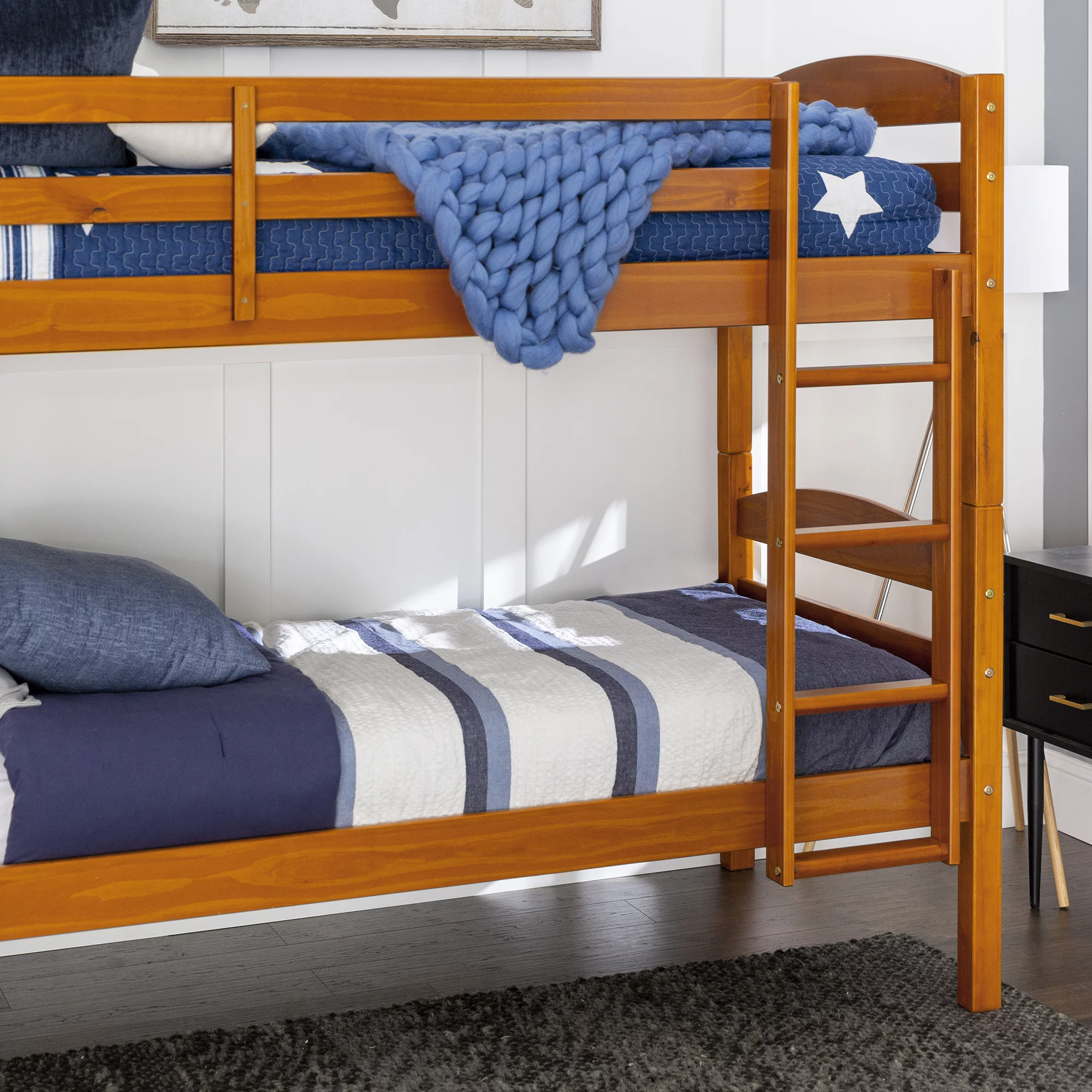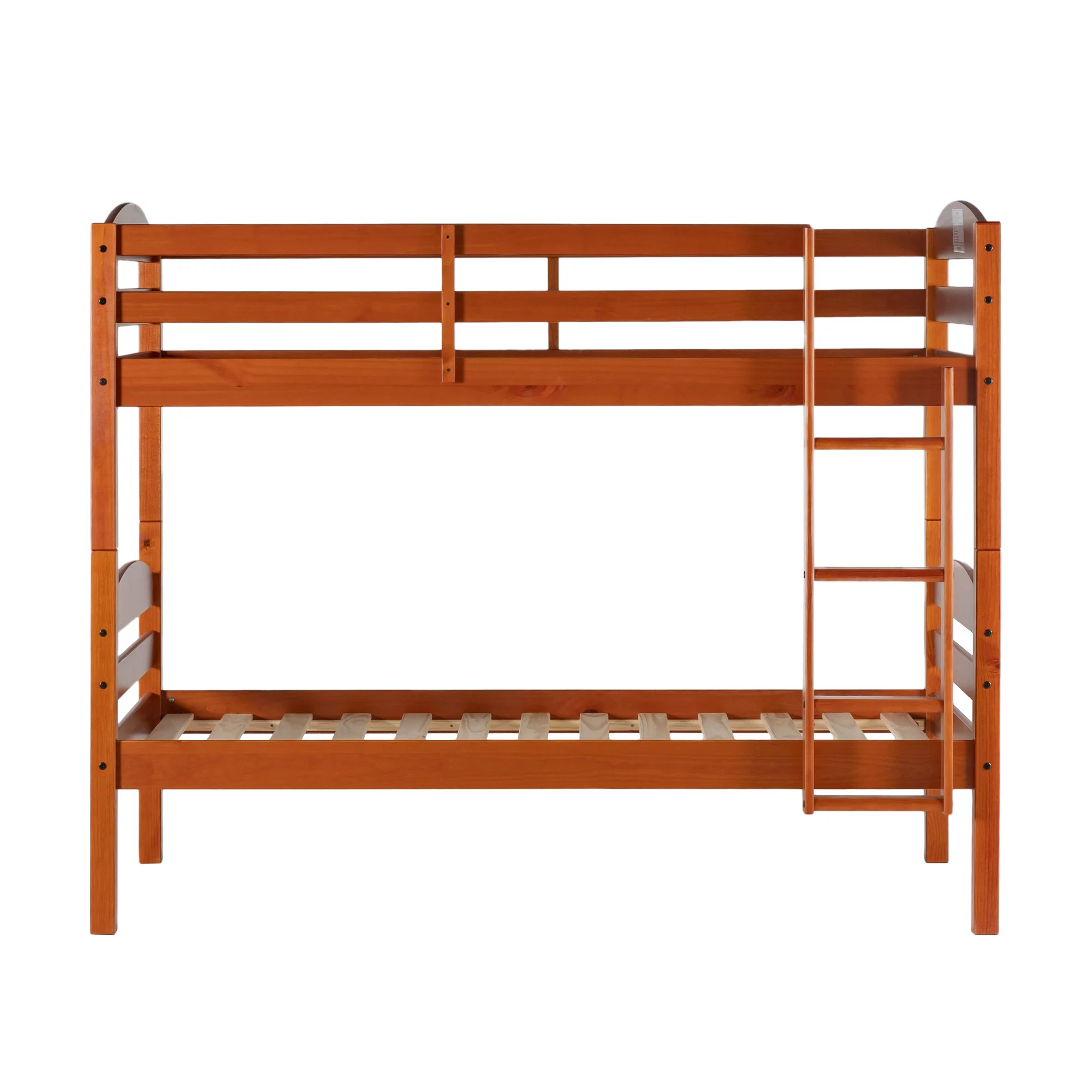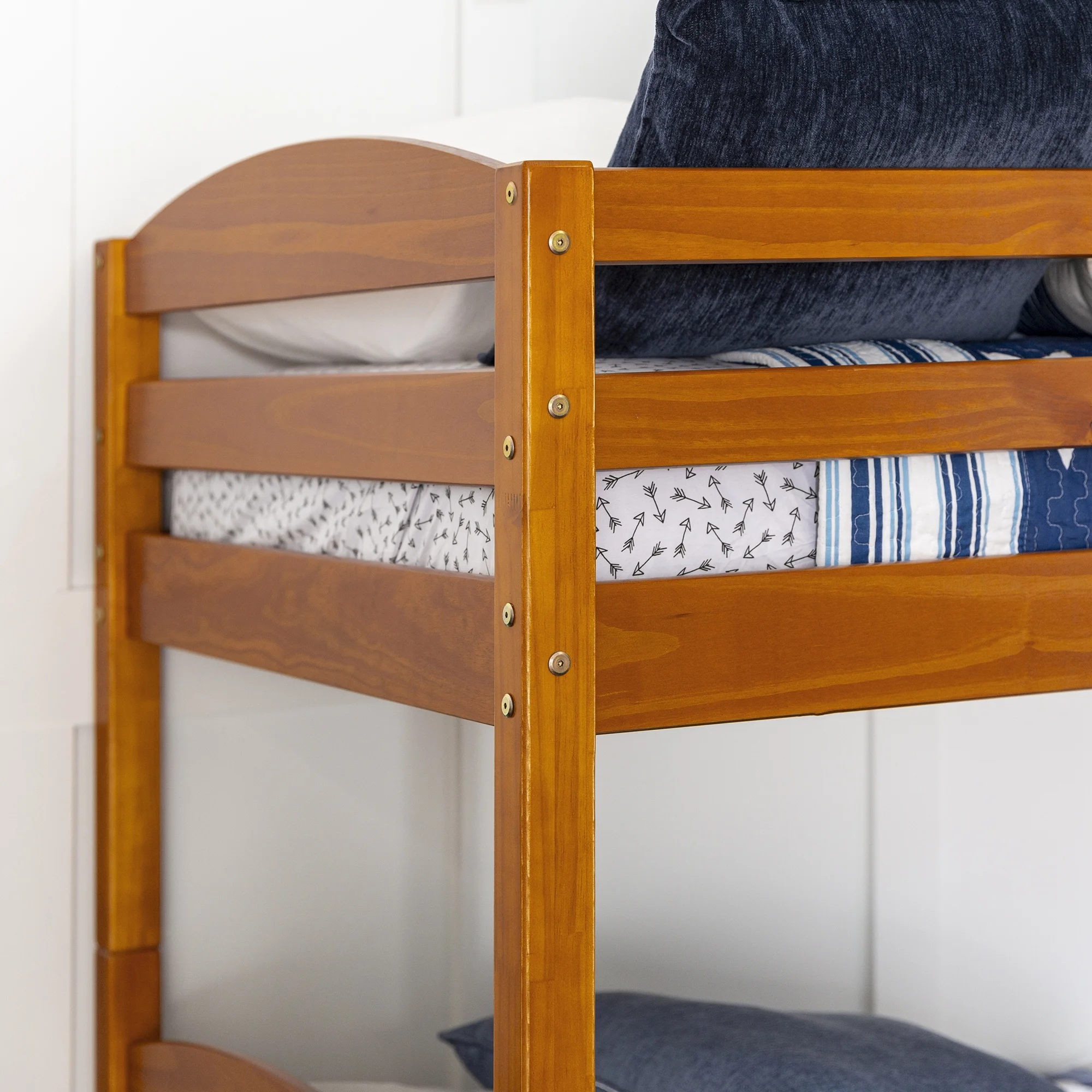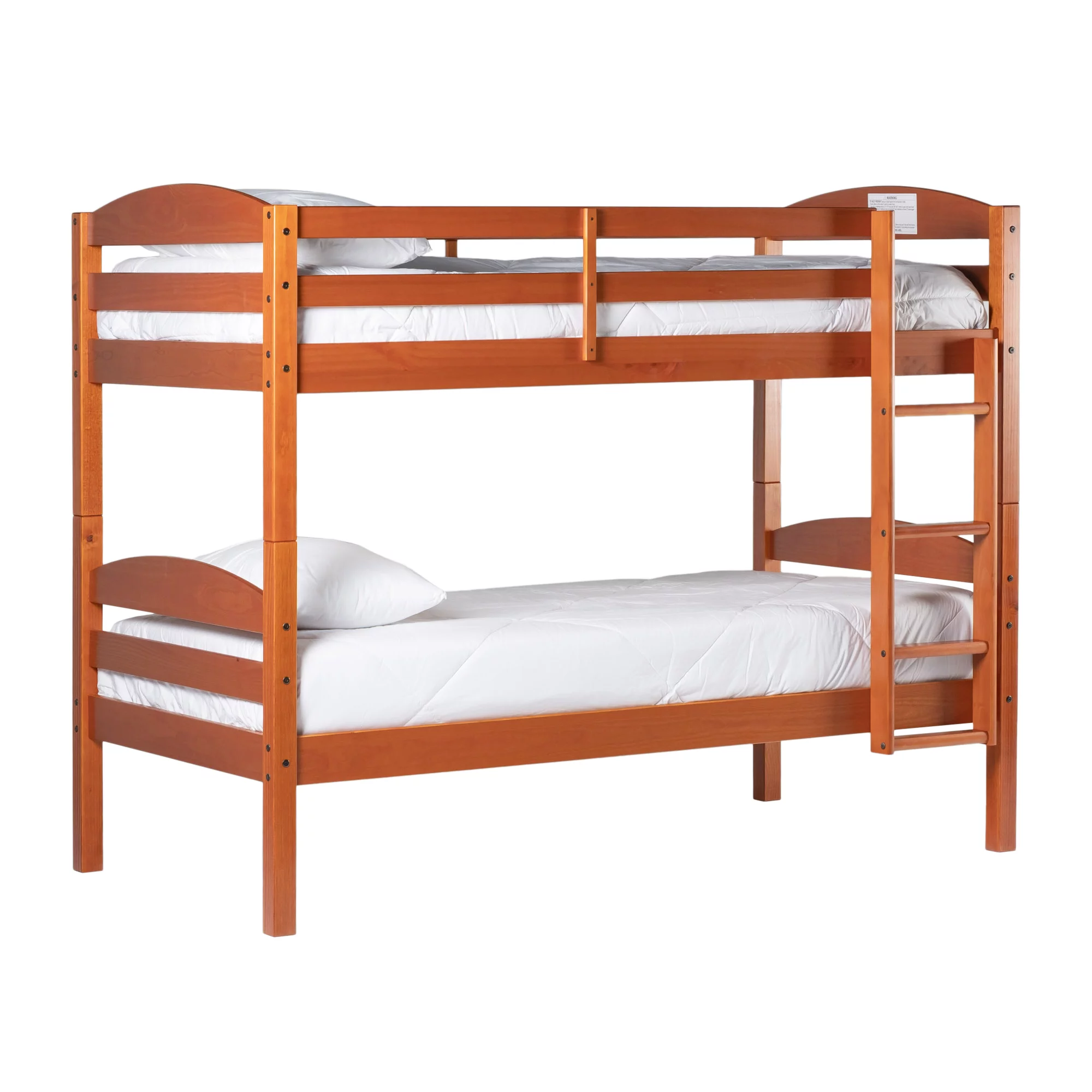 Max & Lily Classic Twin over Twin Bunk Bed for Kids, Solid Wood Low Bunk Beds with Ladder for Small Room, Pecan