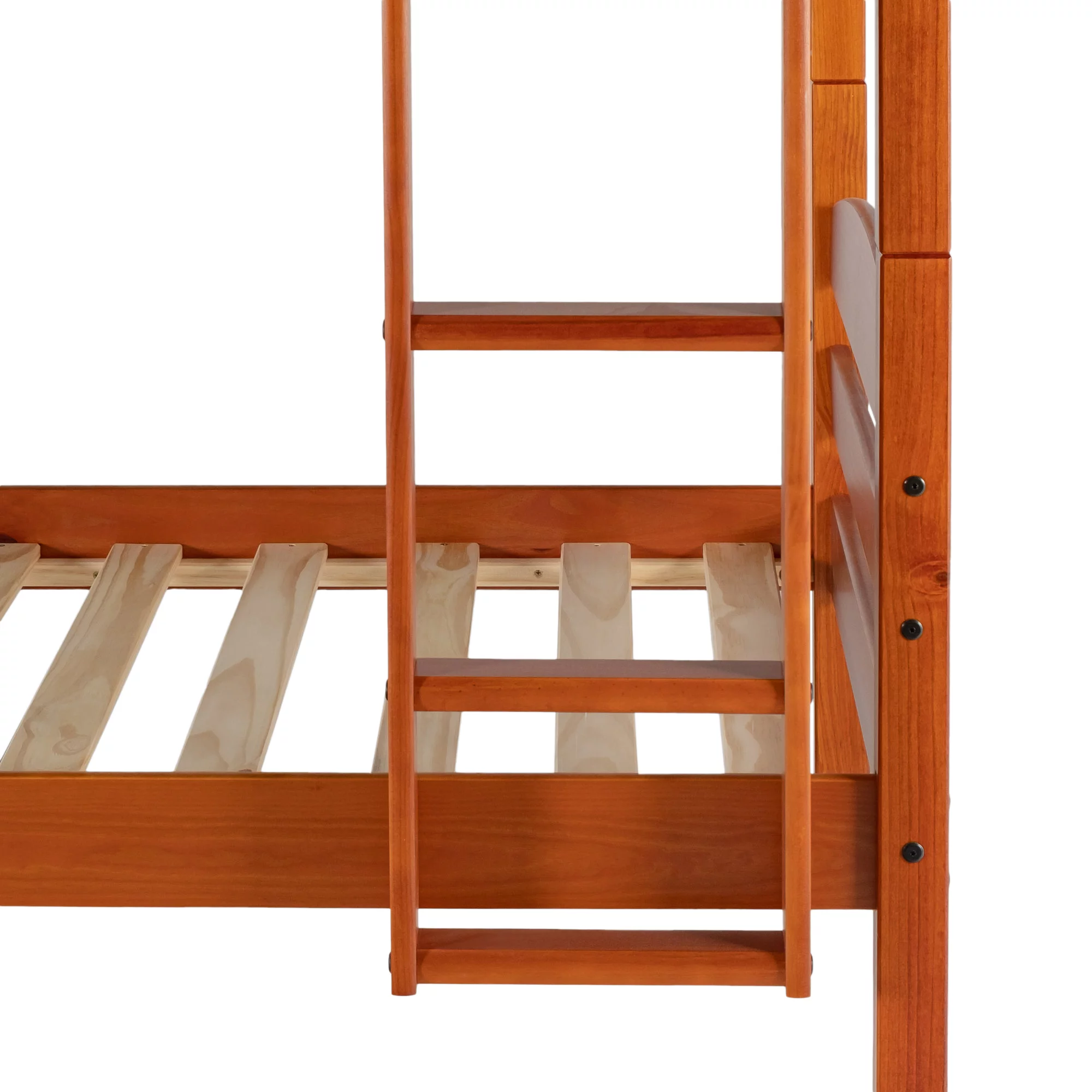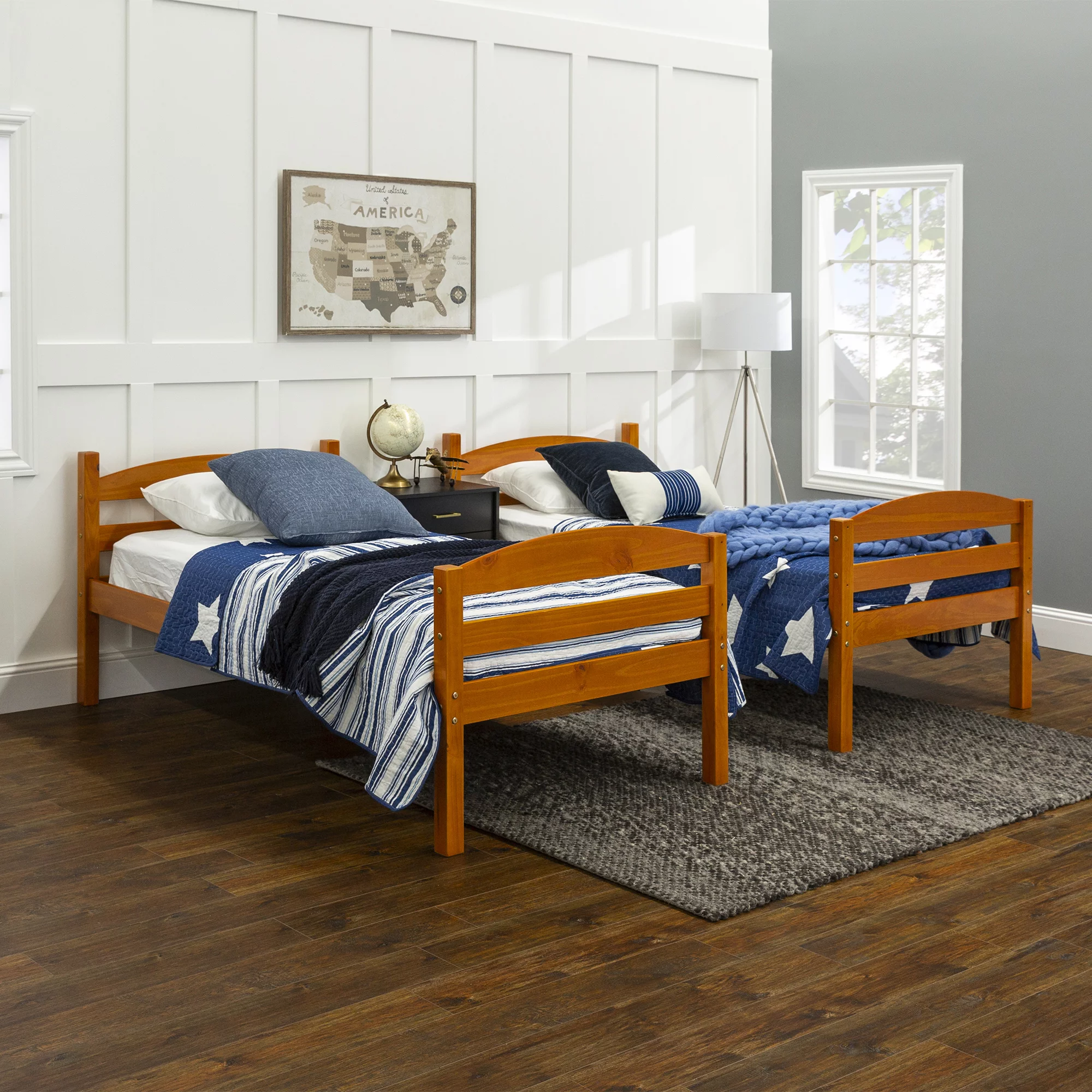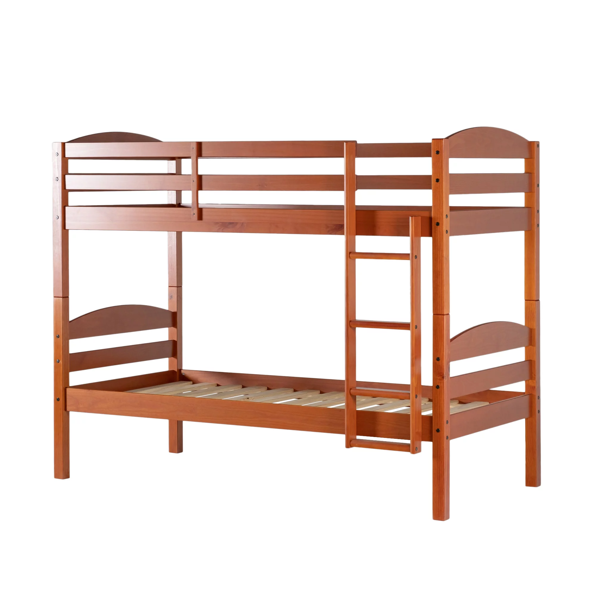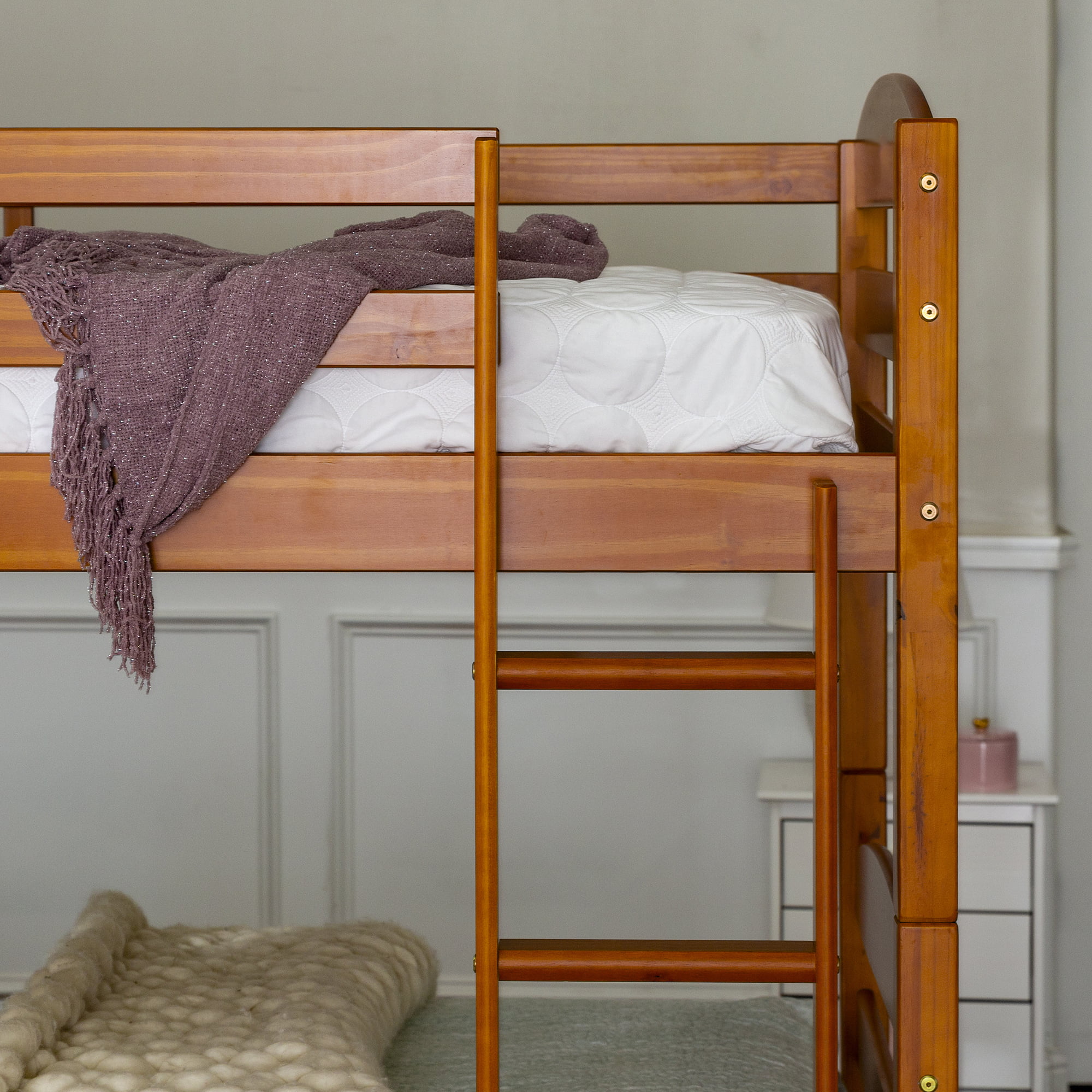 Max & Lily Classic Twin over Twin Bunk Bed for Kids, Solid Wood Low Bunk Beds with Ladder for Small Room, Pecan