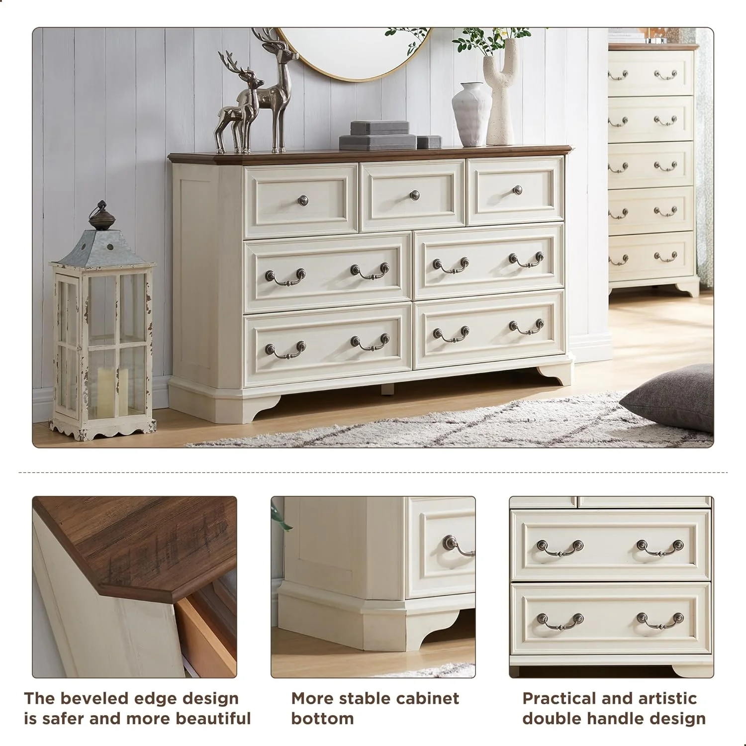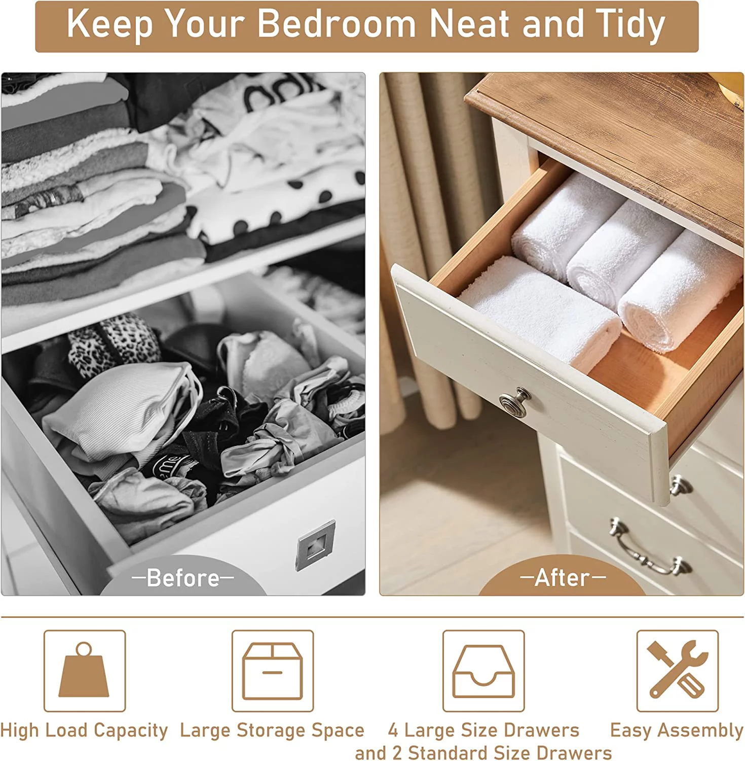 OKD 6 Drawers Dresser Chests Storage Cabinet for Bedroom, Farmhouse Wood Rustic Tall set of Drawers, Antique White