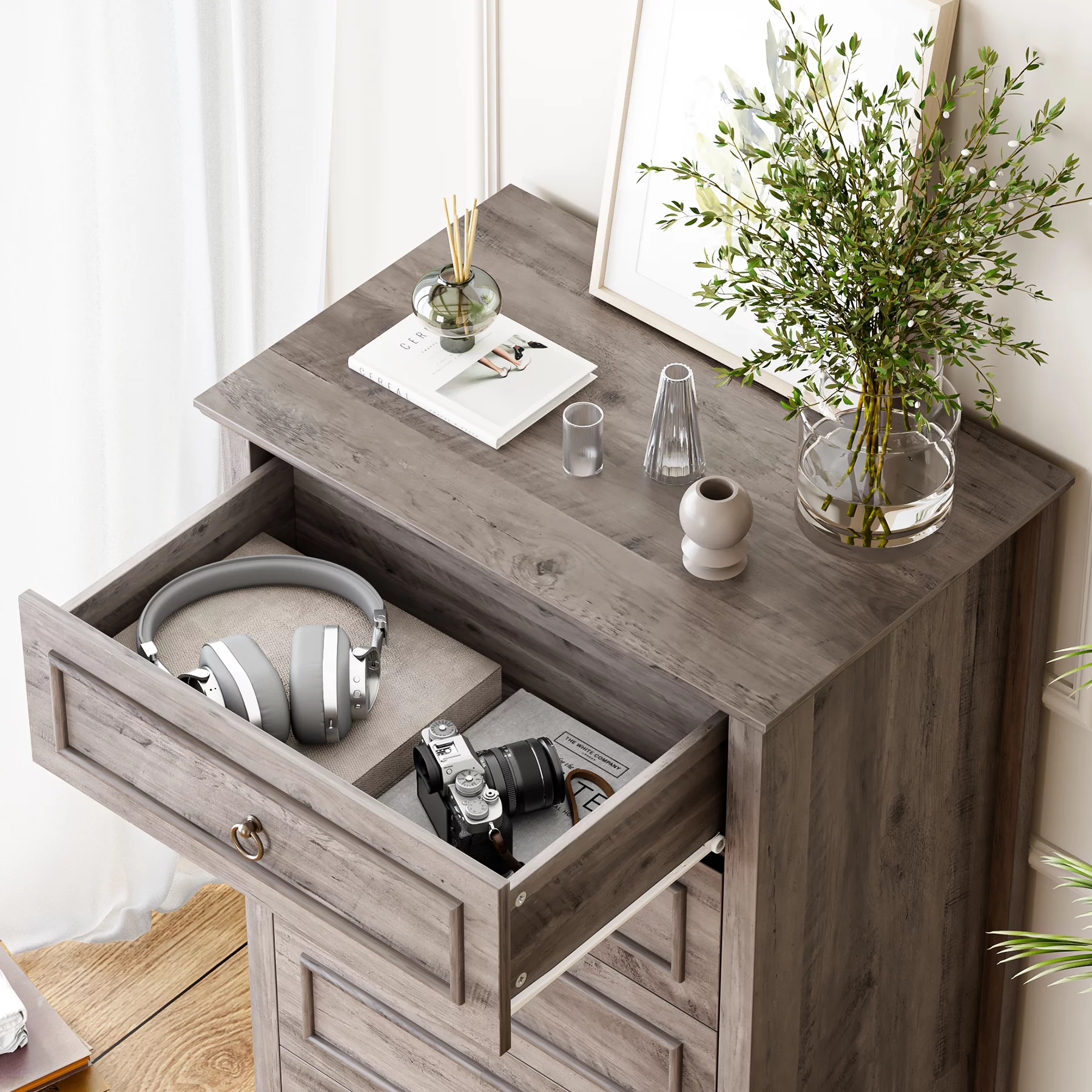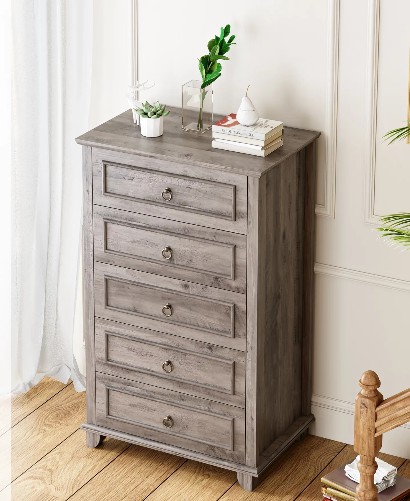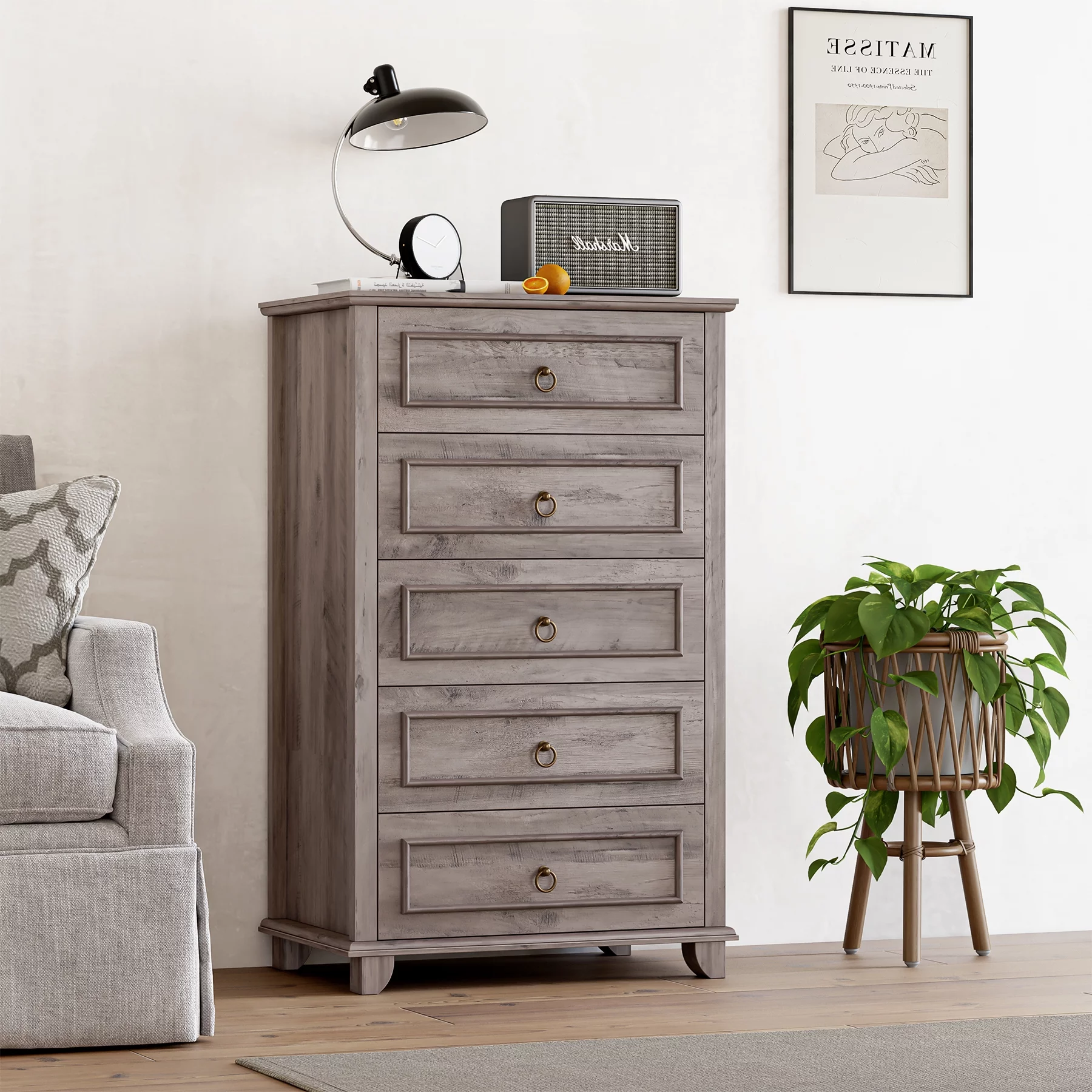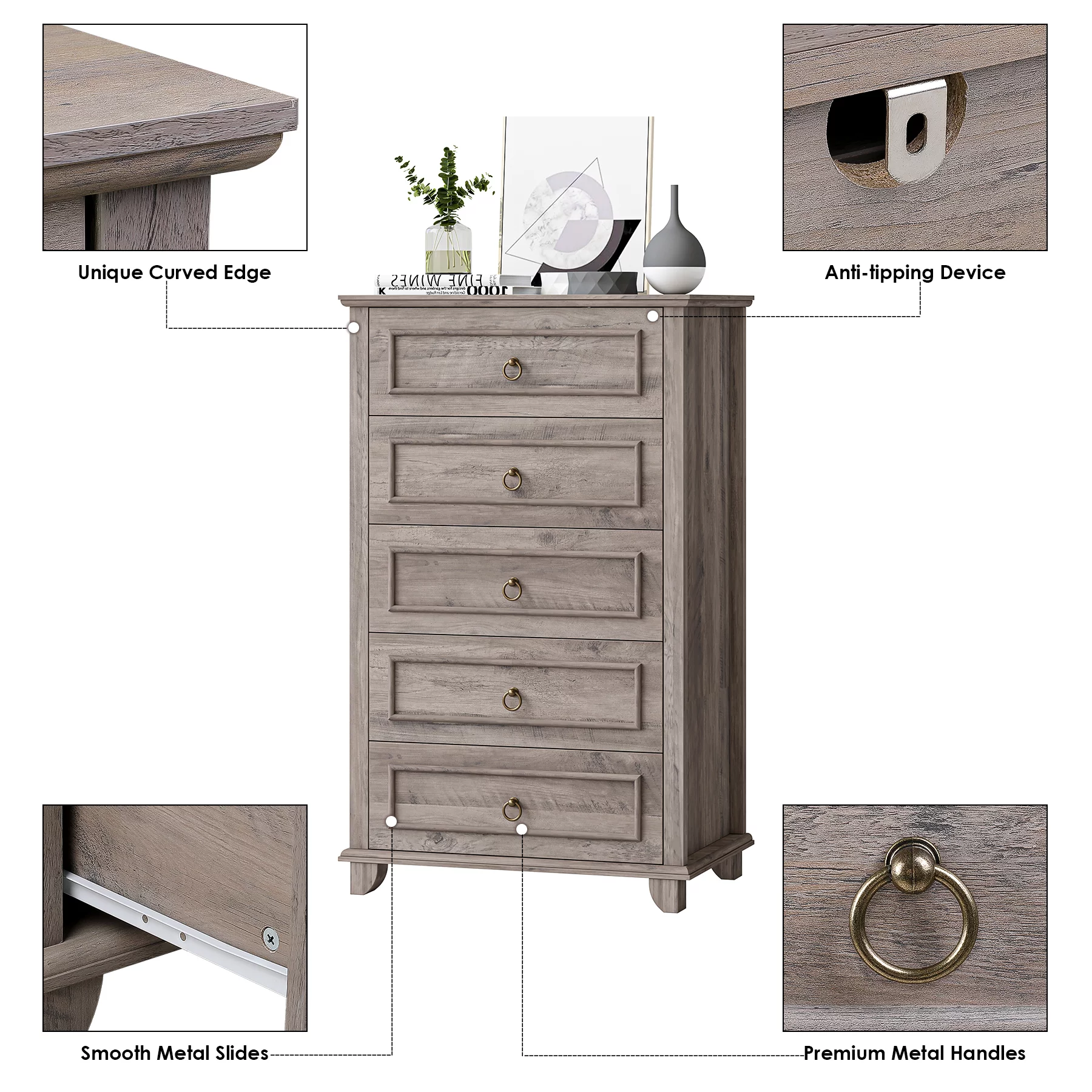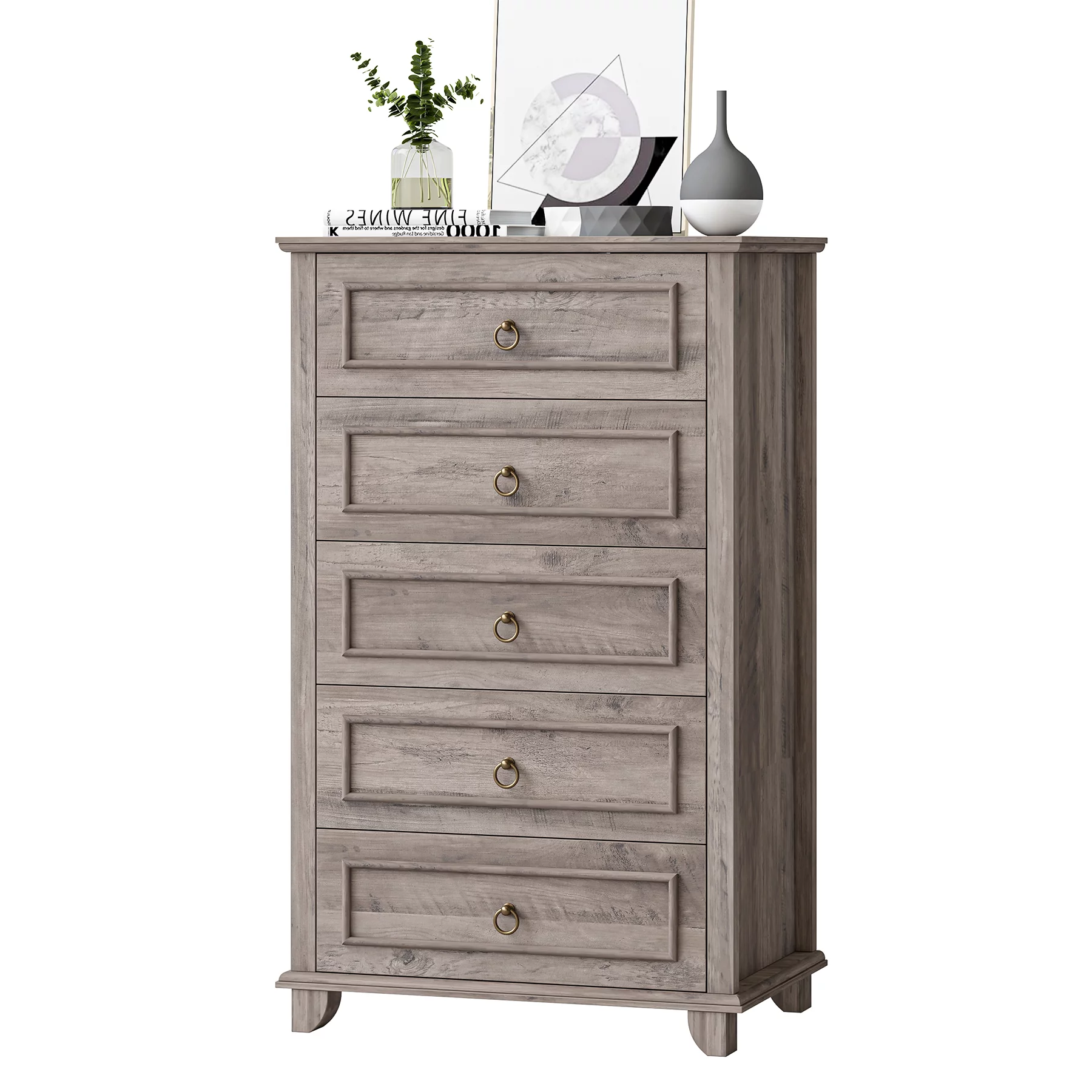 Homfa 5 Drawer Bedroom Dresser, Tall Wood Nightstand Storage Cabinet for Office Living Room,Gray