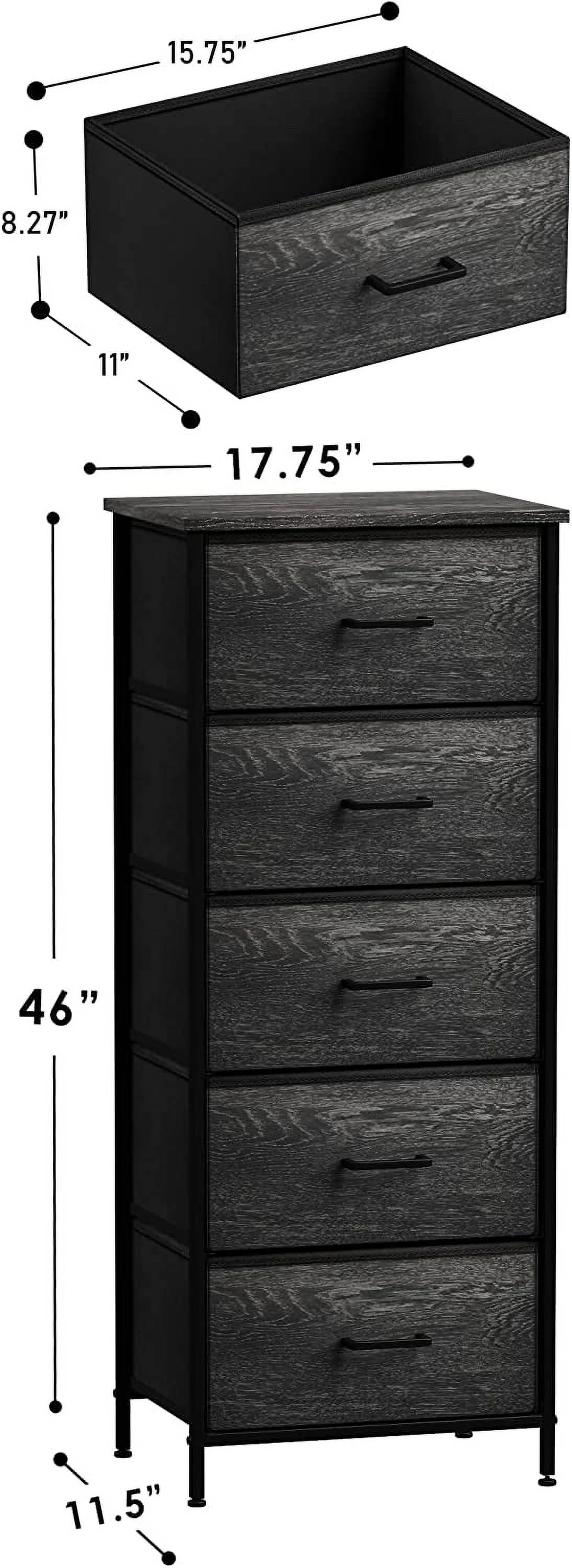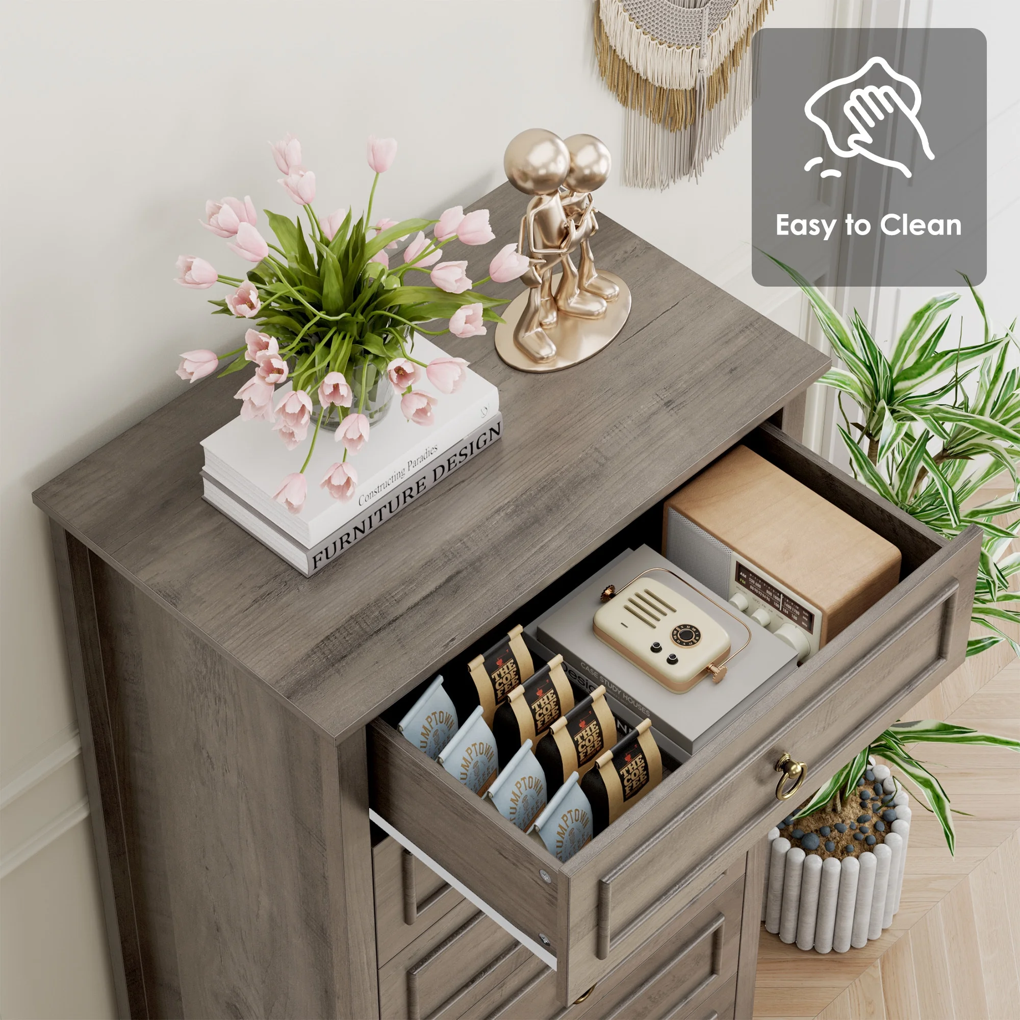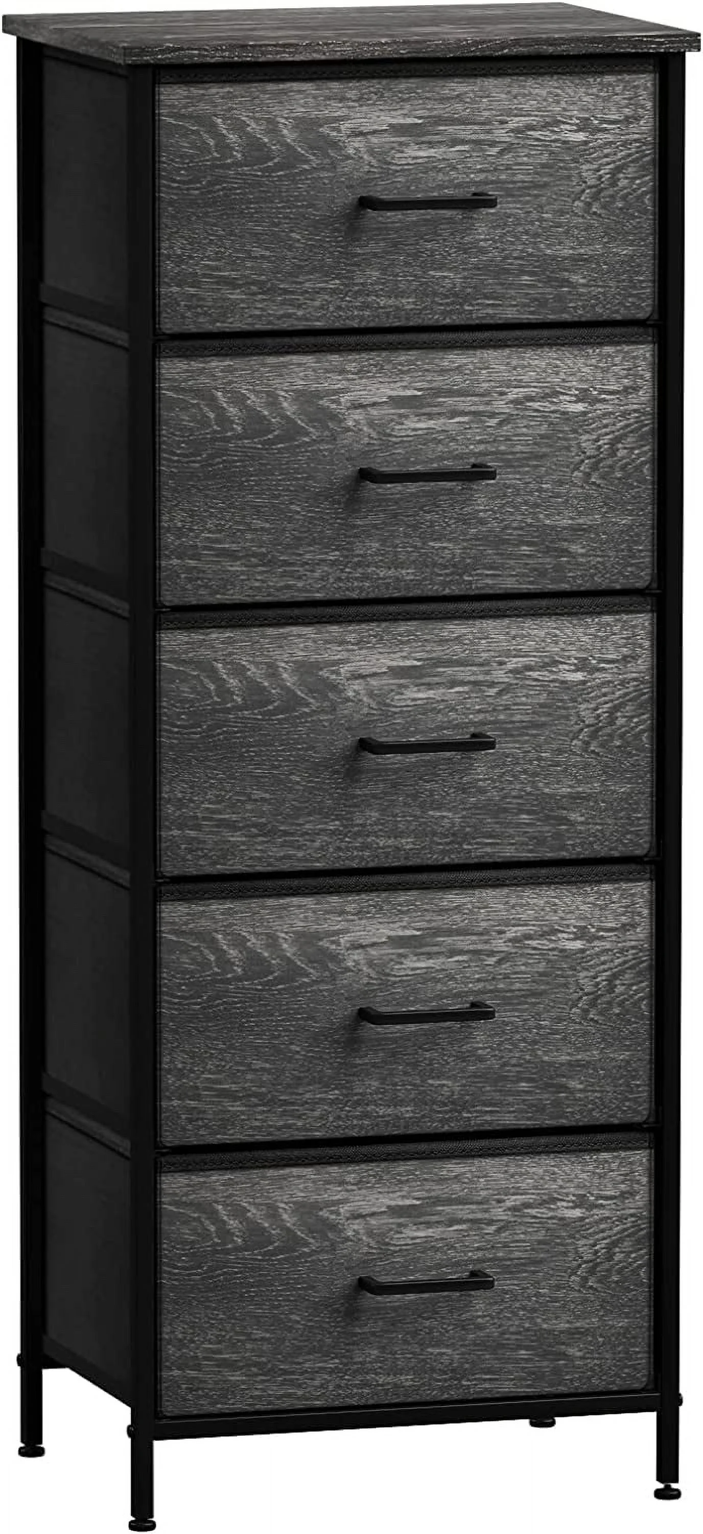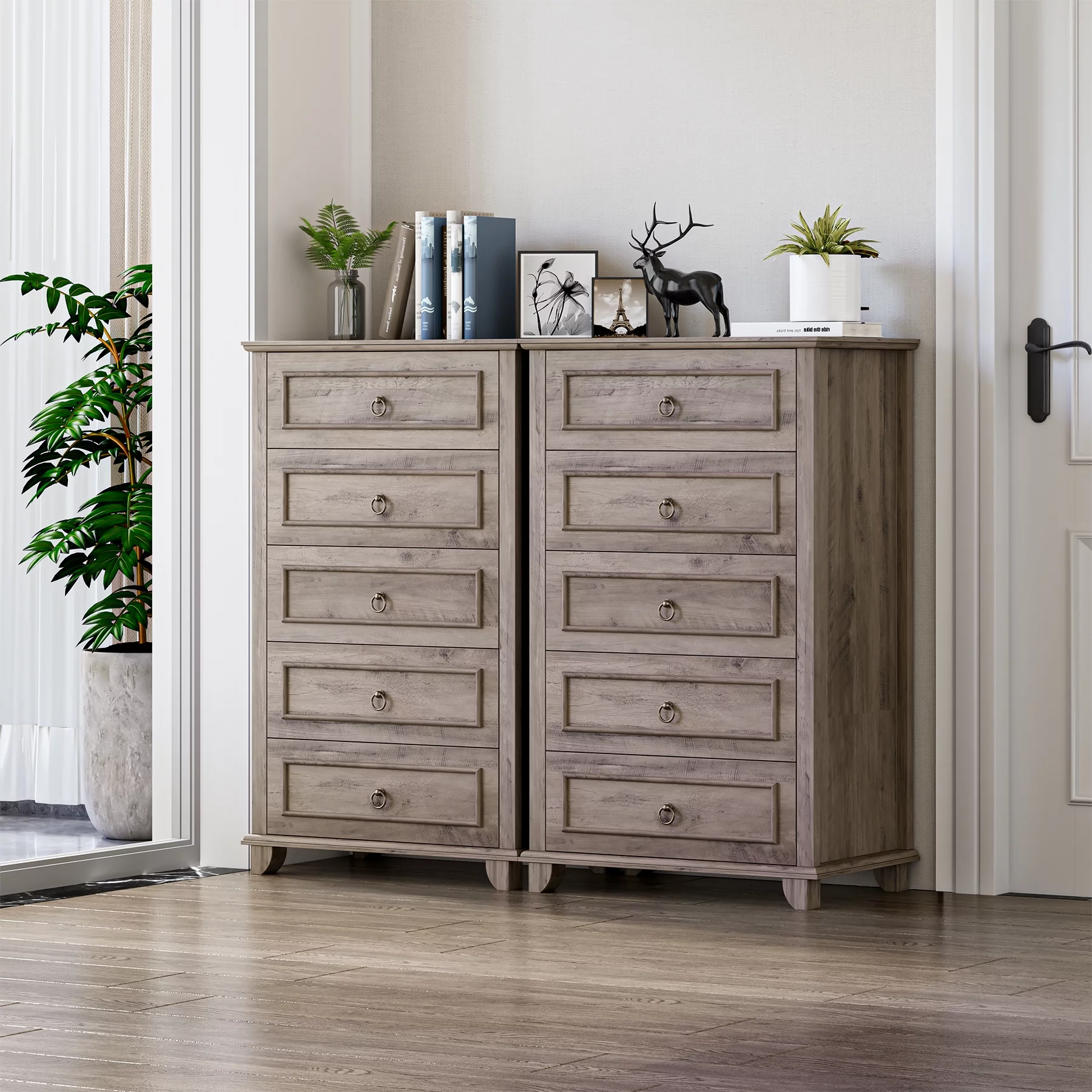 Homfa 5 Drawer Bedroom Dresser, Tall Wood Nightstand Storage Cabinet for Office Living Room,Gray