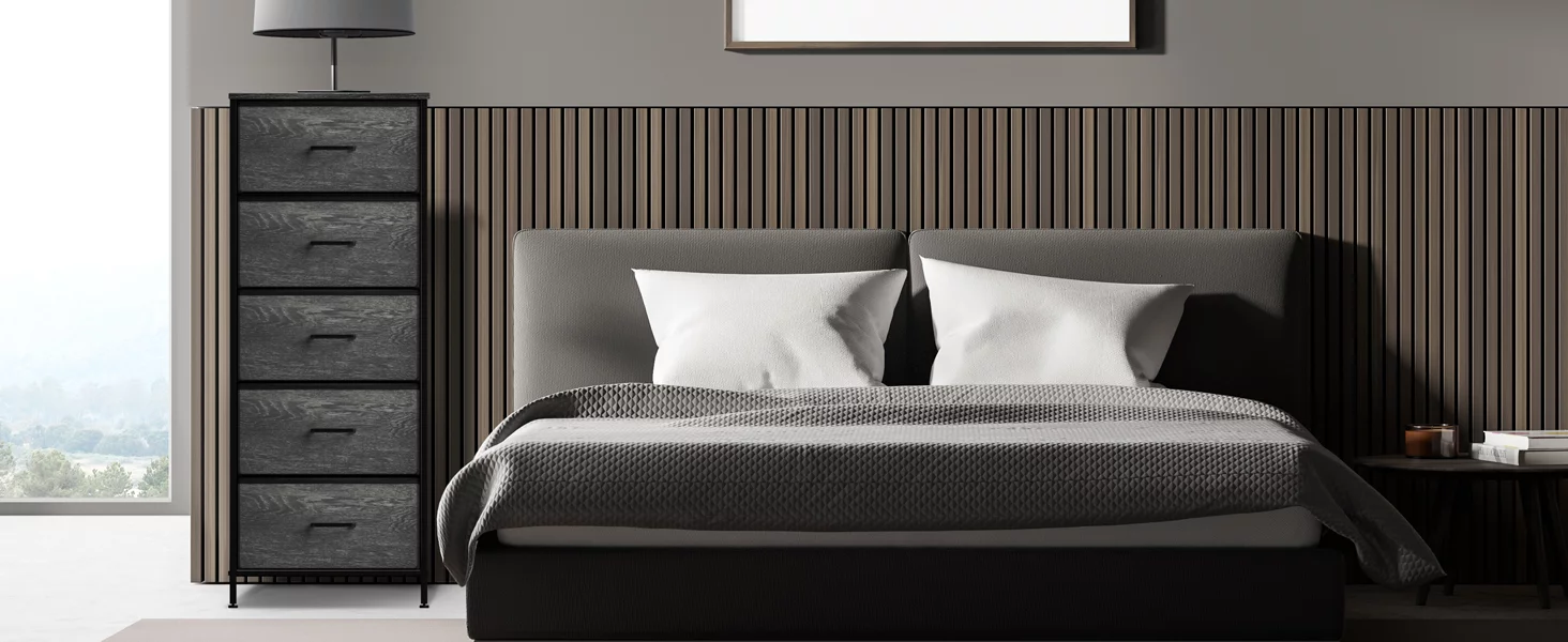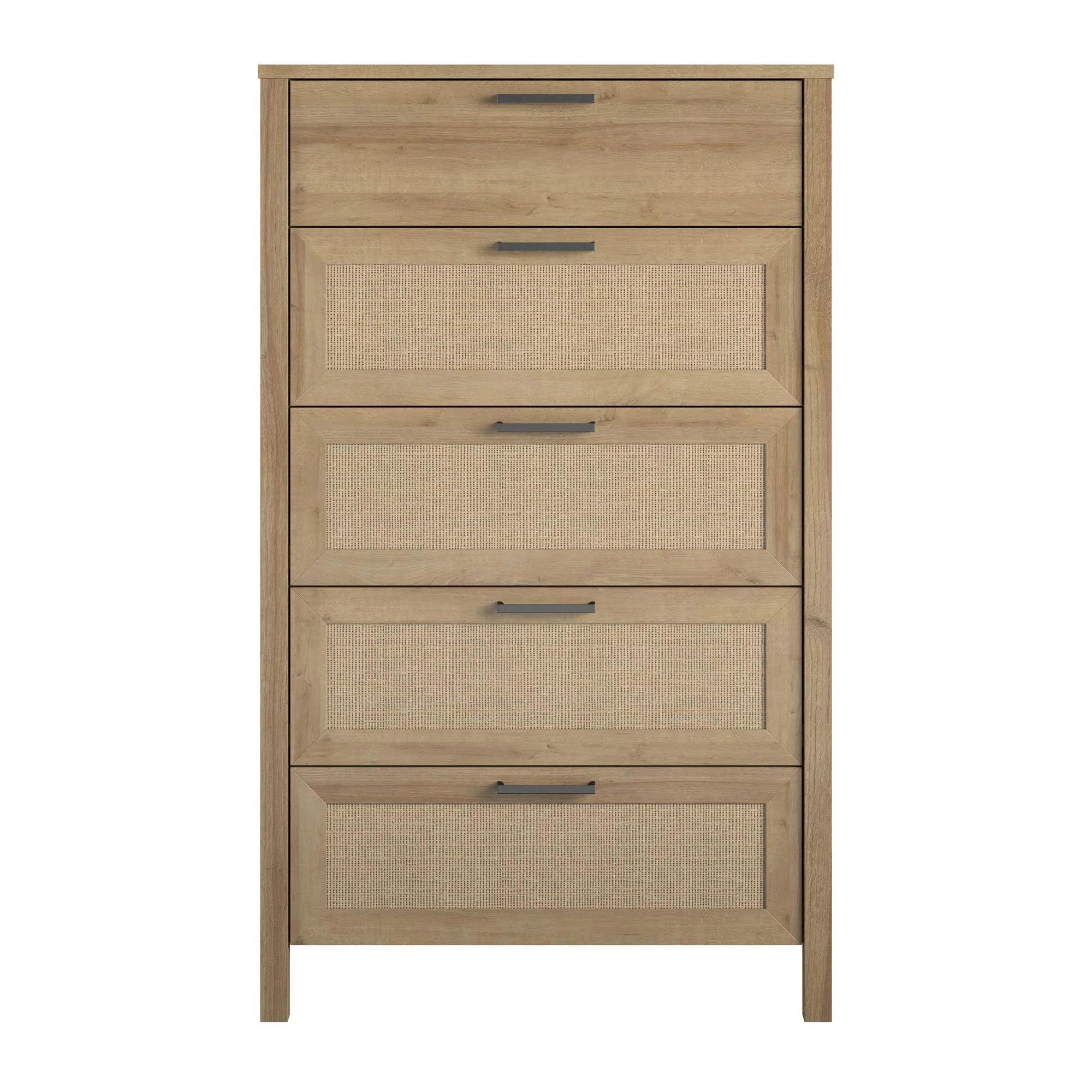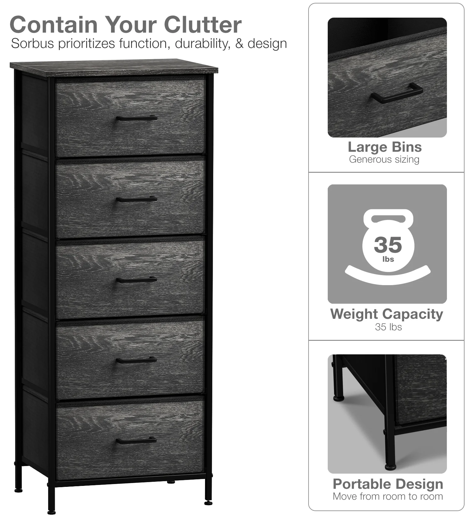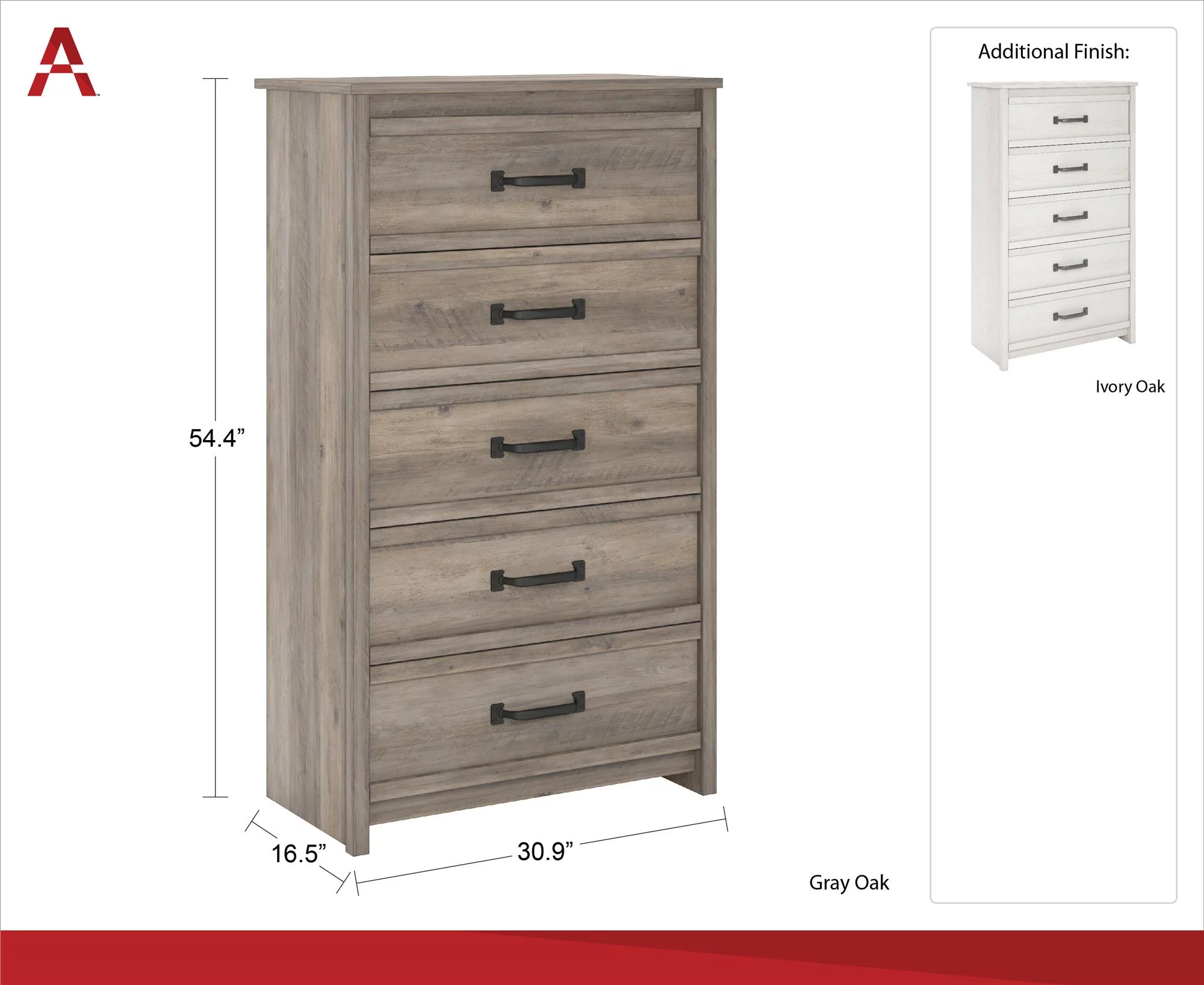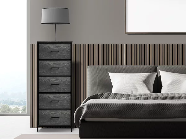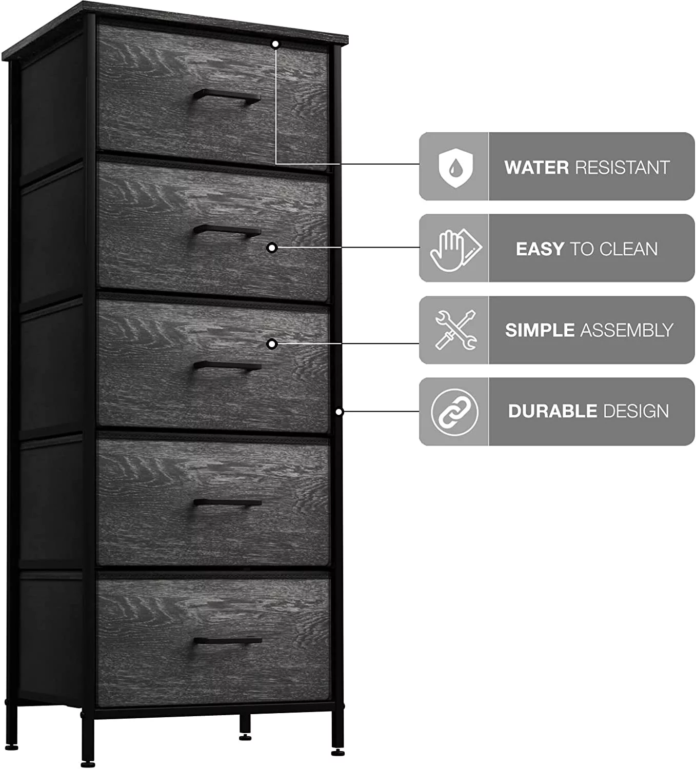 Homfa 5 Drawer Bedroom Dresser, Tall Wood Nightstand Storage Cabinet for Office Living Room,Gray