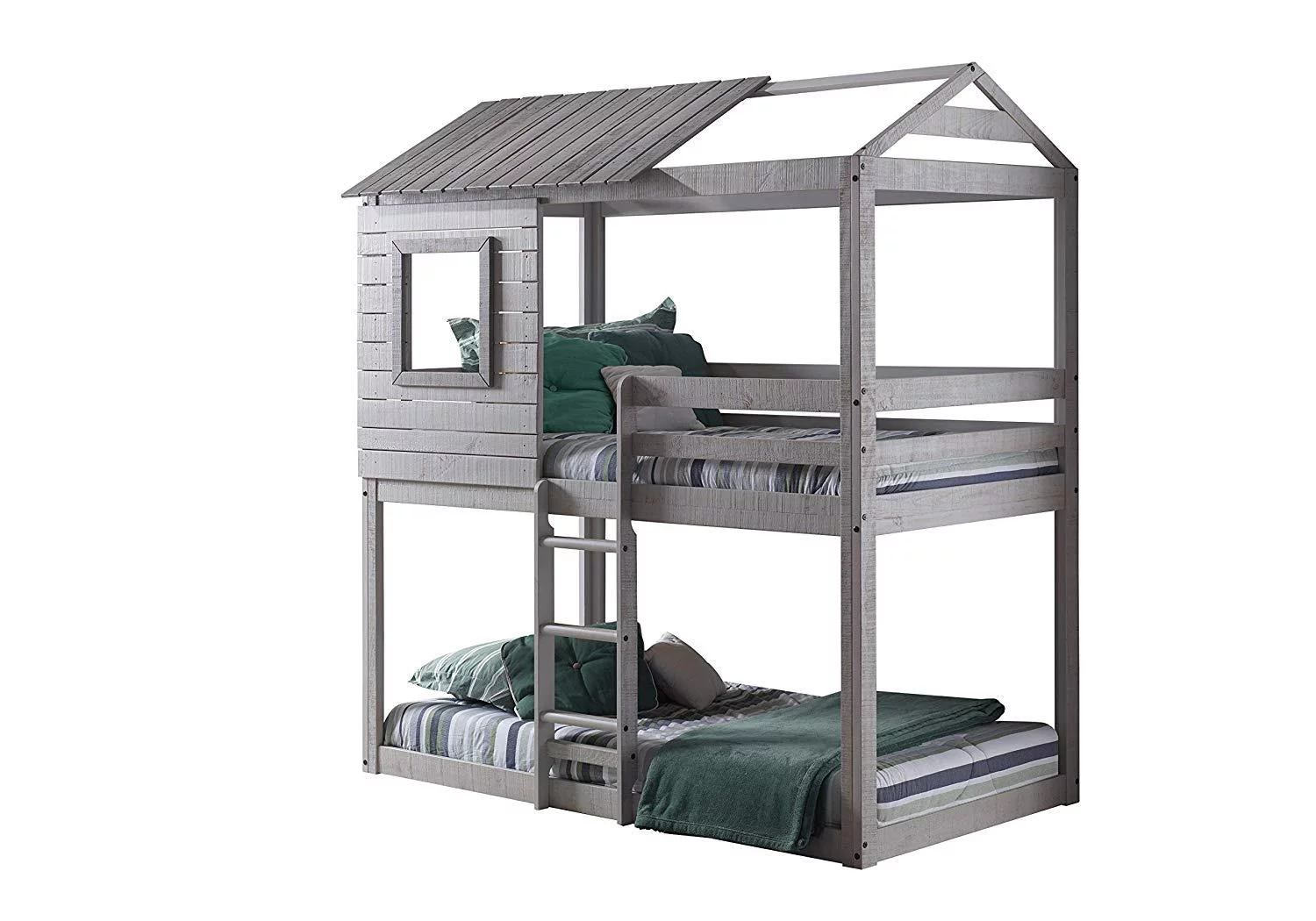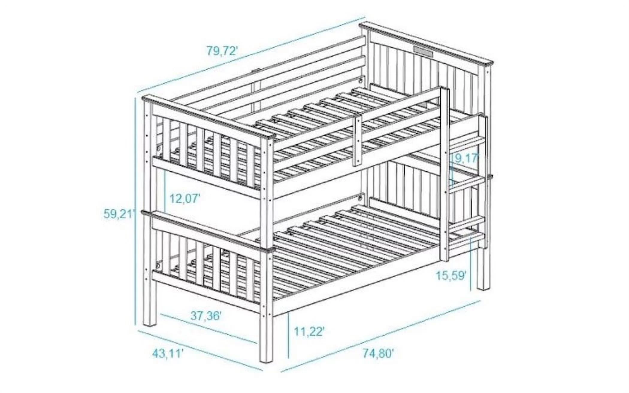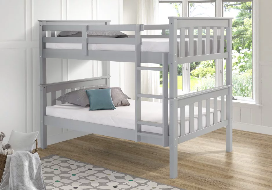 Solid Wood Sturdy Twin Over Twin Bunkbed with Ladder and Safety Rail Grey