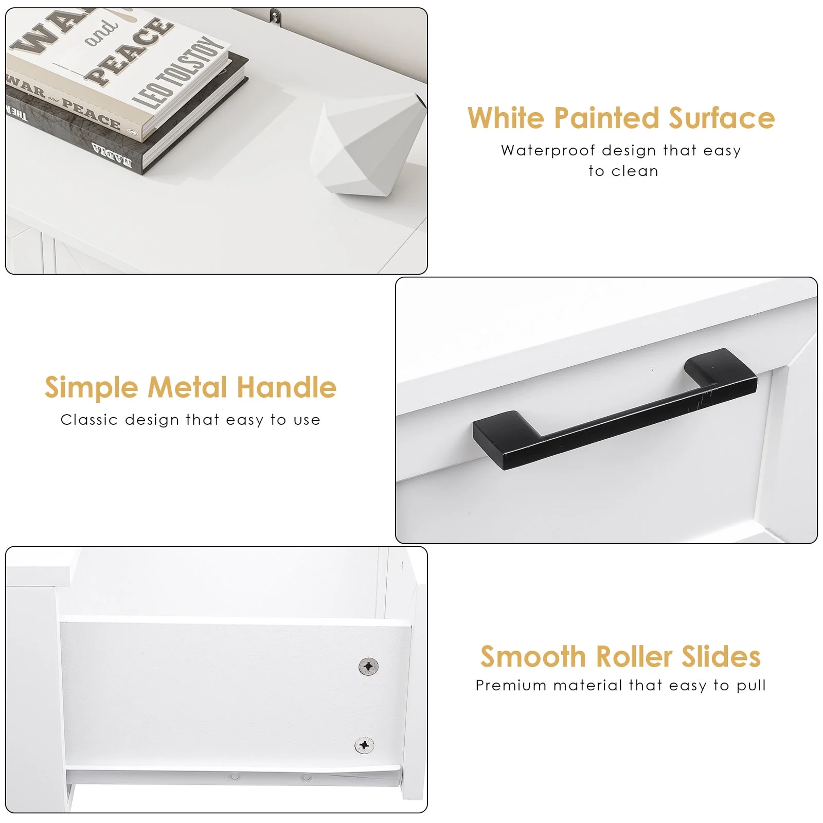Homfa White Dresser with 3 Drawers, 23.6'' W Tall Nightstand Chest of Drawer with Cutout Handles for Living Room