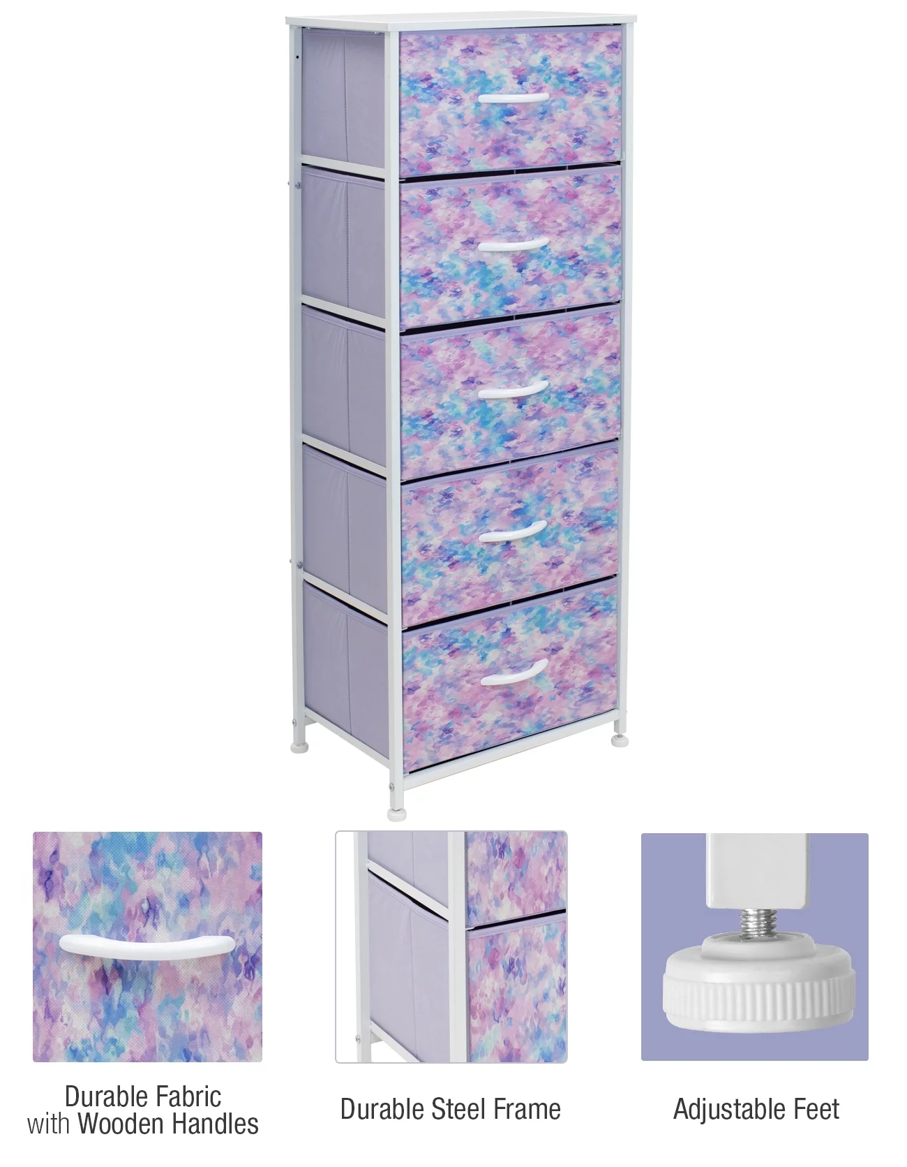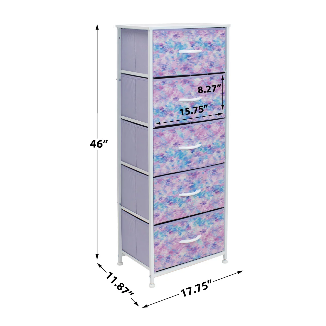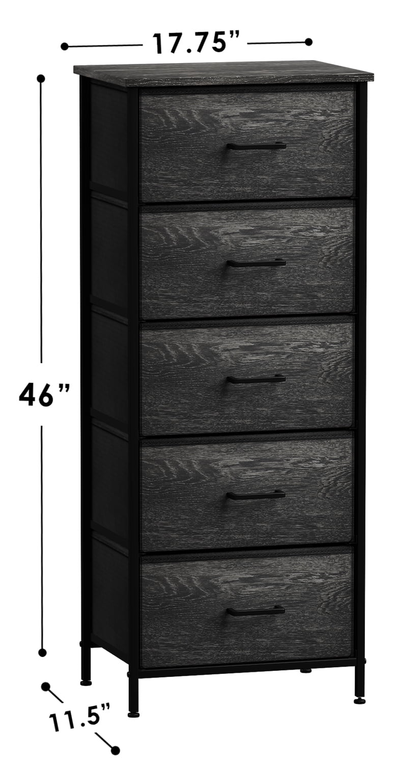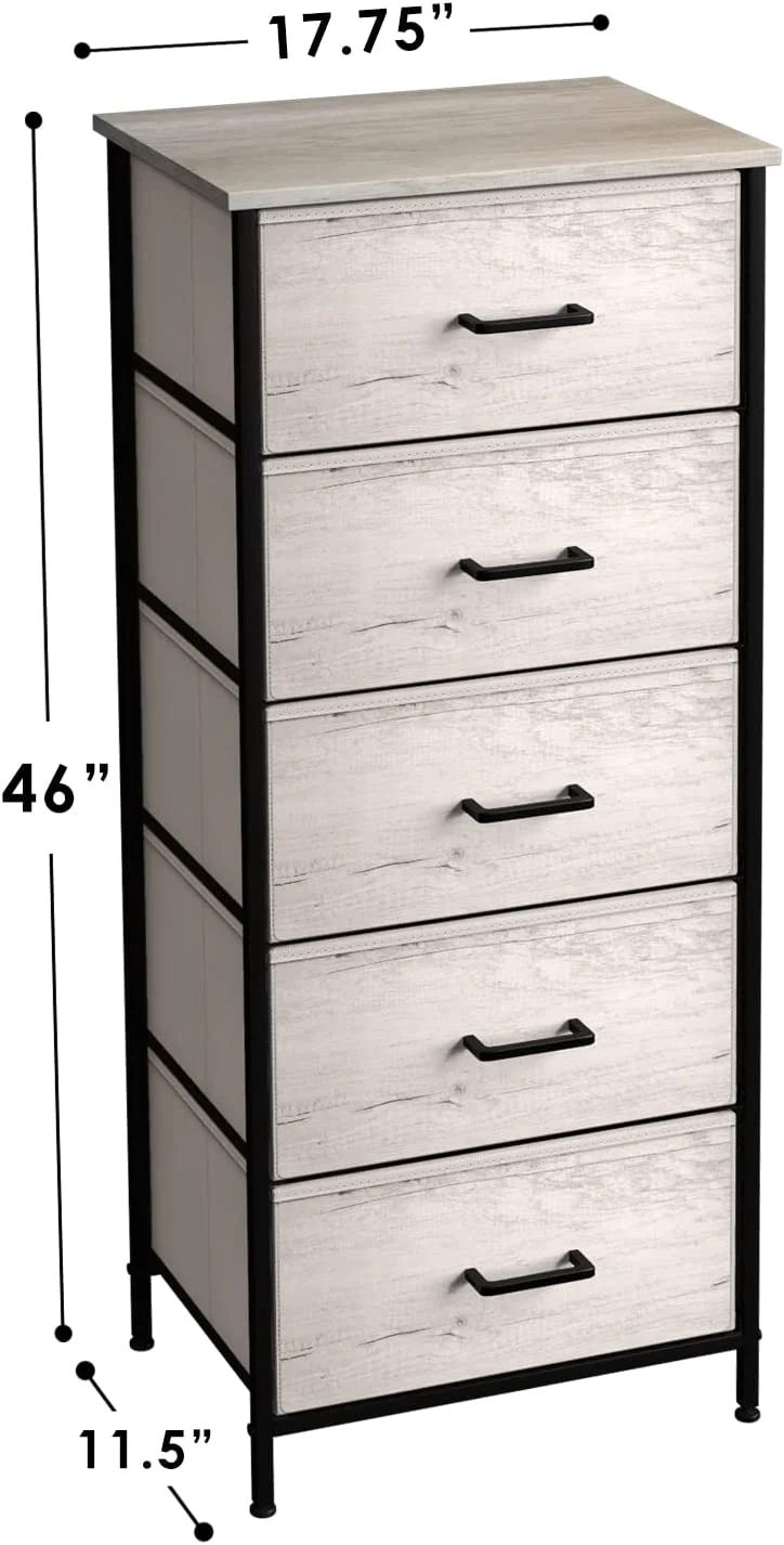 Homfa 5 Drawer Tall Dresser, Chest of Drawers Storage Cabinet for Bedroom Living Room, Wash Gray