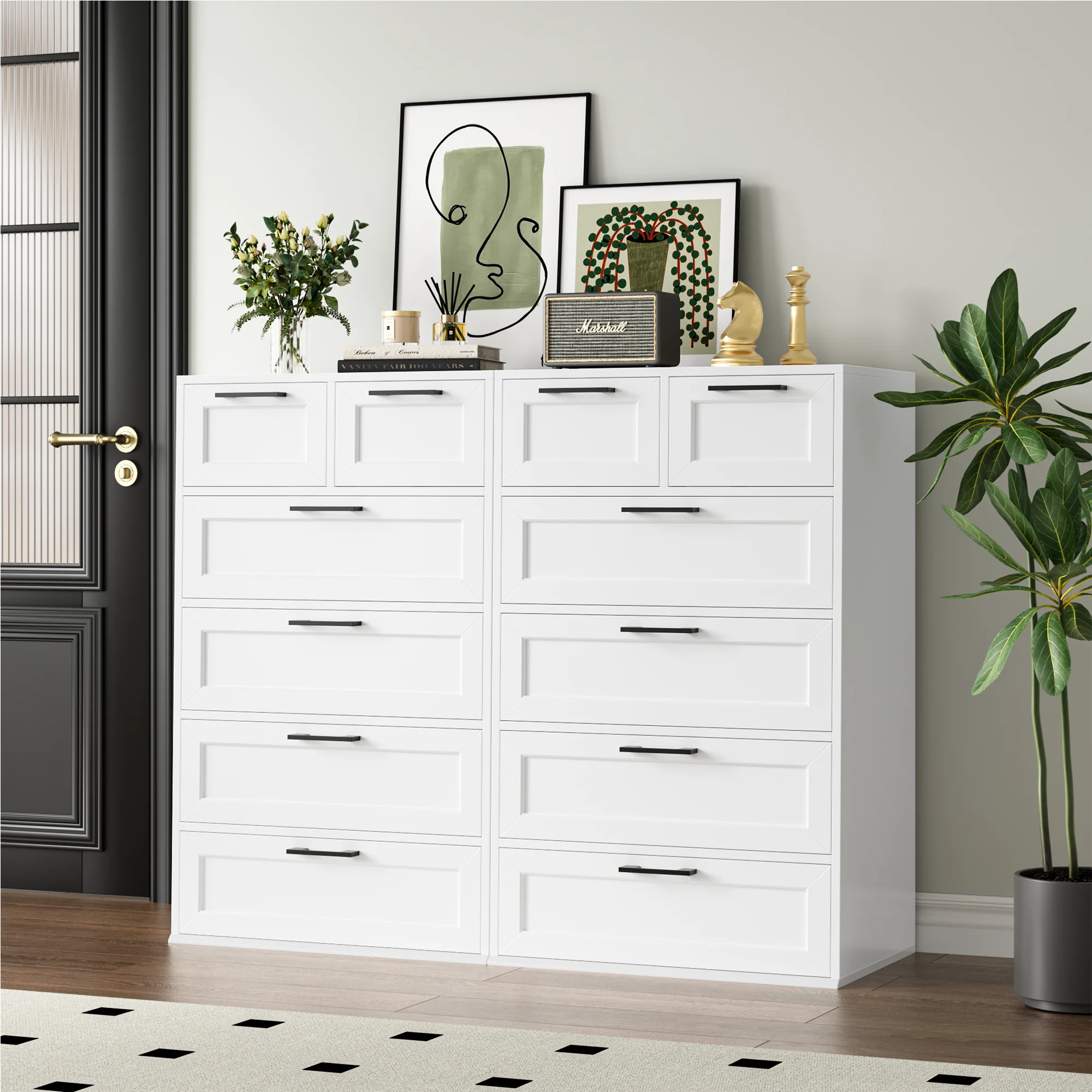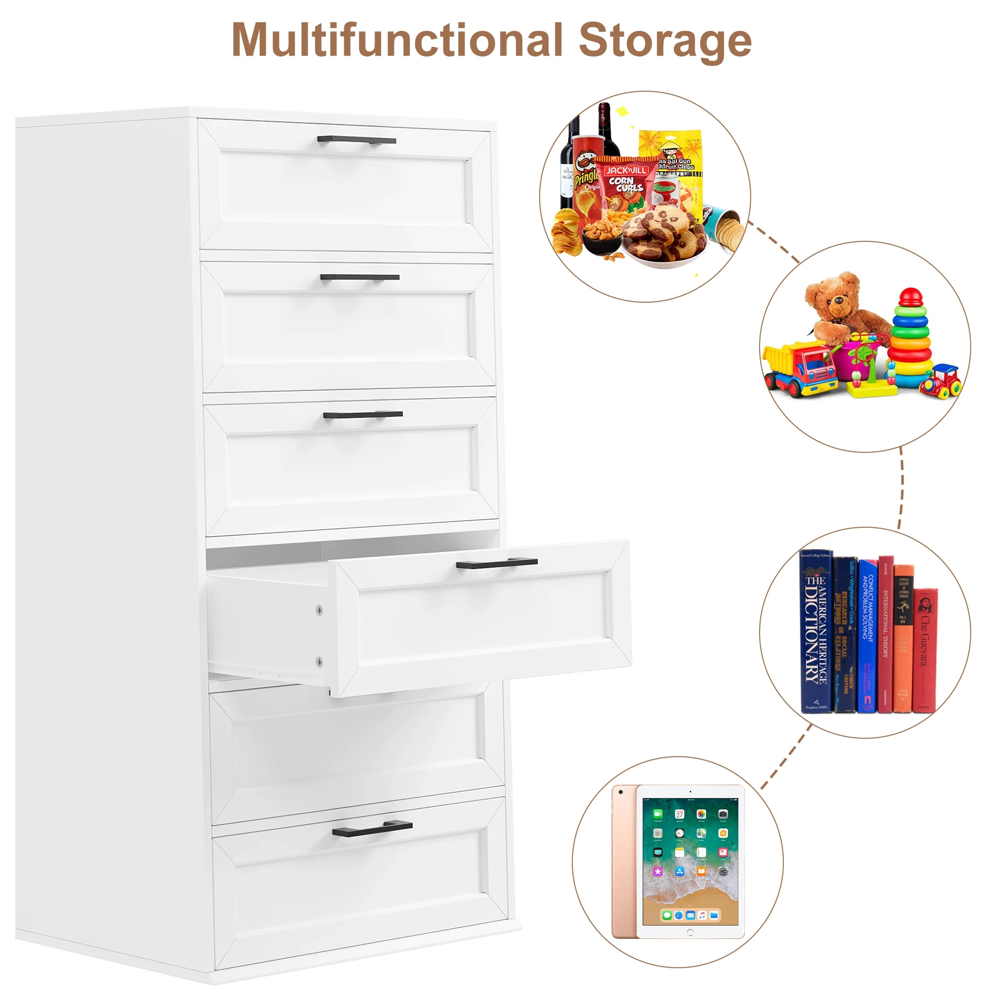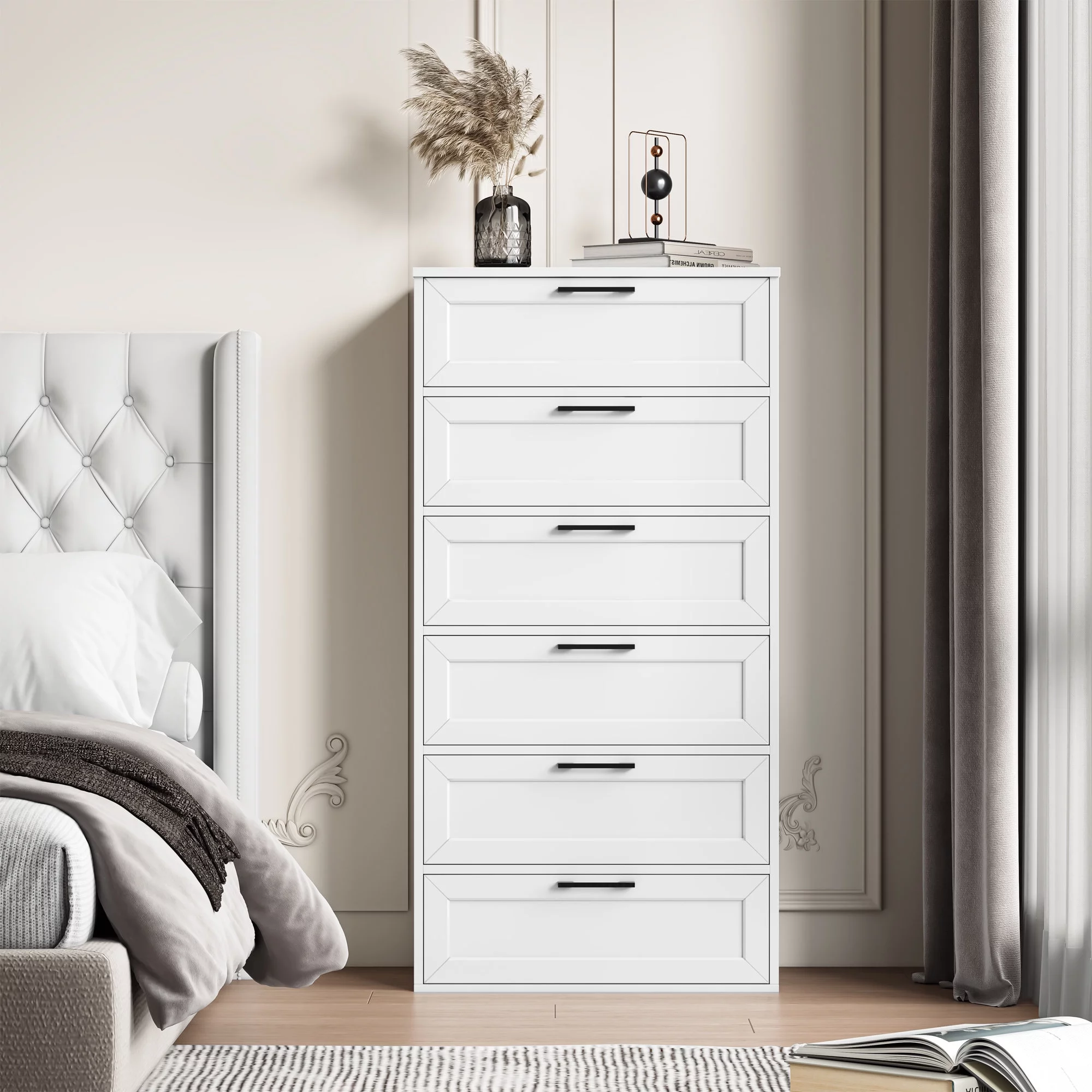 Relefree Modern 6 Drawer Dresser, Tall Storage Cabinet Chest of Drawers for Living Room Bedroom Hallway, White