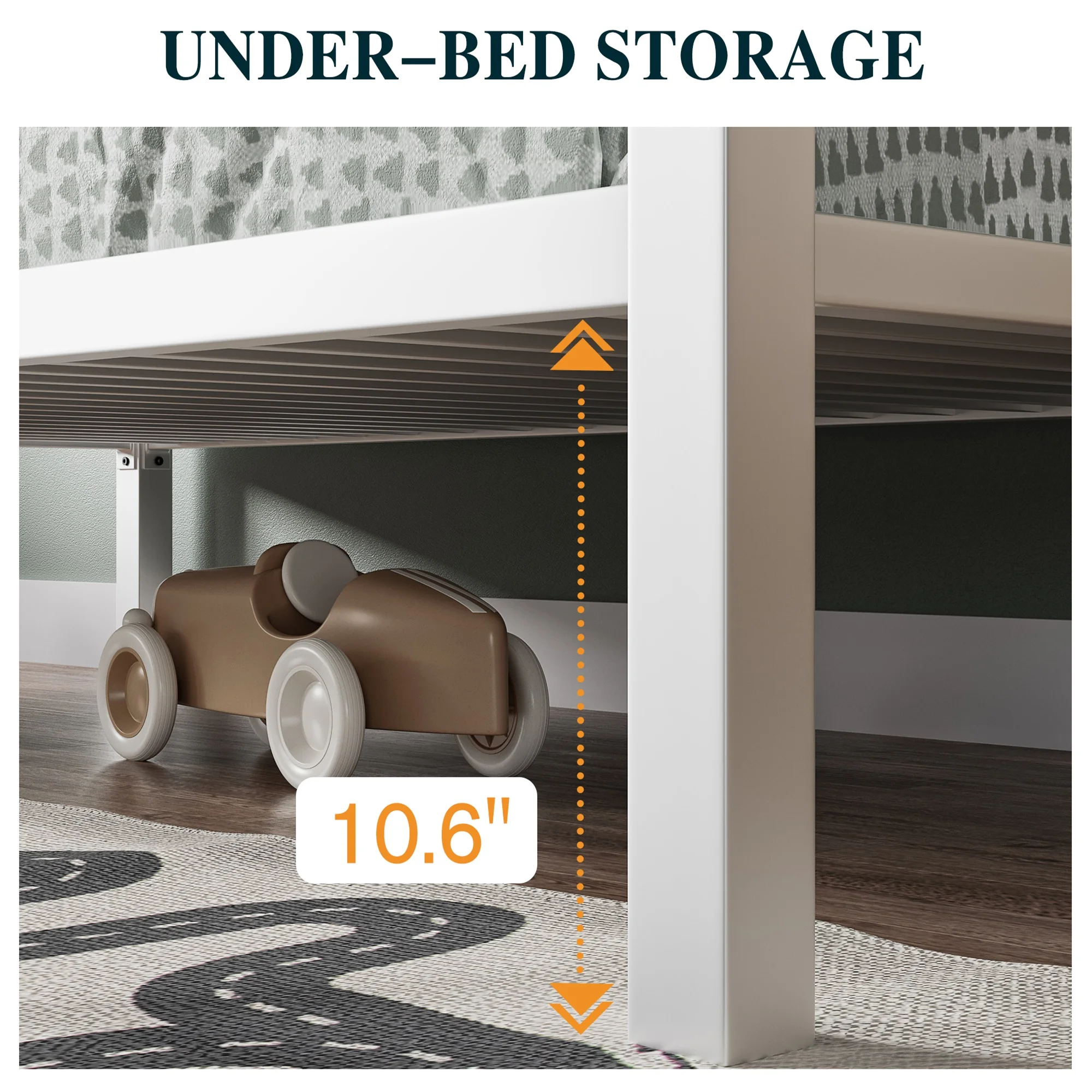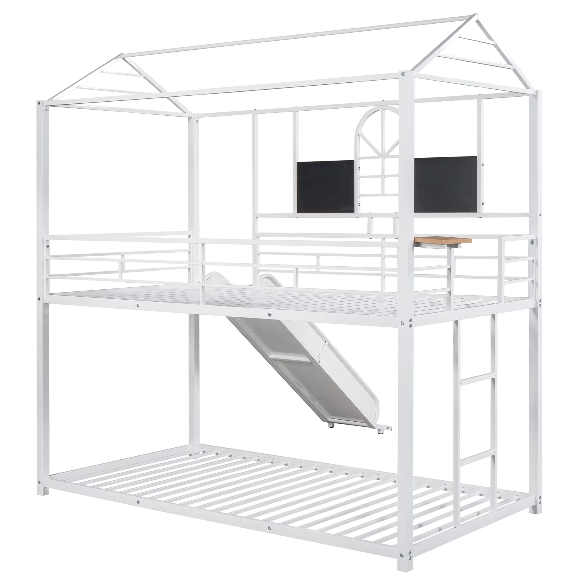 Gewnee Twin over Twin Bunk Bed,Metal House Bed with Slide and Ladder for Kids,White