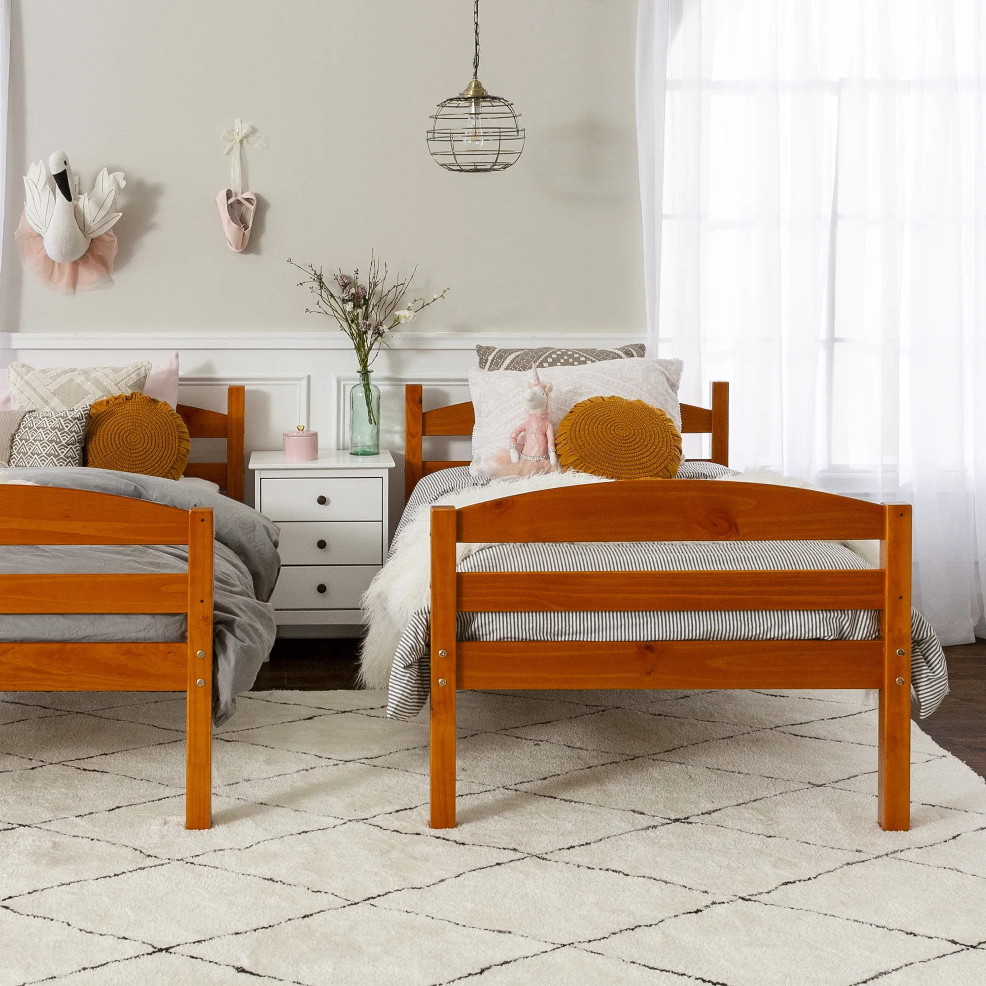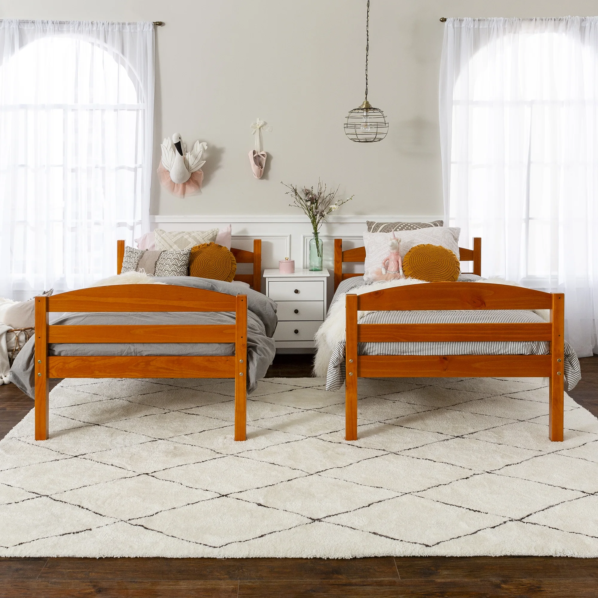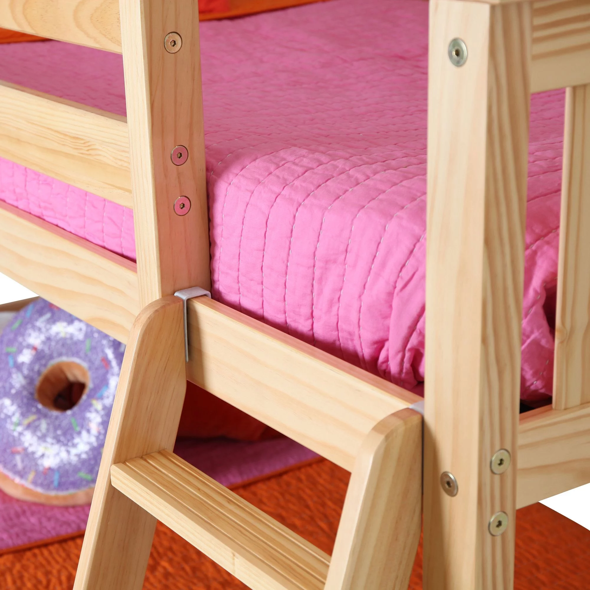 Carousel Bunk Bed, Solid Wood Twin over Twin Low Bunk Beds for Kids, Natural