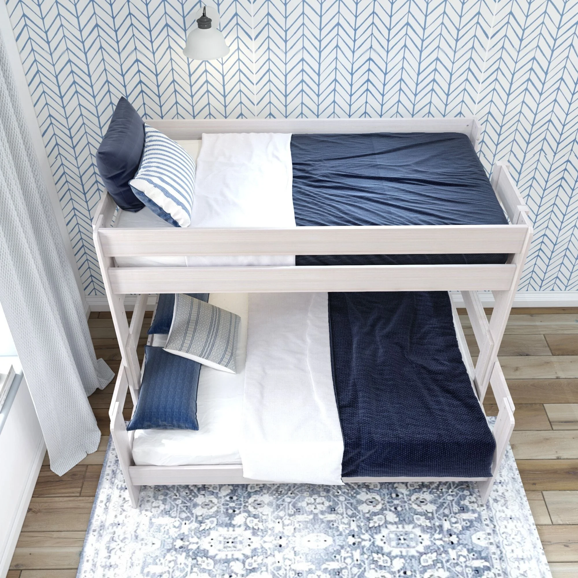 Plank+Beam Solid Wood Twin over Full Bunk Bed for Adults, White Wash
