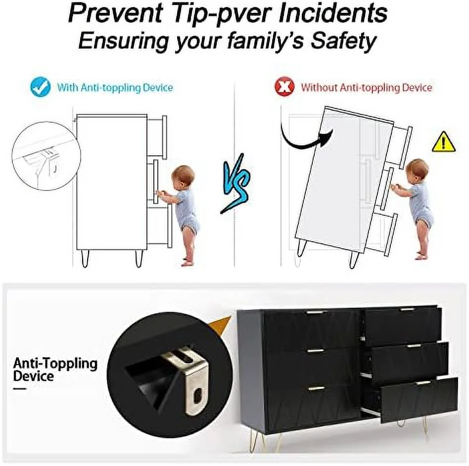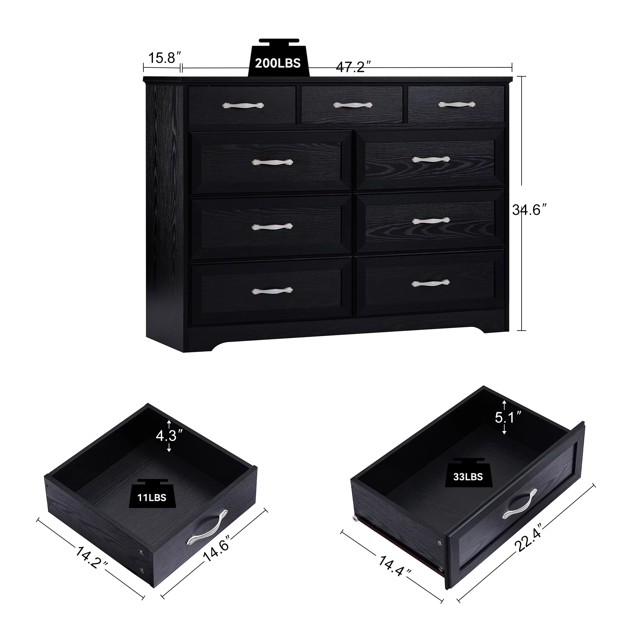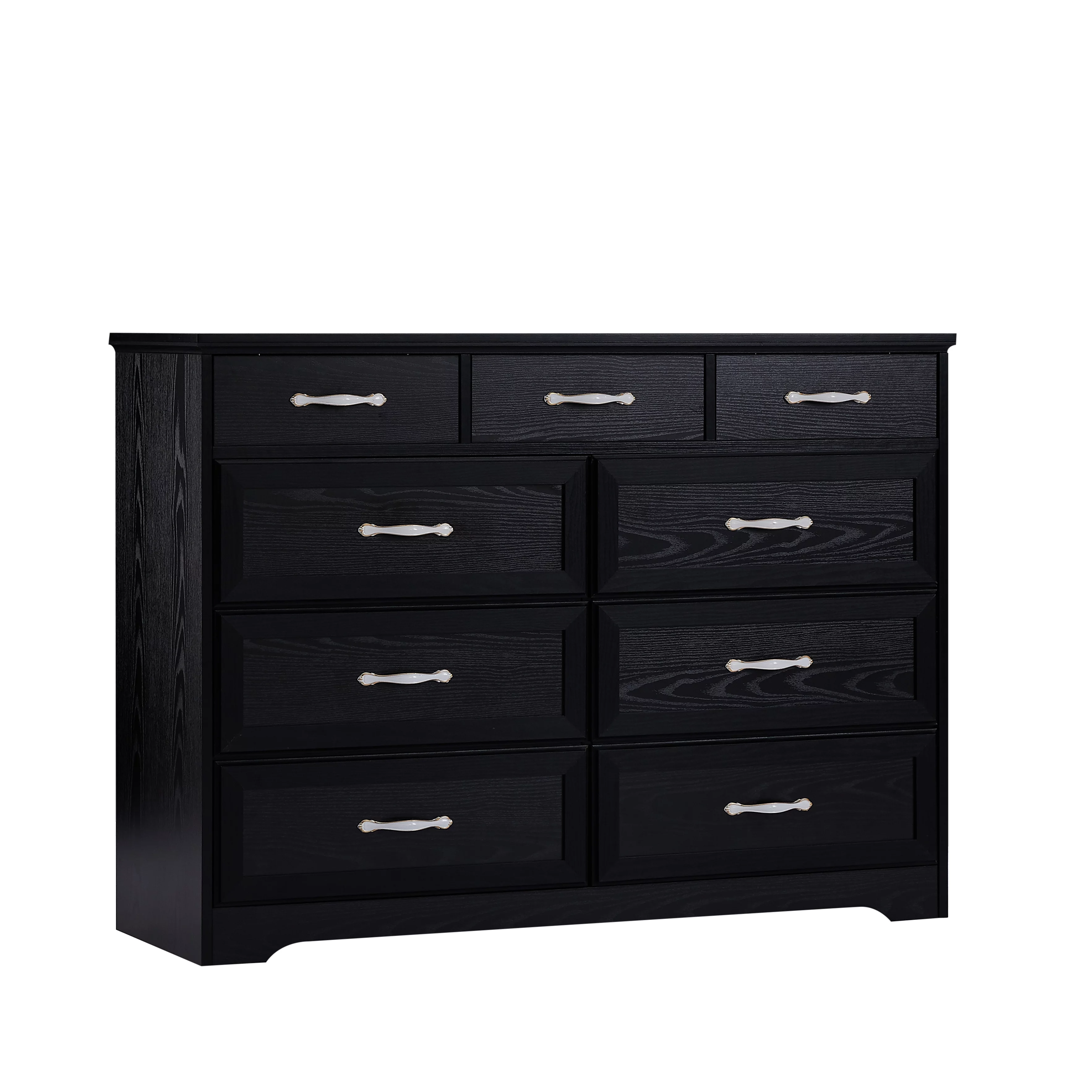 Black 6 Drawer Dresser for Bedroom Large Double Dresser with Wide Drawers and Gold Handles Chest of Drawers