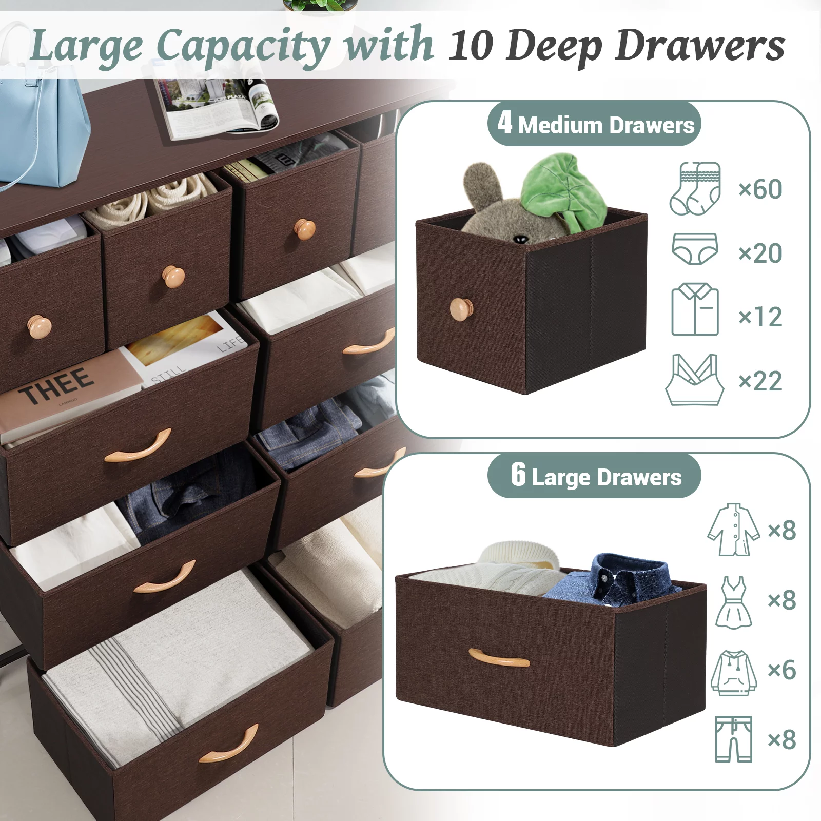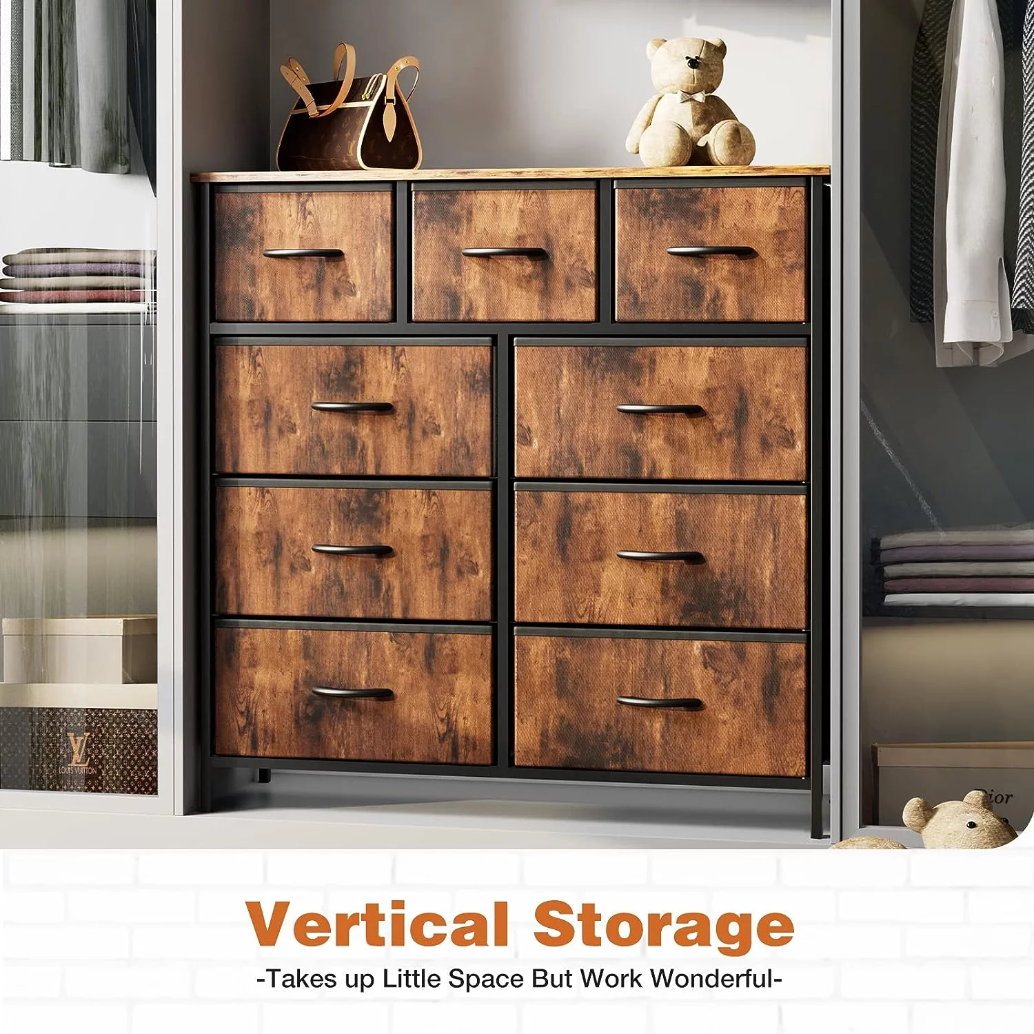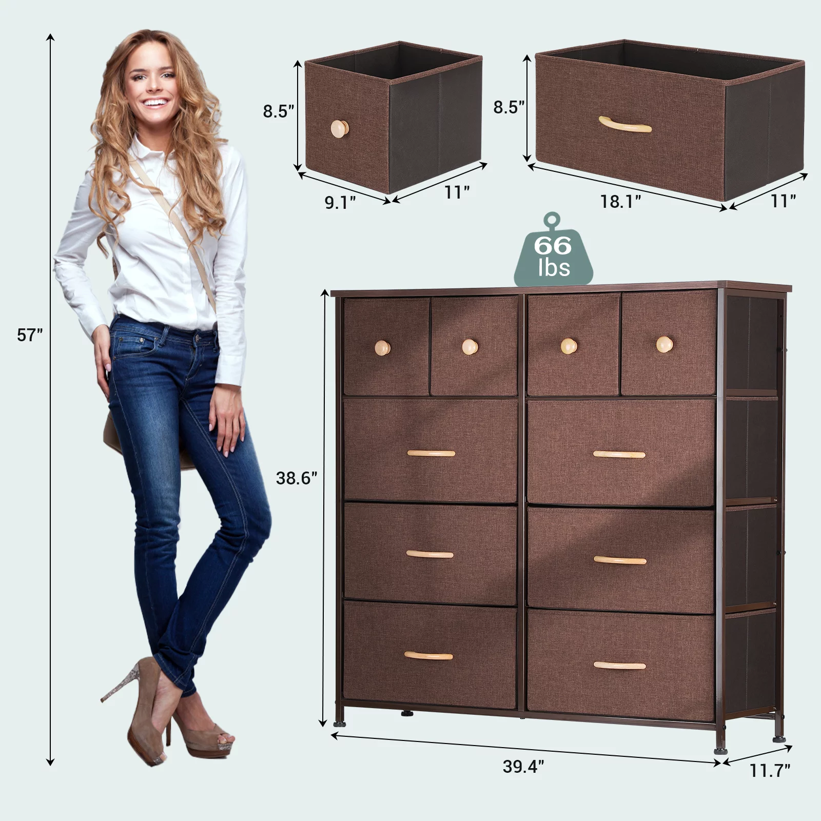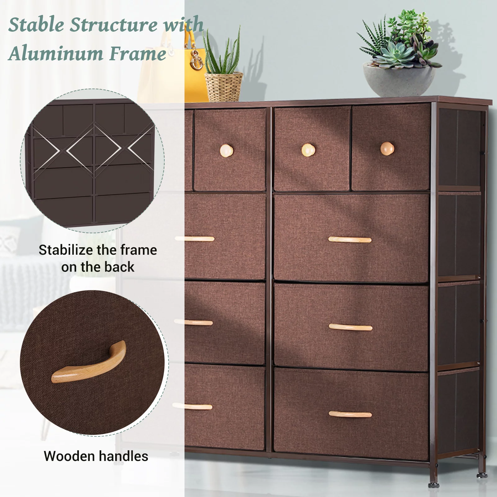 Nicehill 10 Drawer Tall Dresser for Bedroom Storage Tower with Wooden Top & Aluminum Frame