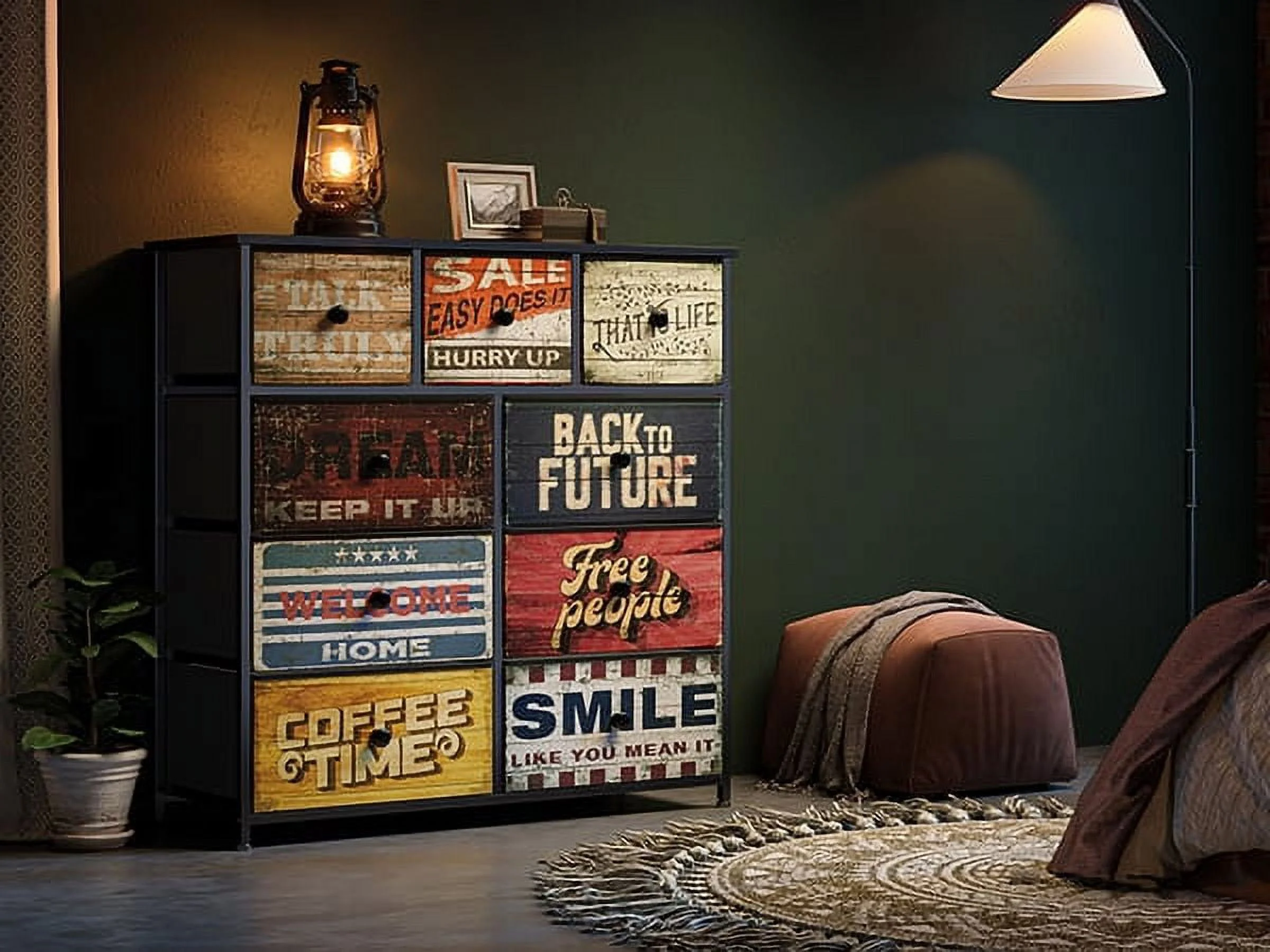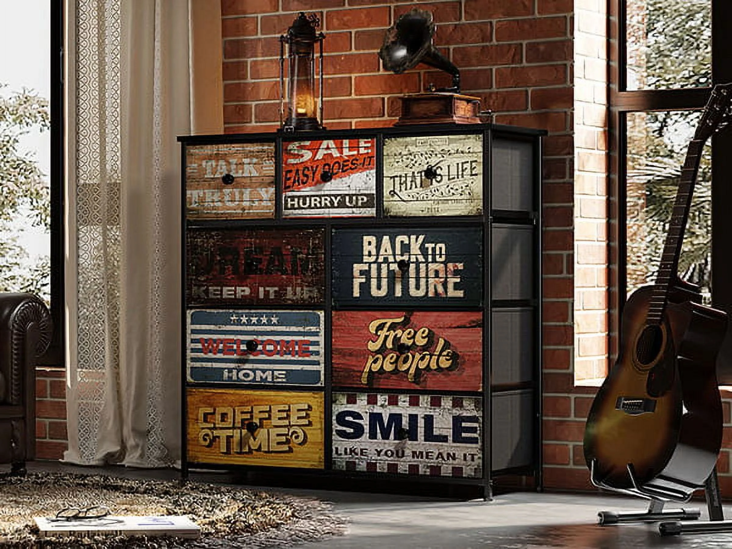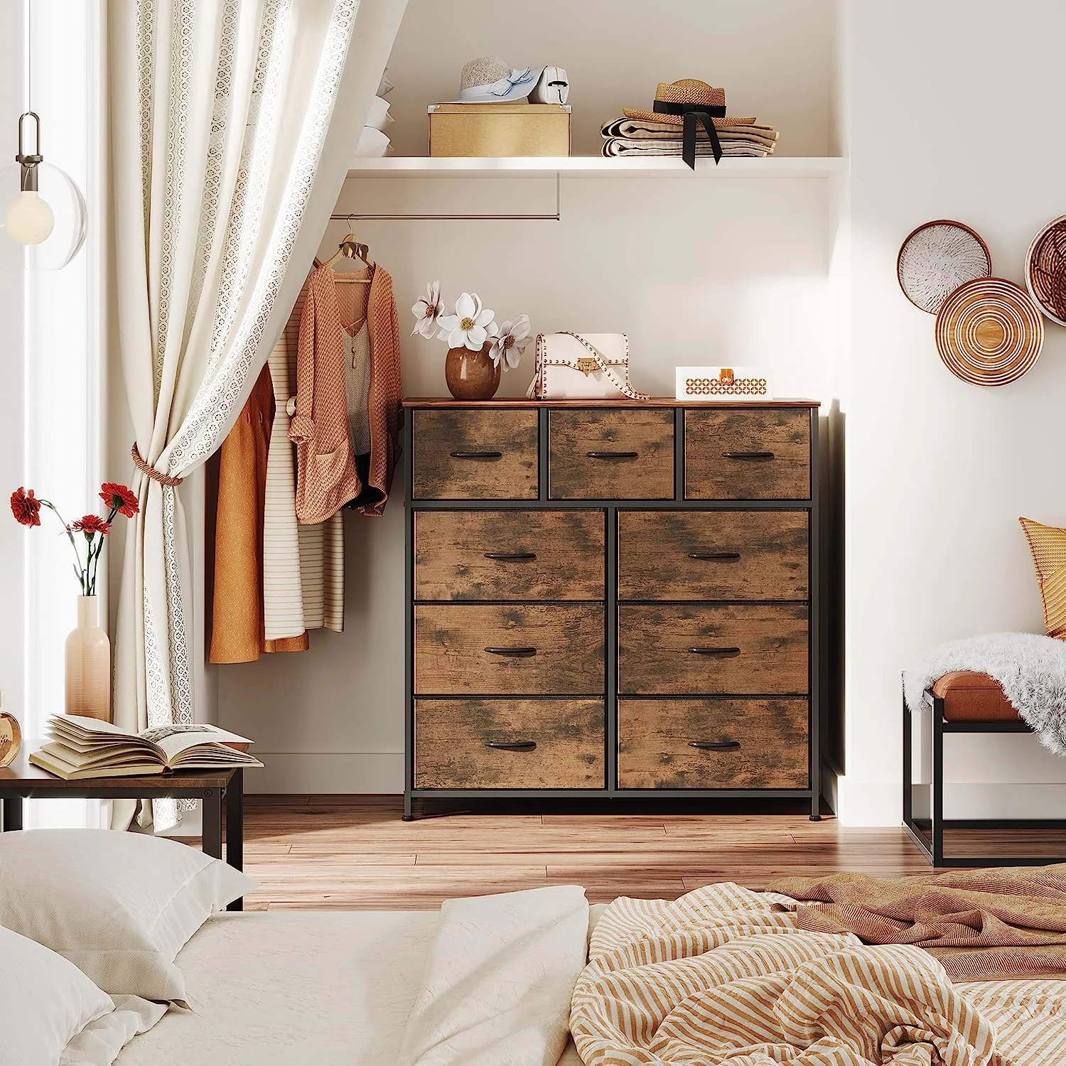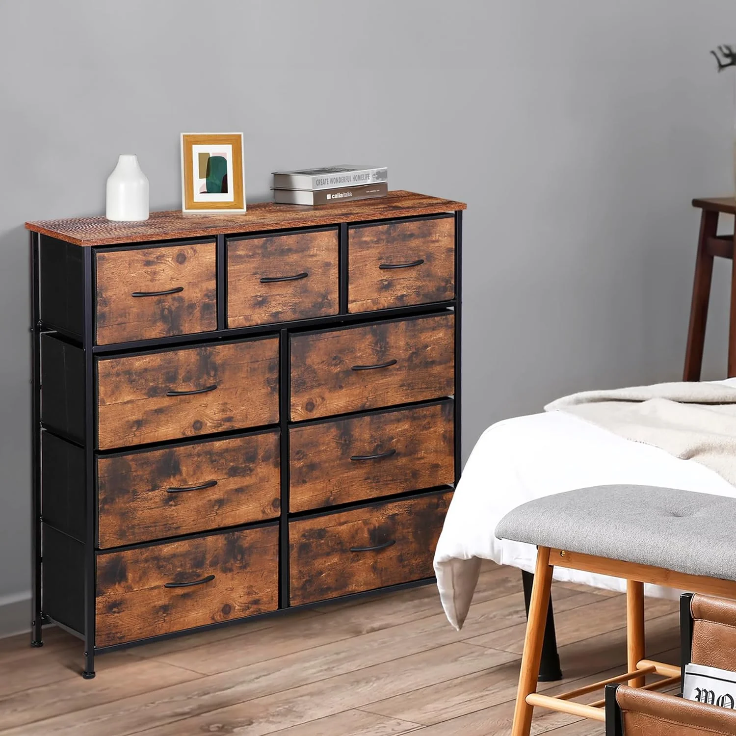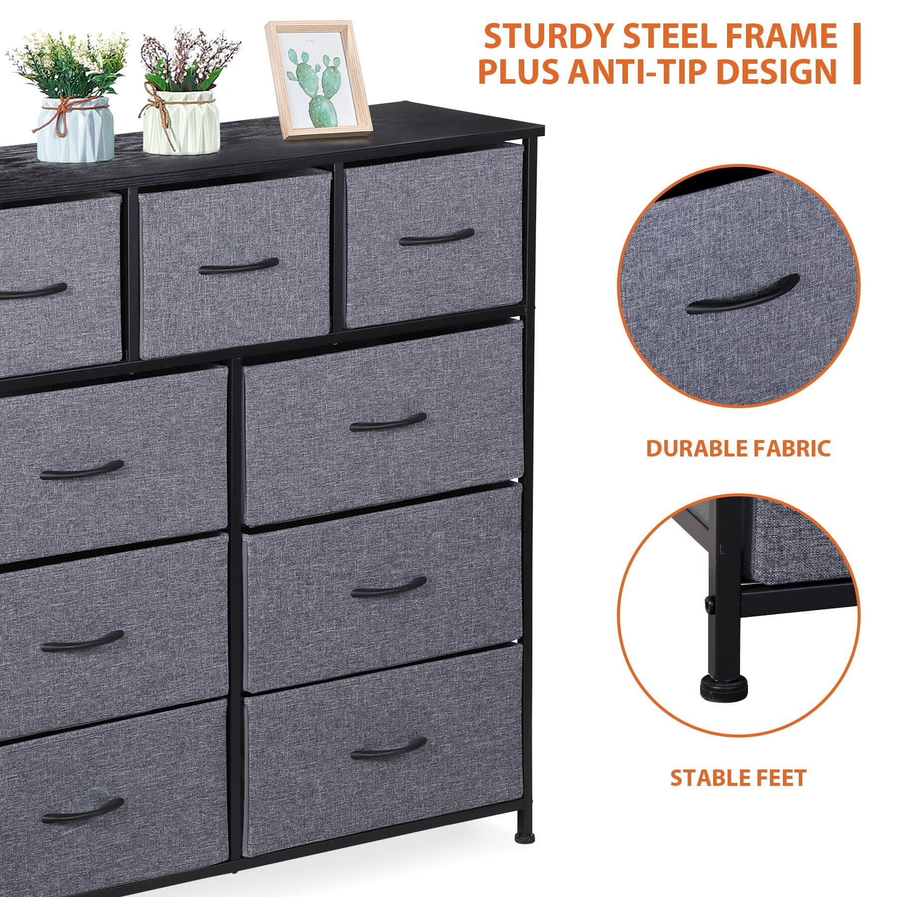 Nicehill 10 Drawer Tall Dresser for Bedroom Storage Tower with Wooden Top & Aluminum Frame