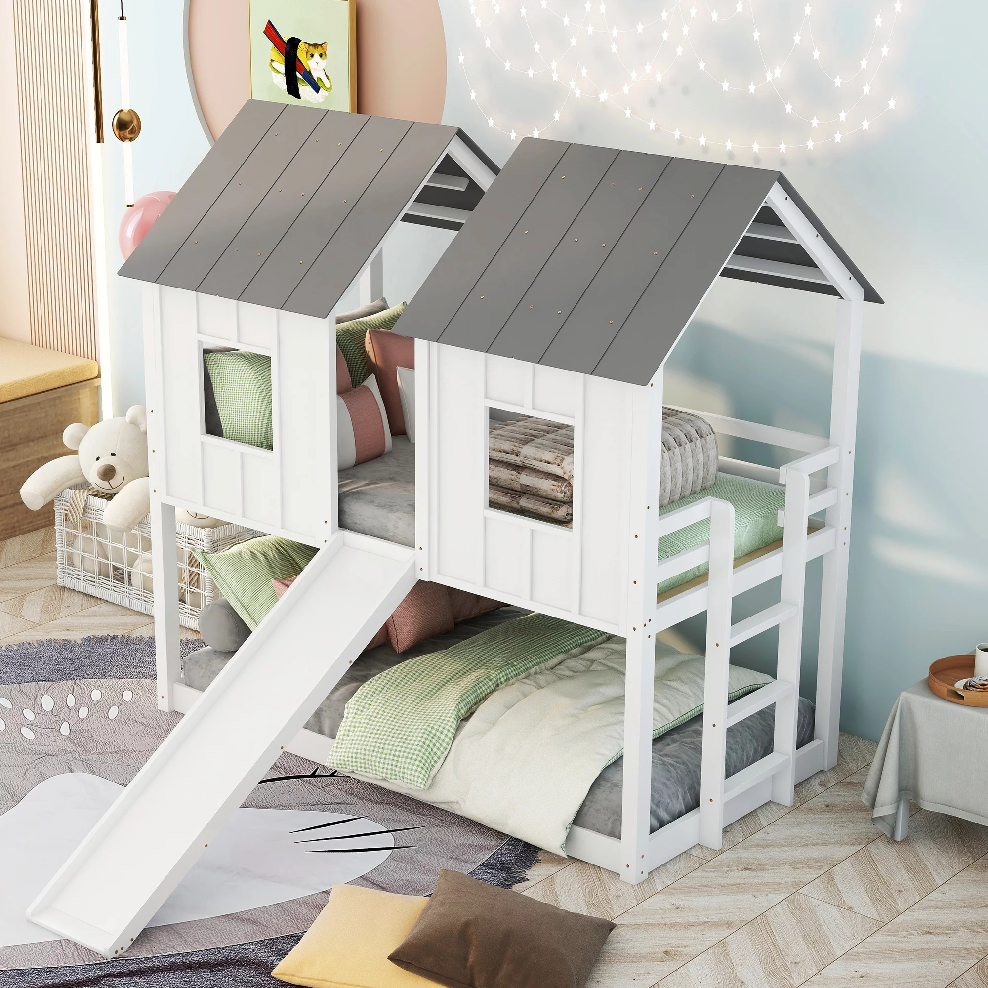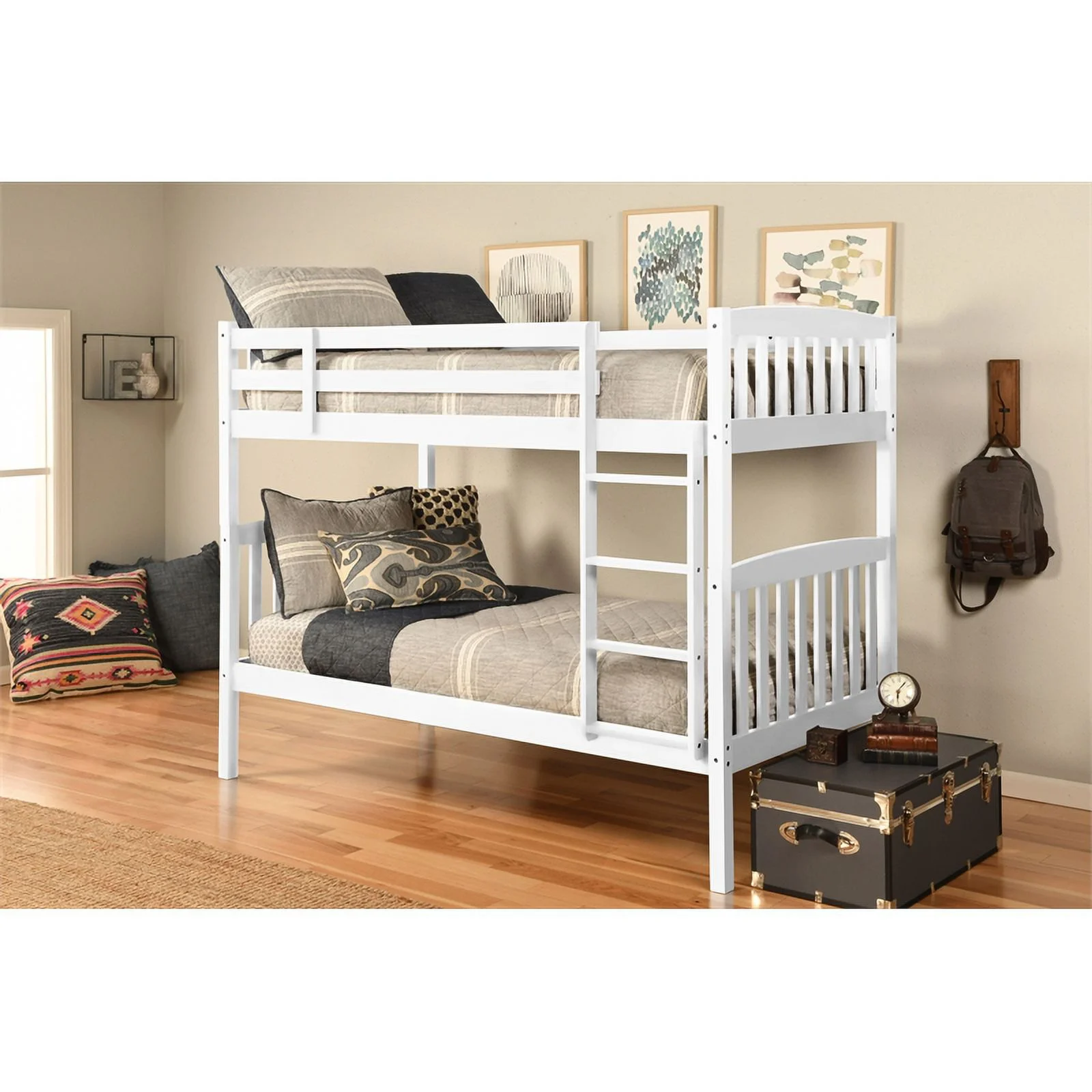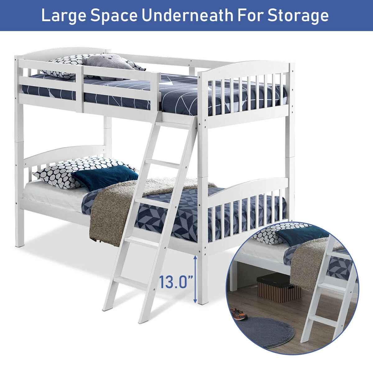 Gymax Wood Hardwood Twin Bunk Beds Convertible into 2 Individual Kid Bed Ladder White