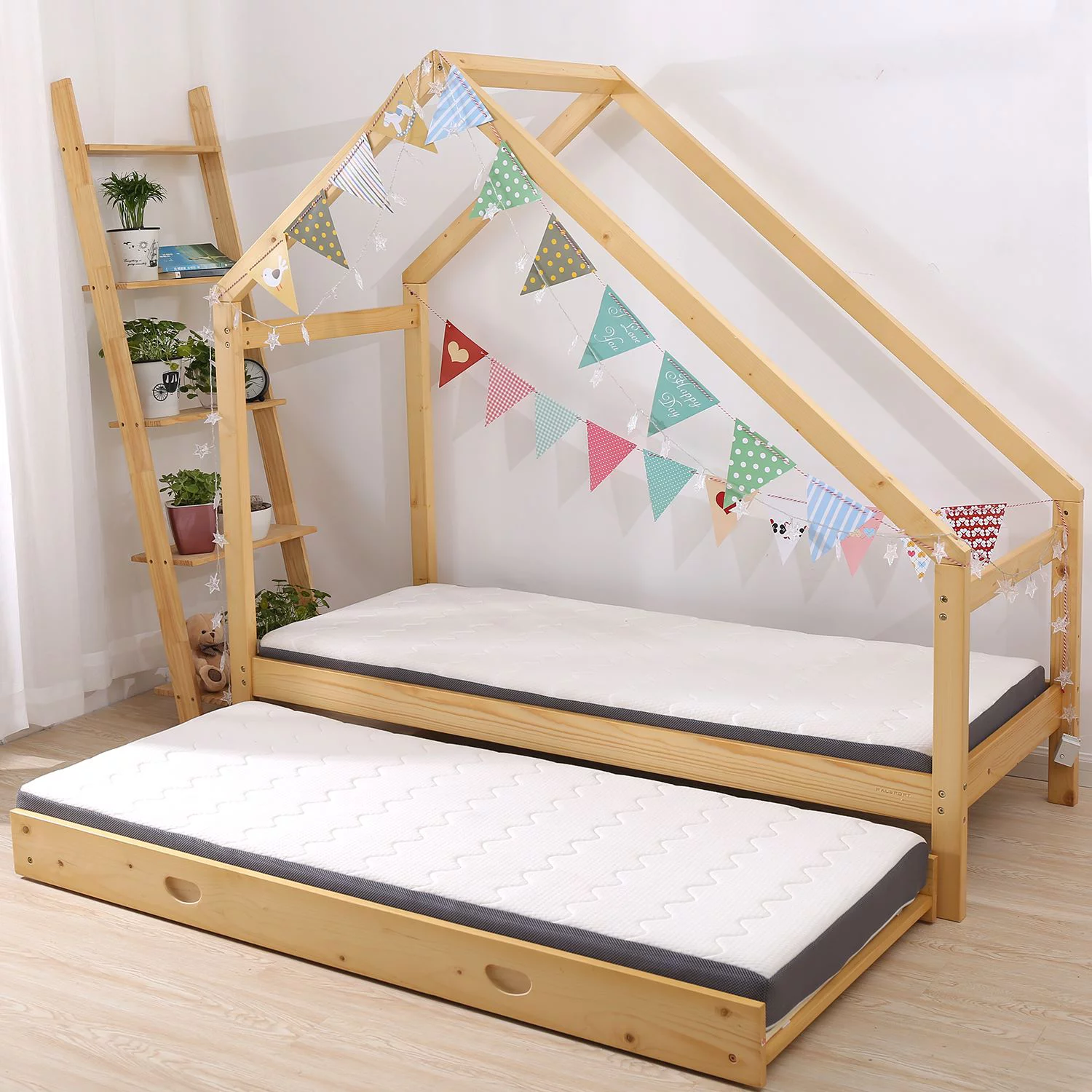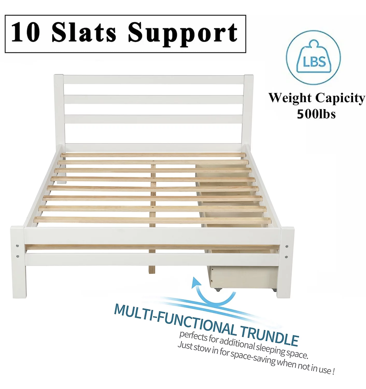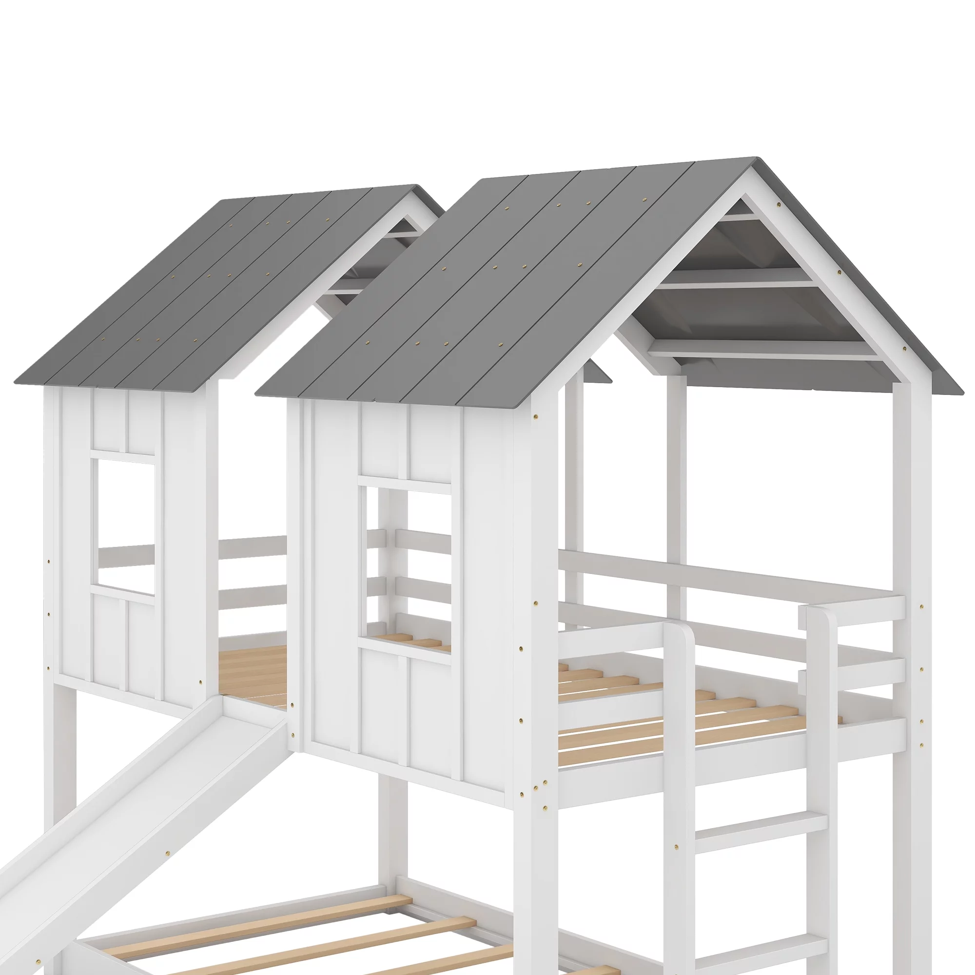 Gymax Wood Hardwood Twin Bunk Beds Convertible into 2 Individual Kid Bed Ladder White
