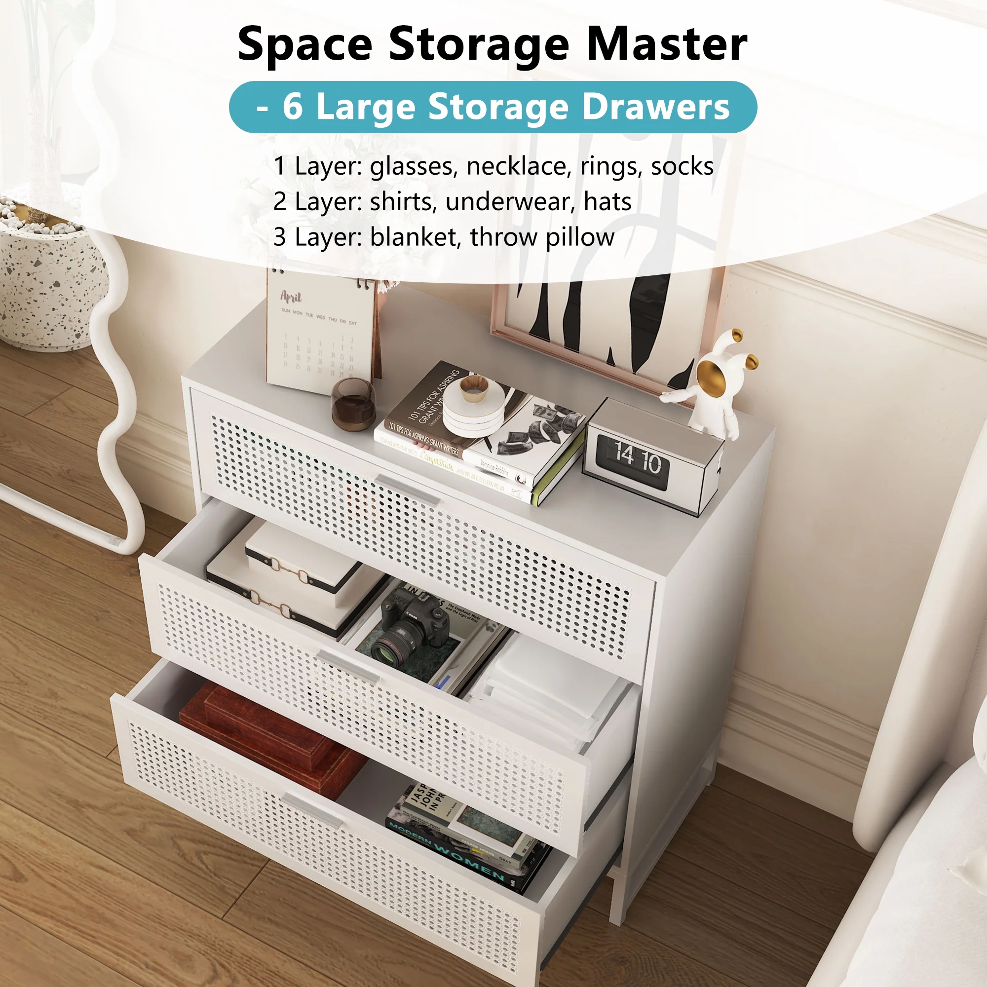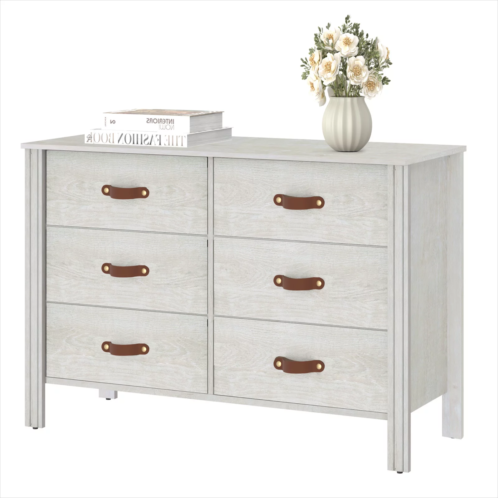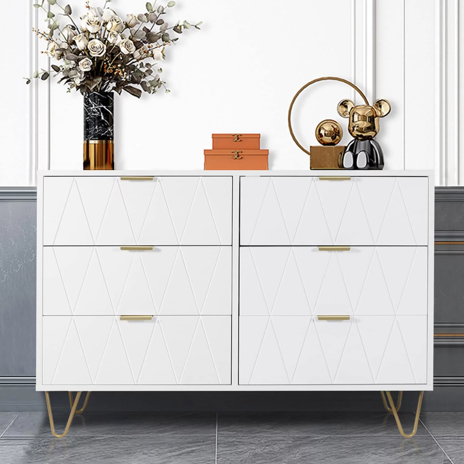 Classic Dresser for Bedroom, Wooden Dresser with 6 Drawers, Chest of Drawers for Living Room, Hallway, White