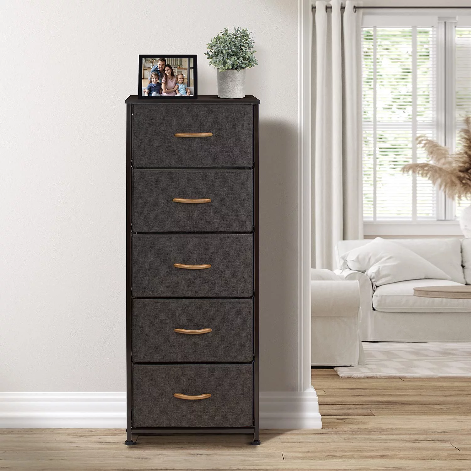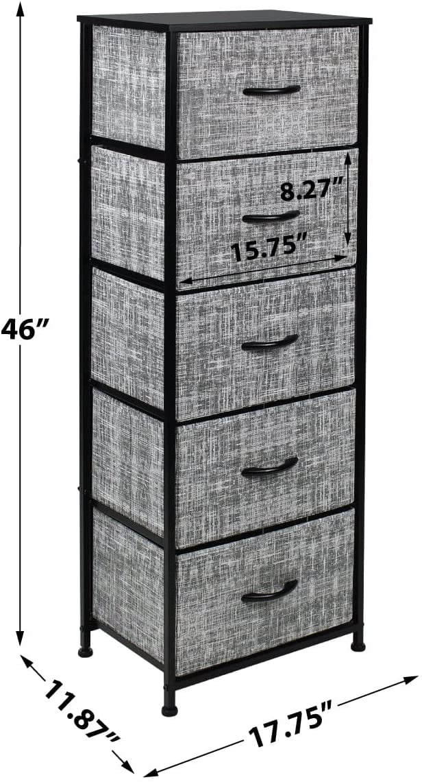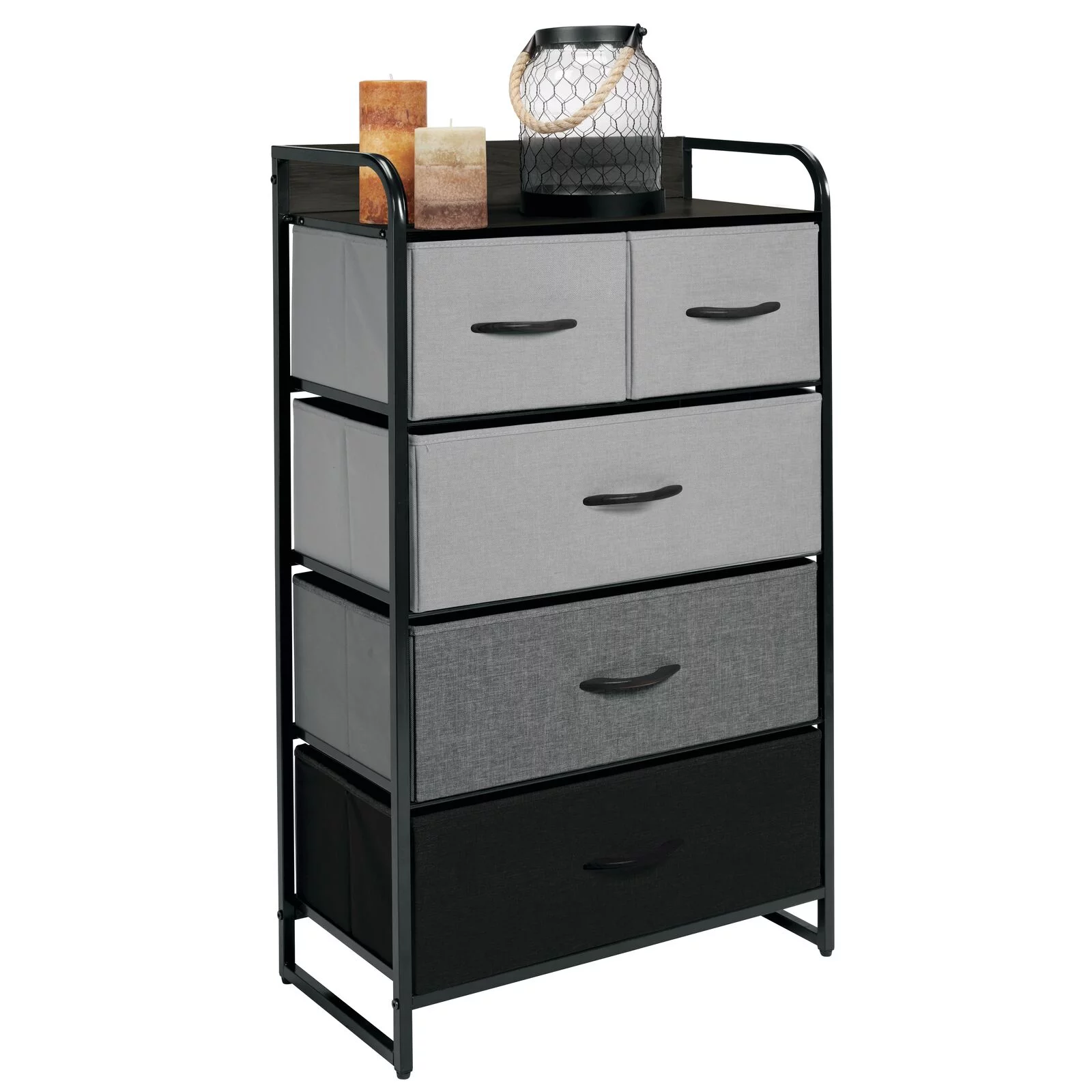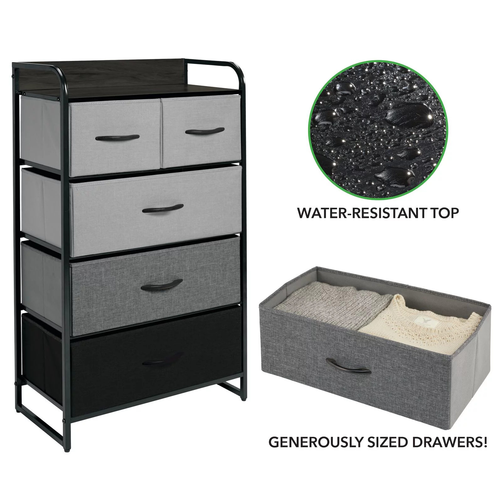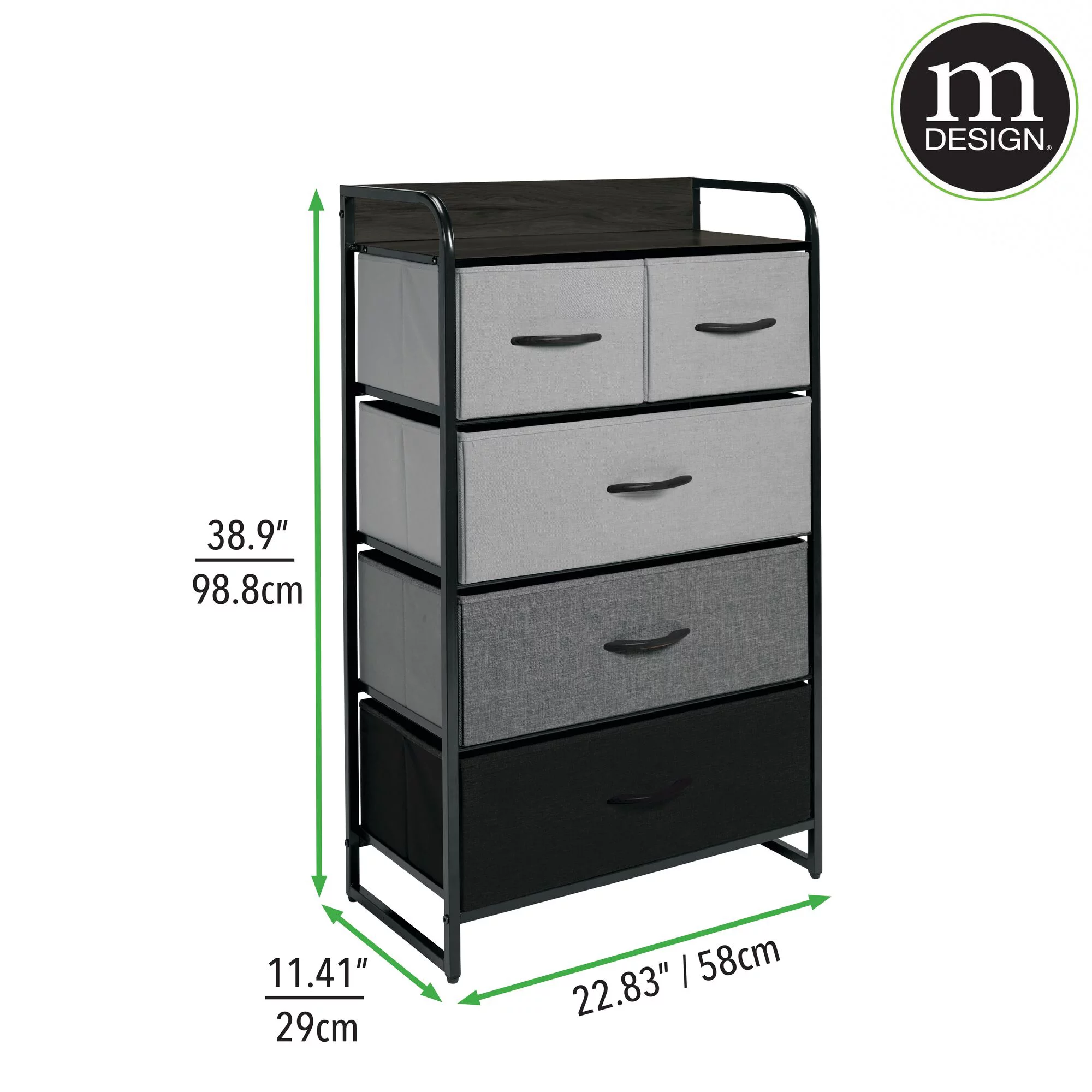 mDesign Tall Dresser Storage Chest, 5 Fabric Drawers - Gray/Multi-Color/Black