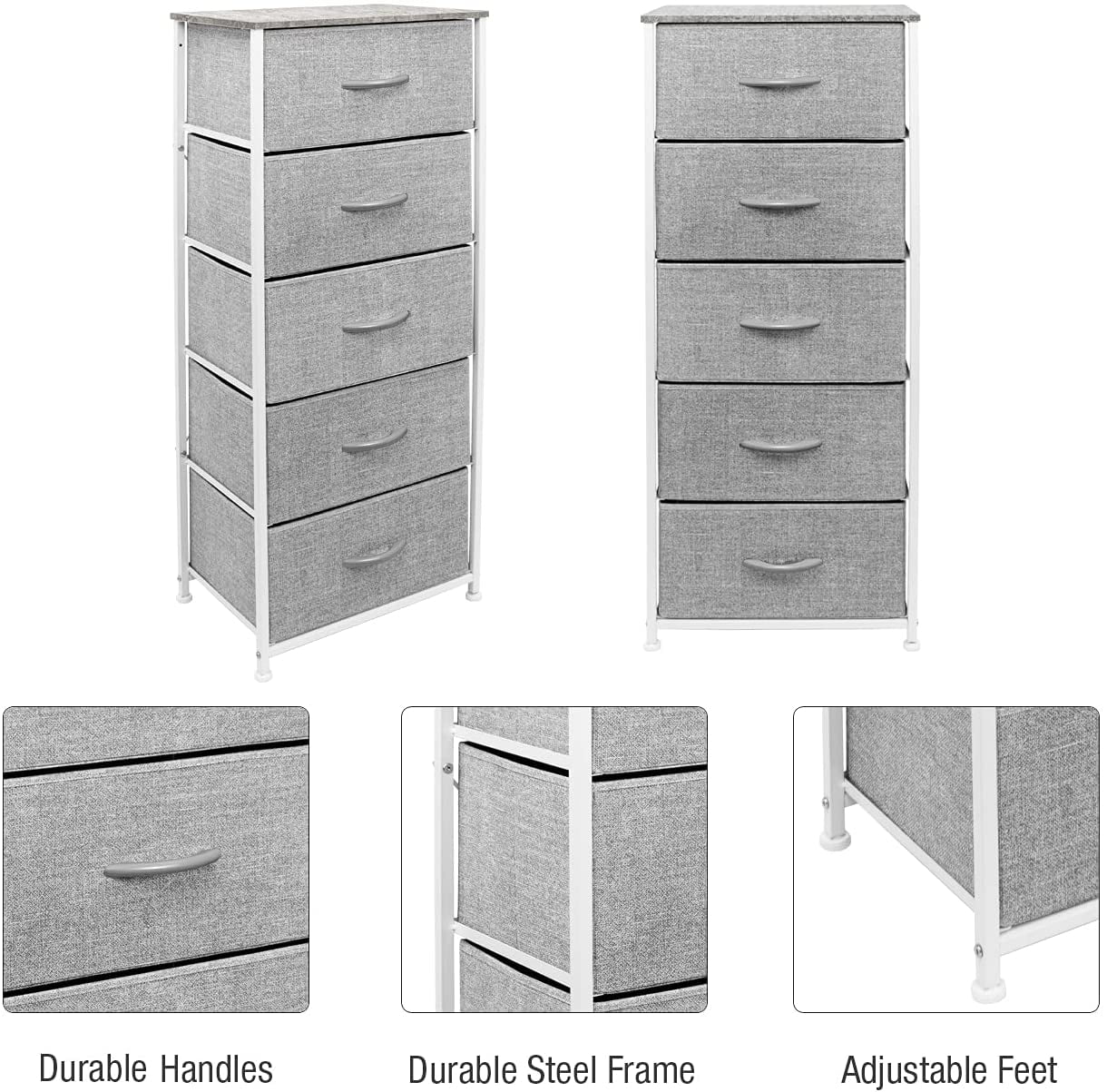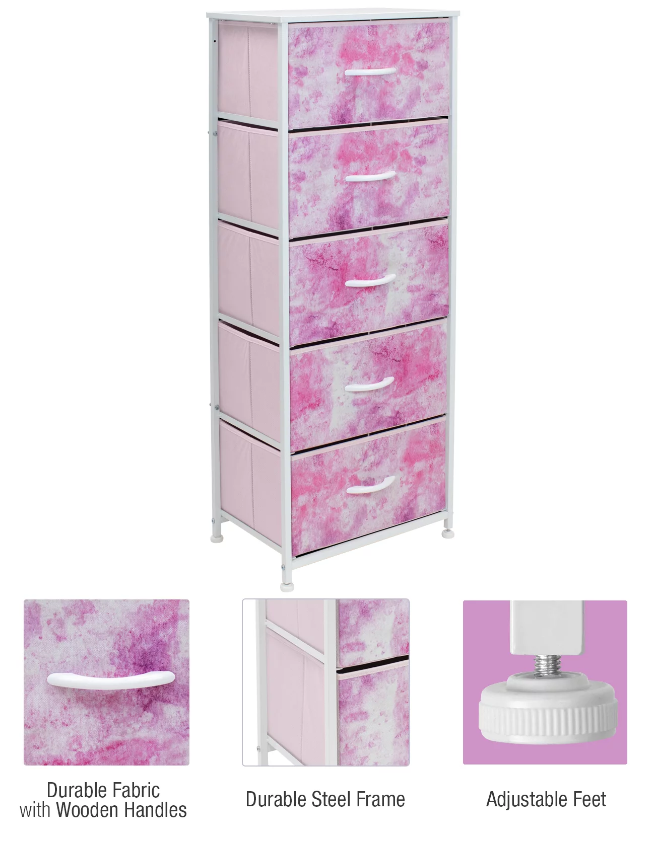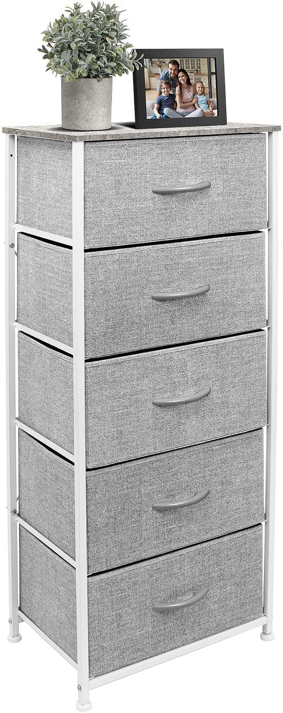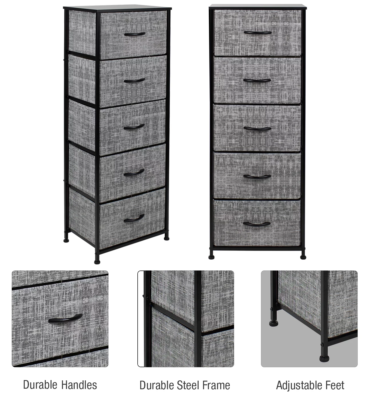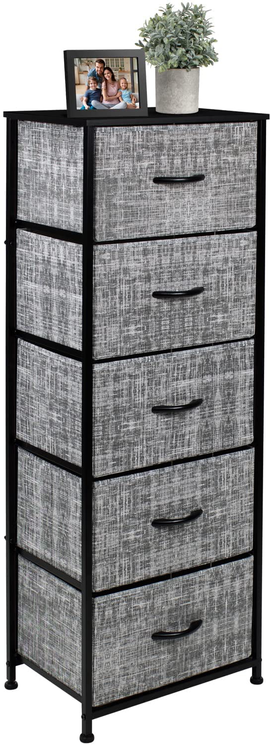 mDesign Tall Dresser Storage Chest, 5 Fabric Drawers - Gray/Multi-Color/Black
