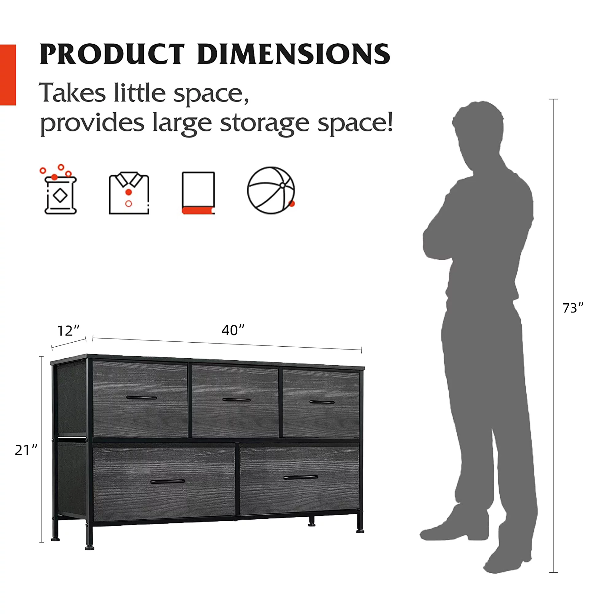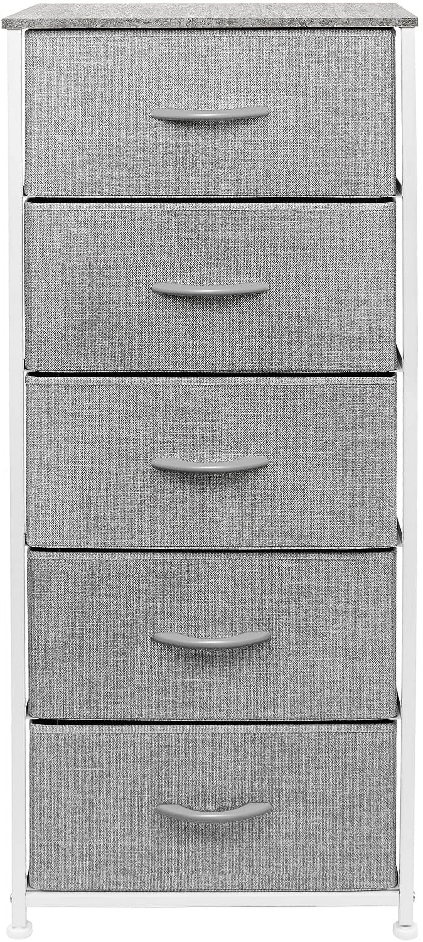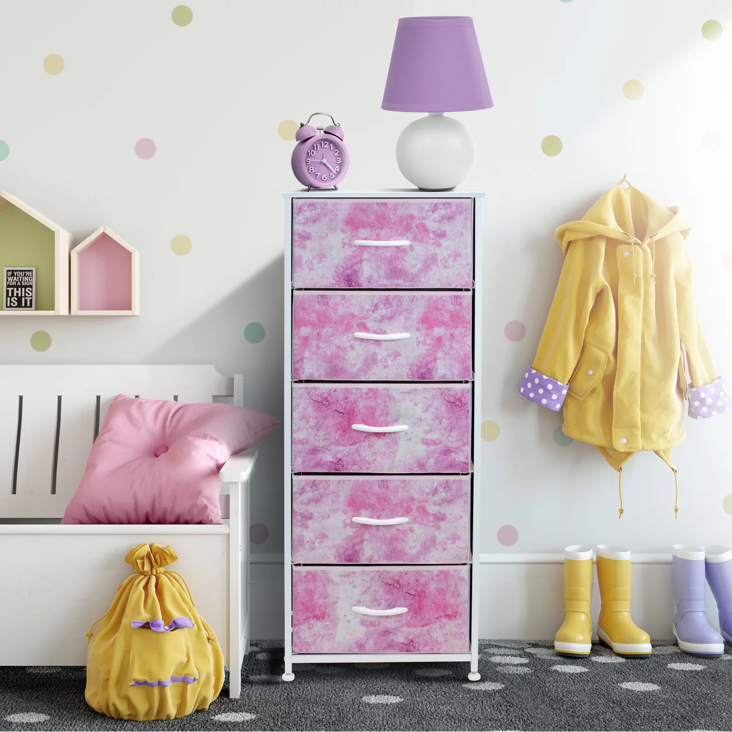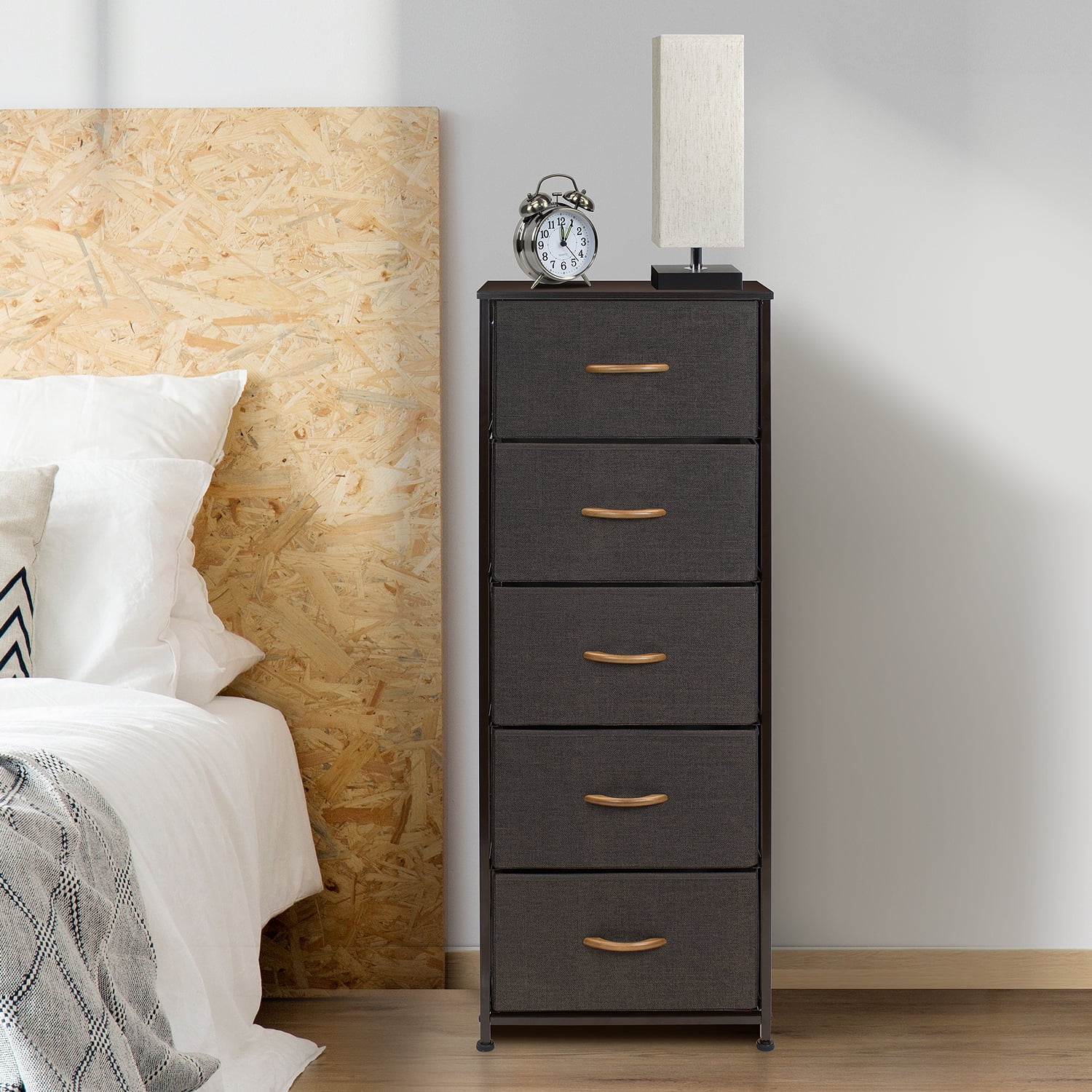 mDesign Tall Dresser Storage Chest, 5 Fabric Drawers - Gray/Multi-Color/Black