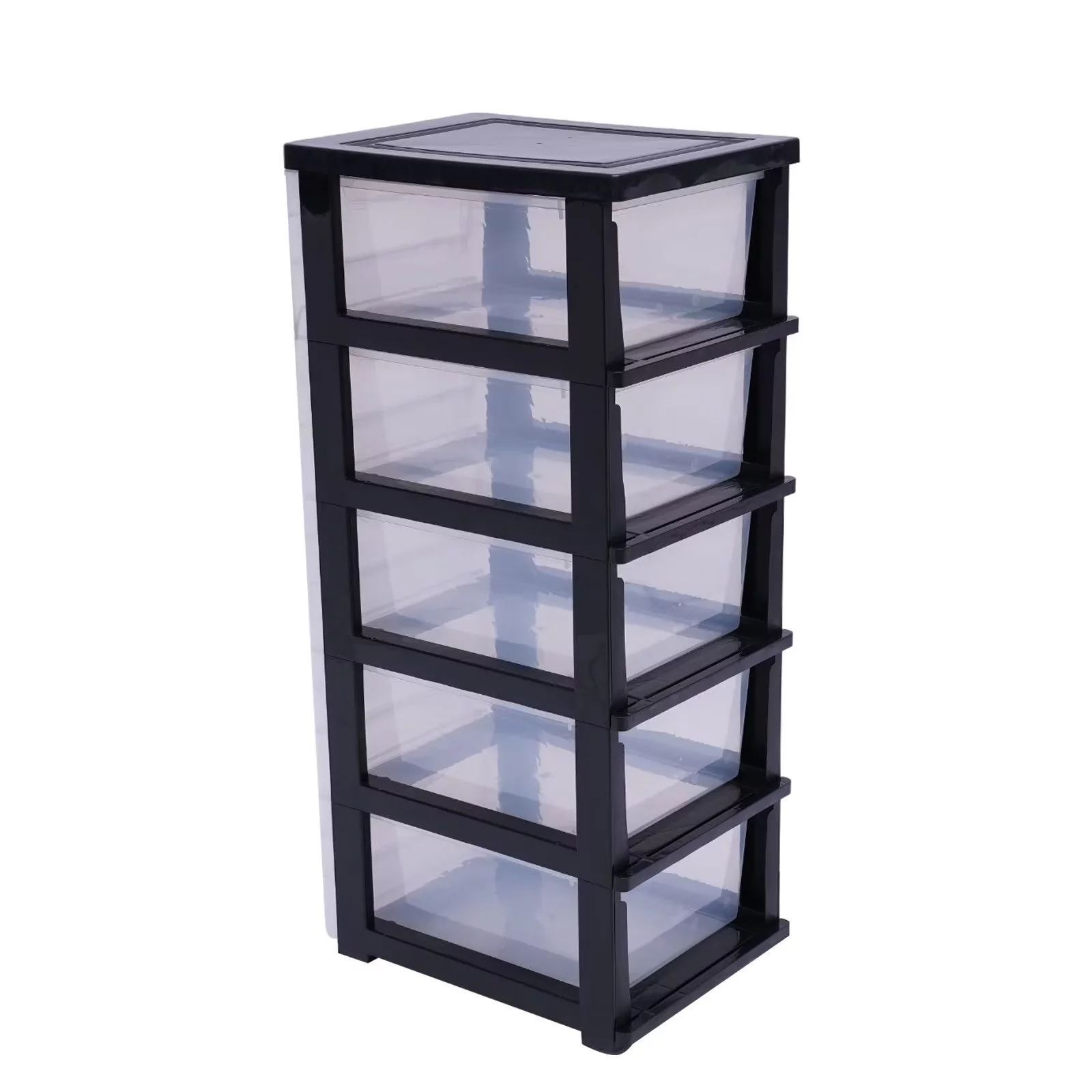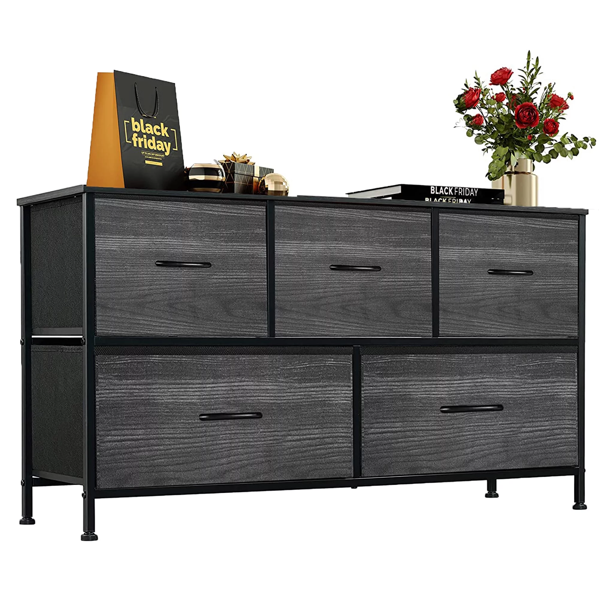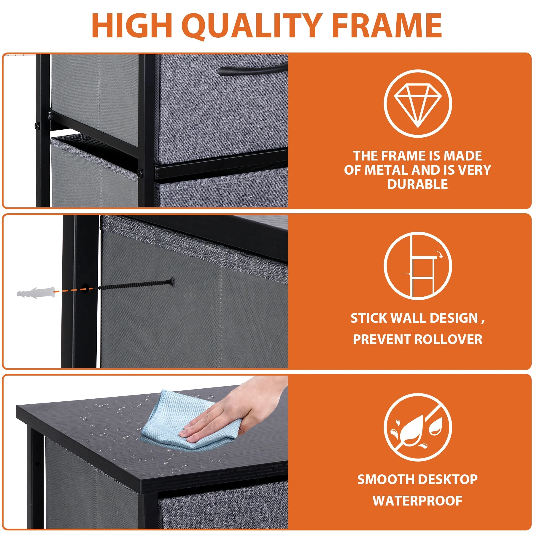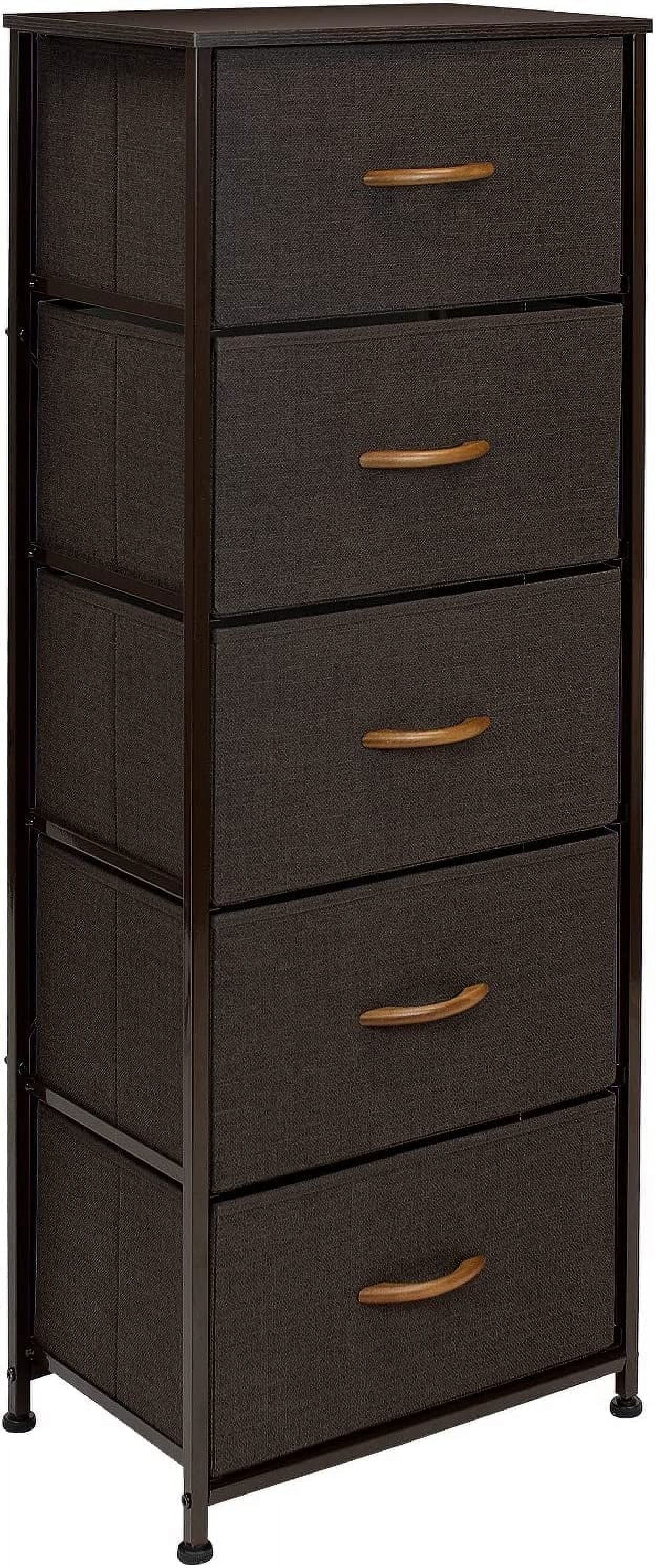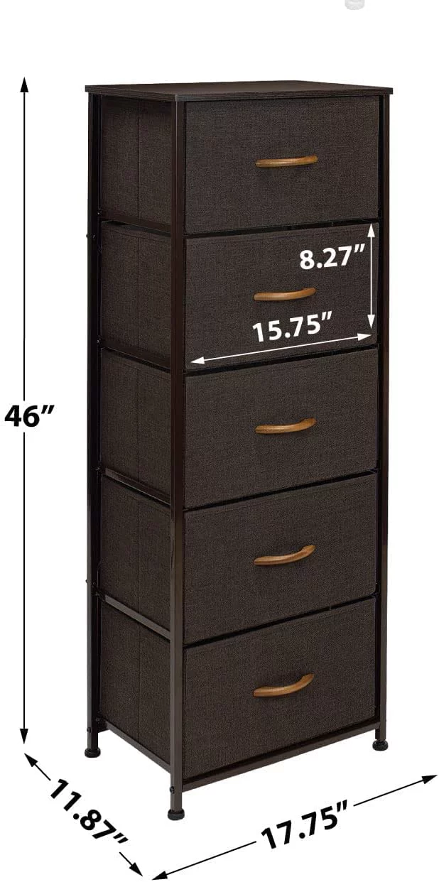 mDesign Tall Dresser Storage Chest, 5 Fabric Drawers - Gray/Multi-Color/Black