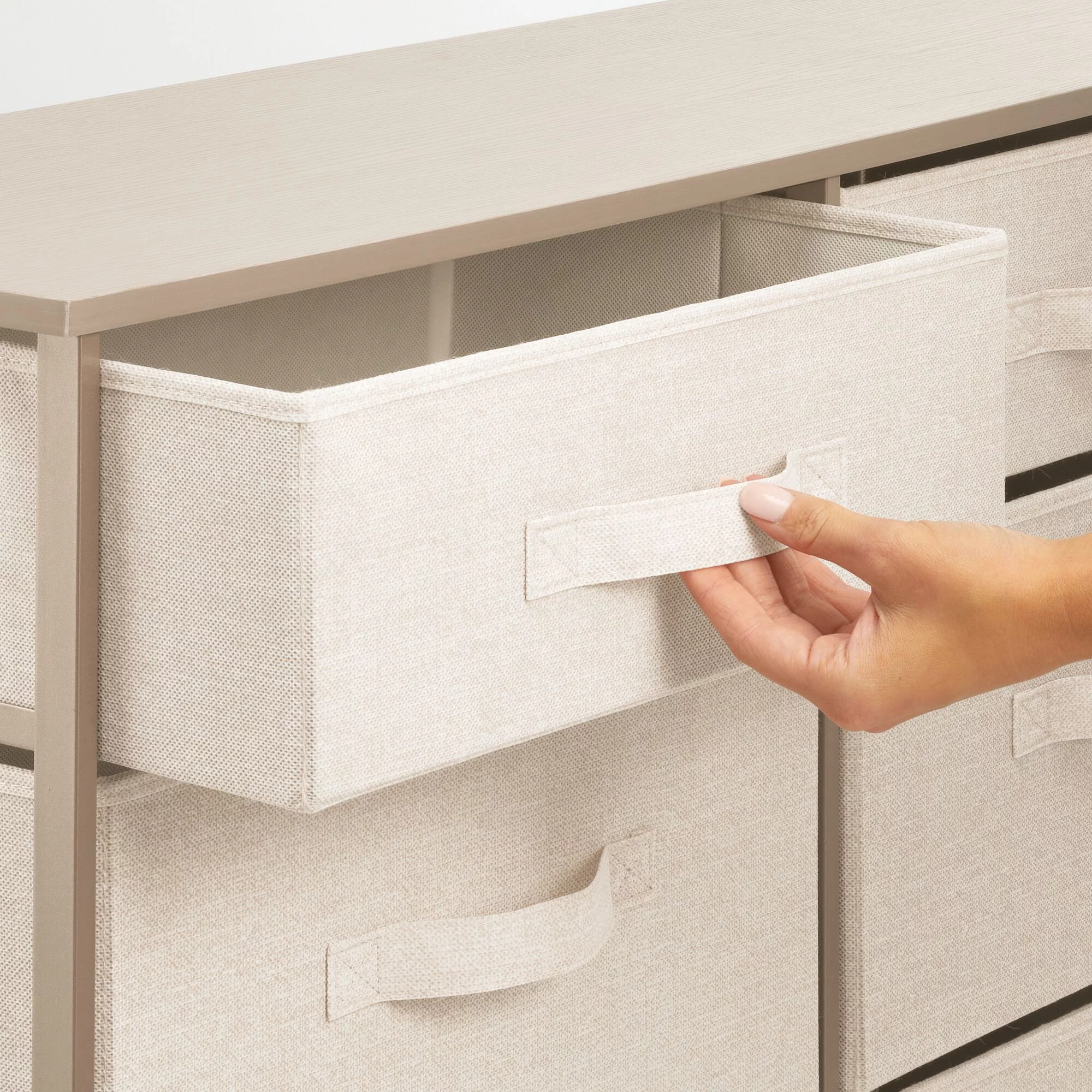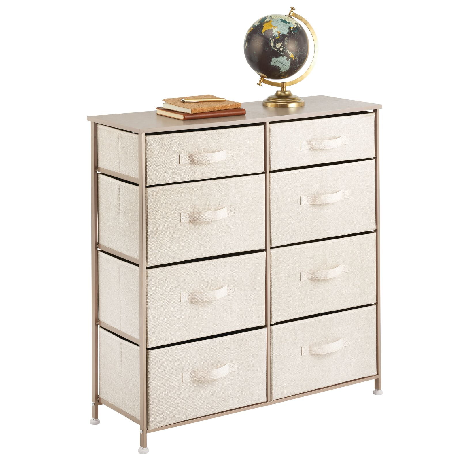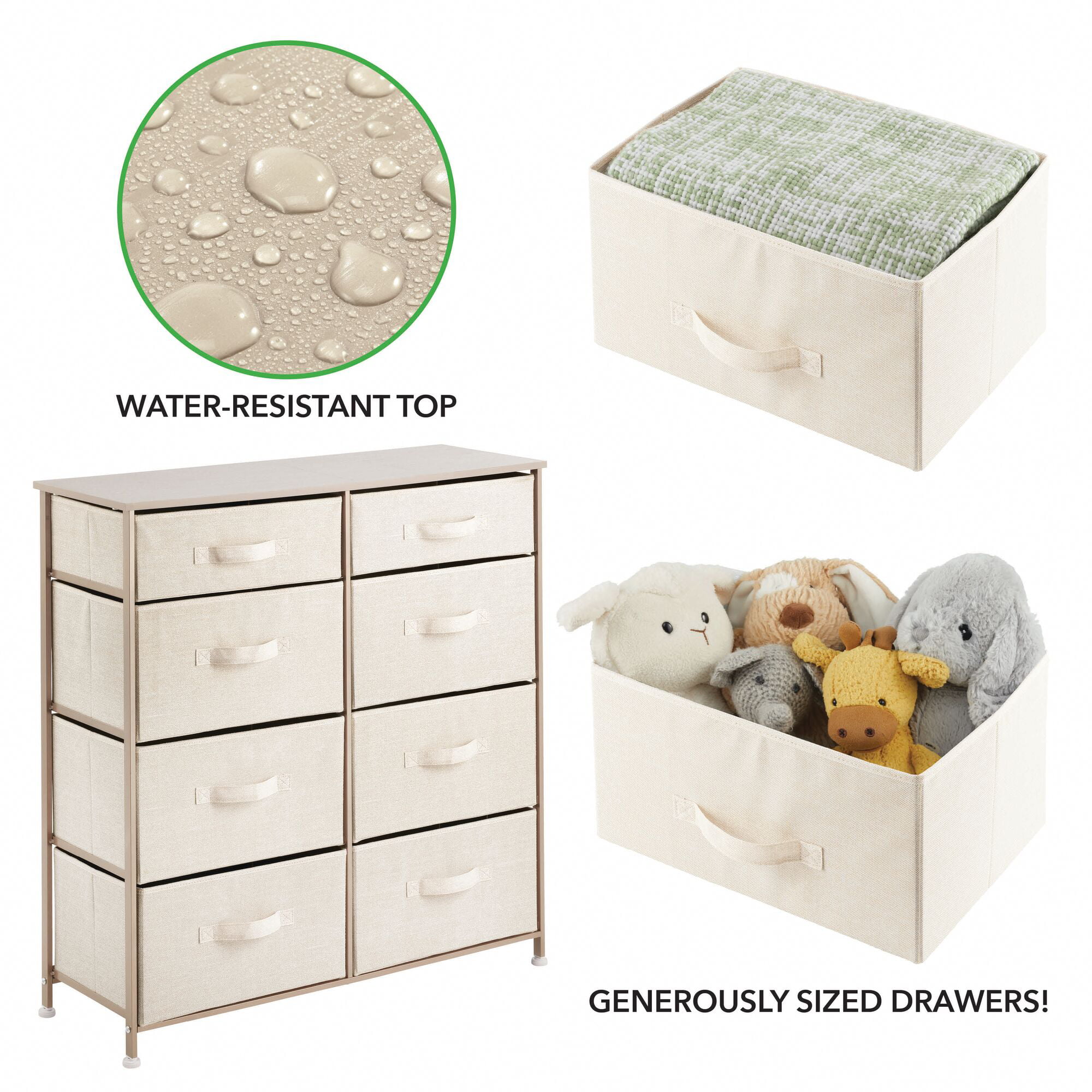 mDesign Tall Storage Dresser Furniture with 8 Slim Fabric Drawers, Cream/Gold