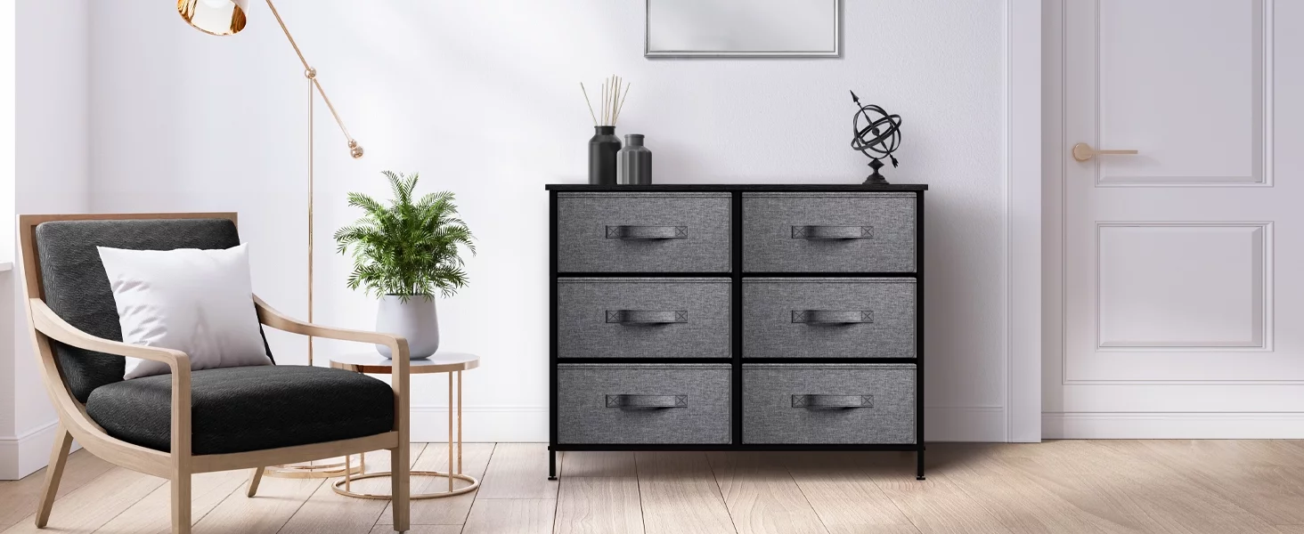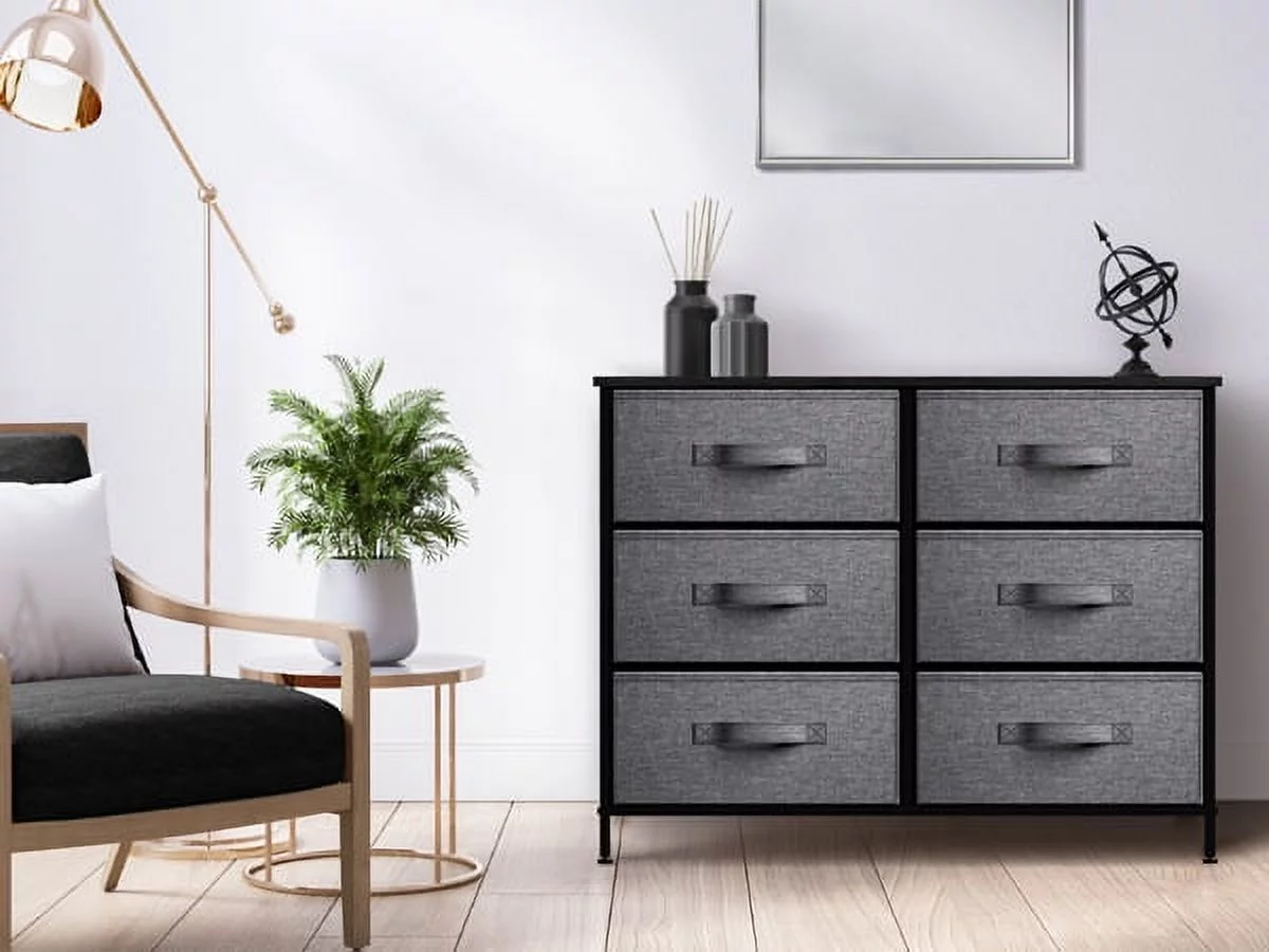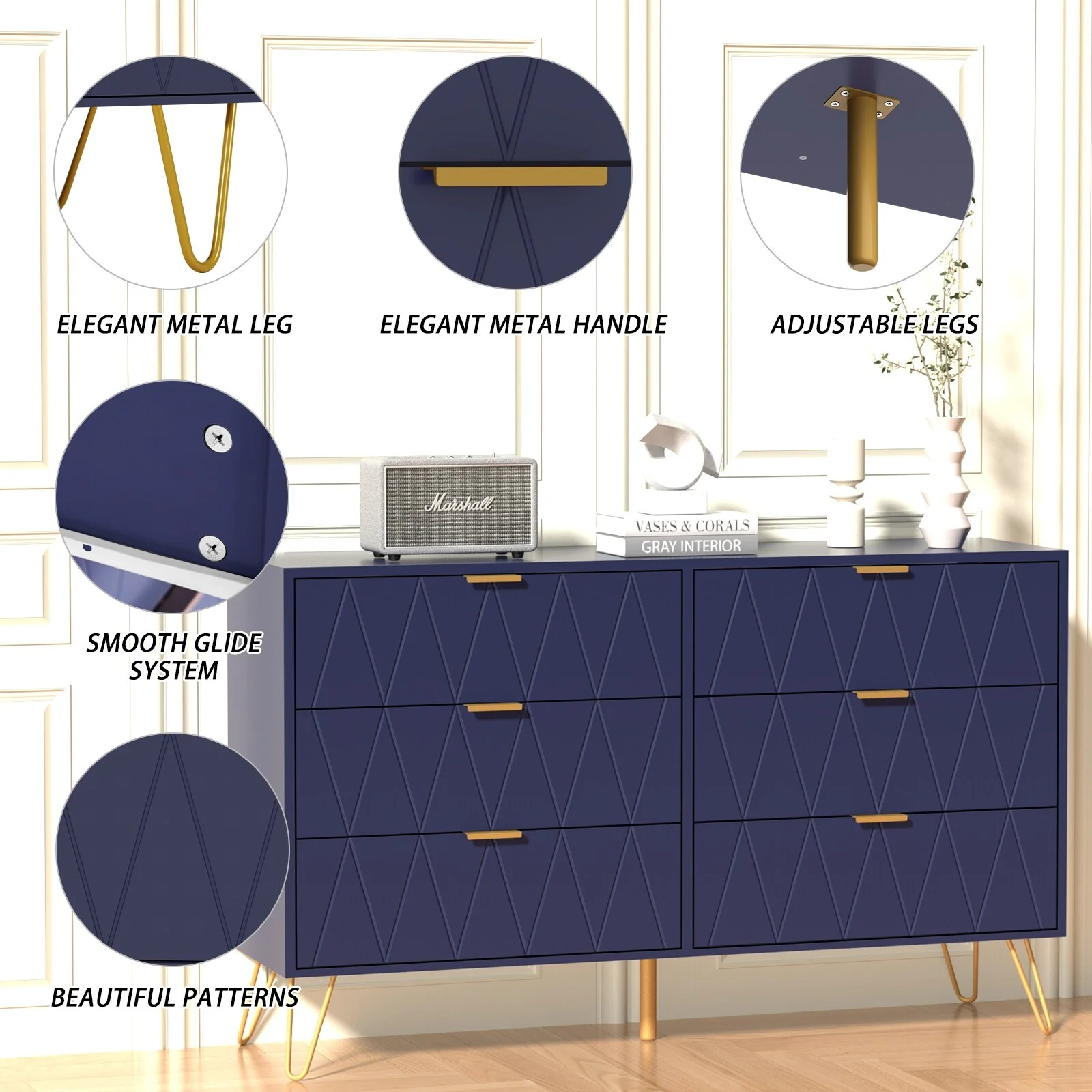 6 Drawer Dresser Drawer Chest Tall Storage Cabinet Organizer Unit Bedroom Living Room Large-Navy Blue