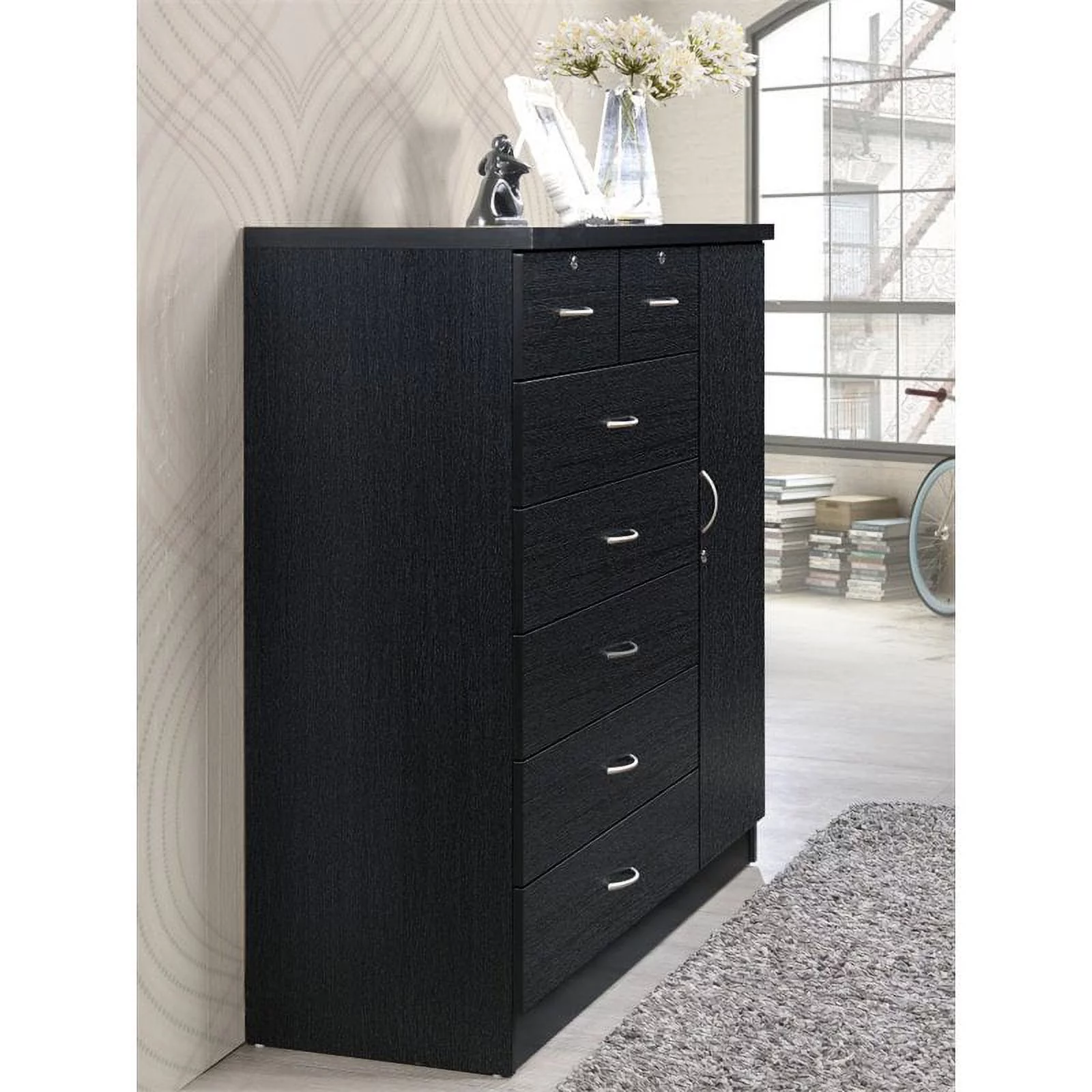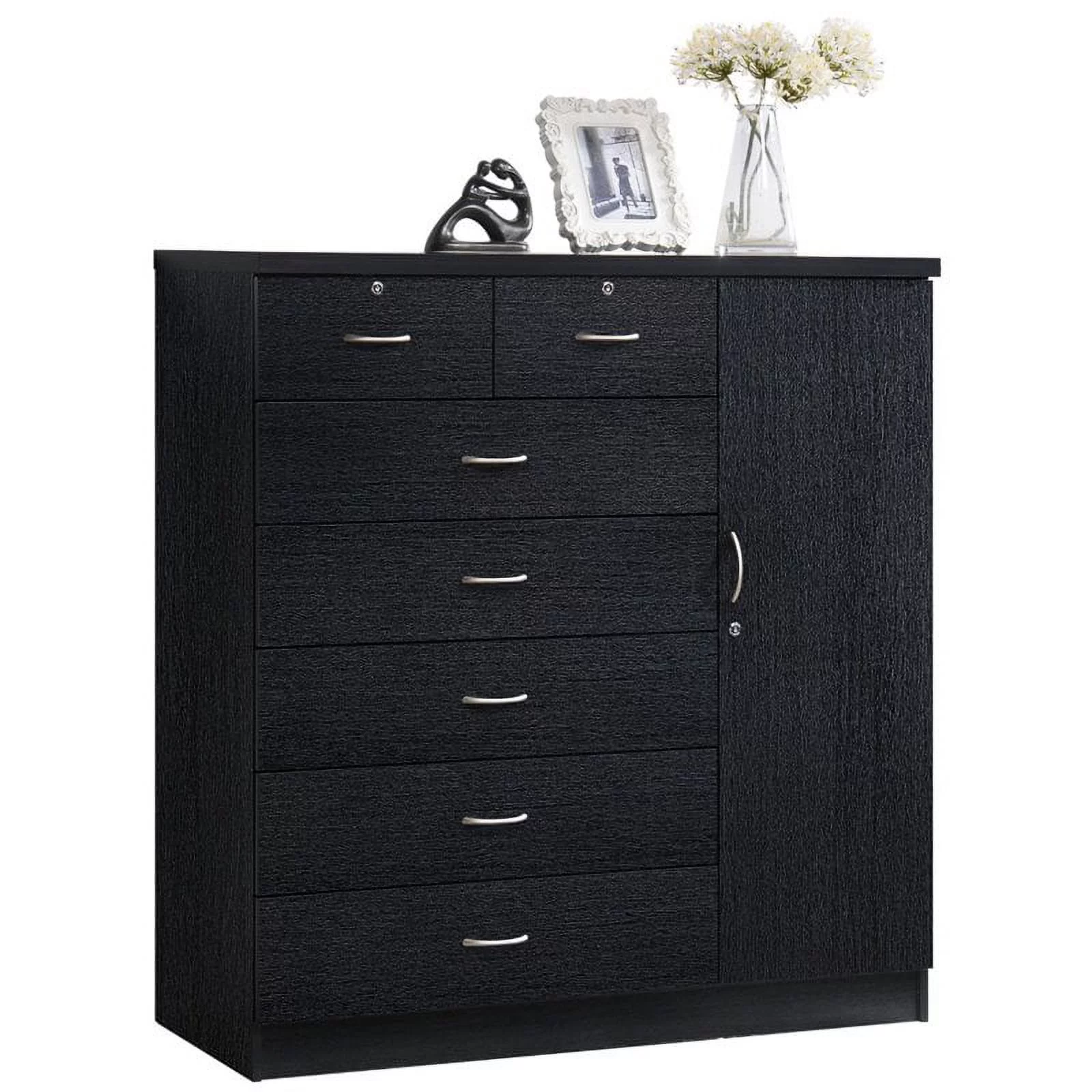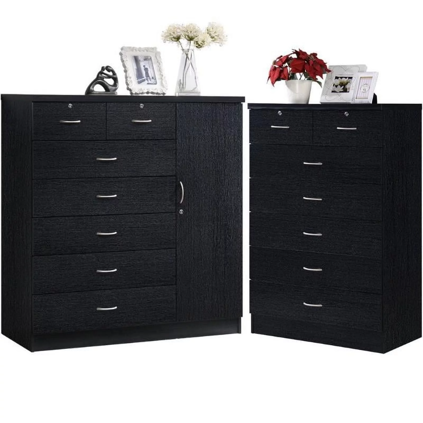 Home Square Hodedah 2 Piece 7 Drawer Wood Chest Set with Locks in Black
