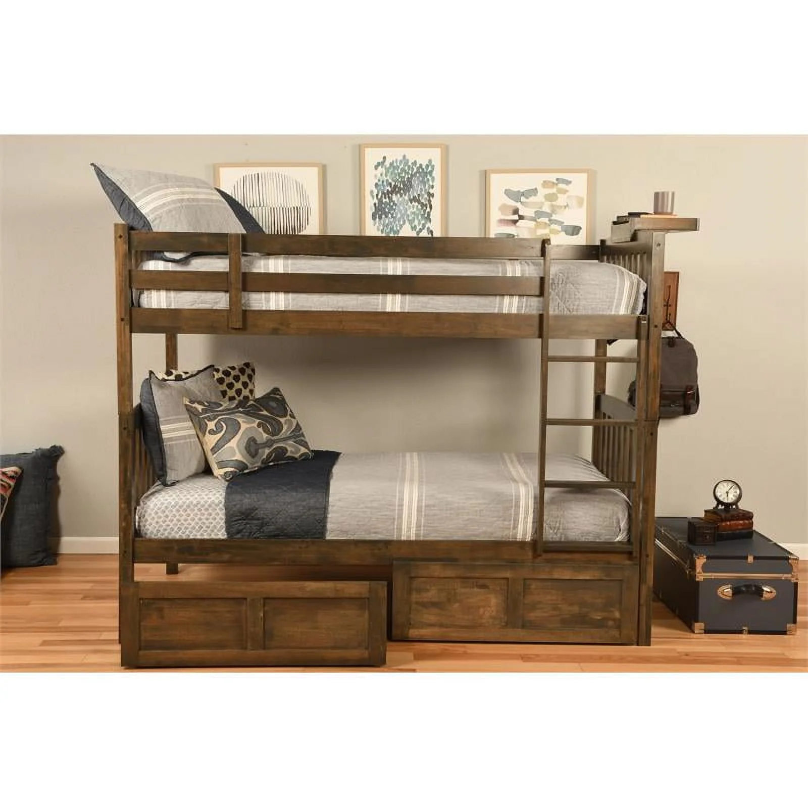 Kodiak Furniture Claire Twin Wood Bunk Bed with Storage Drawers/Tray in Brown
