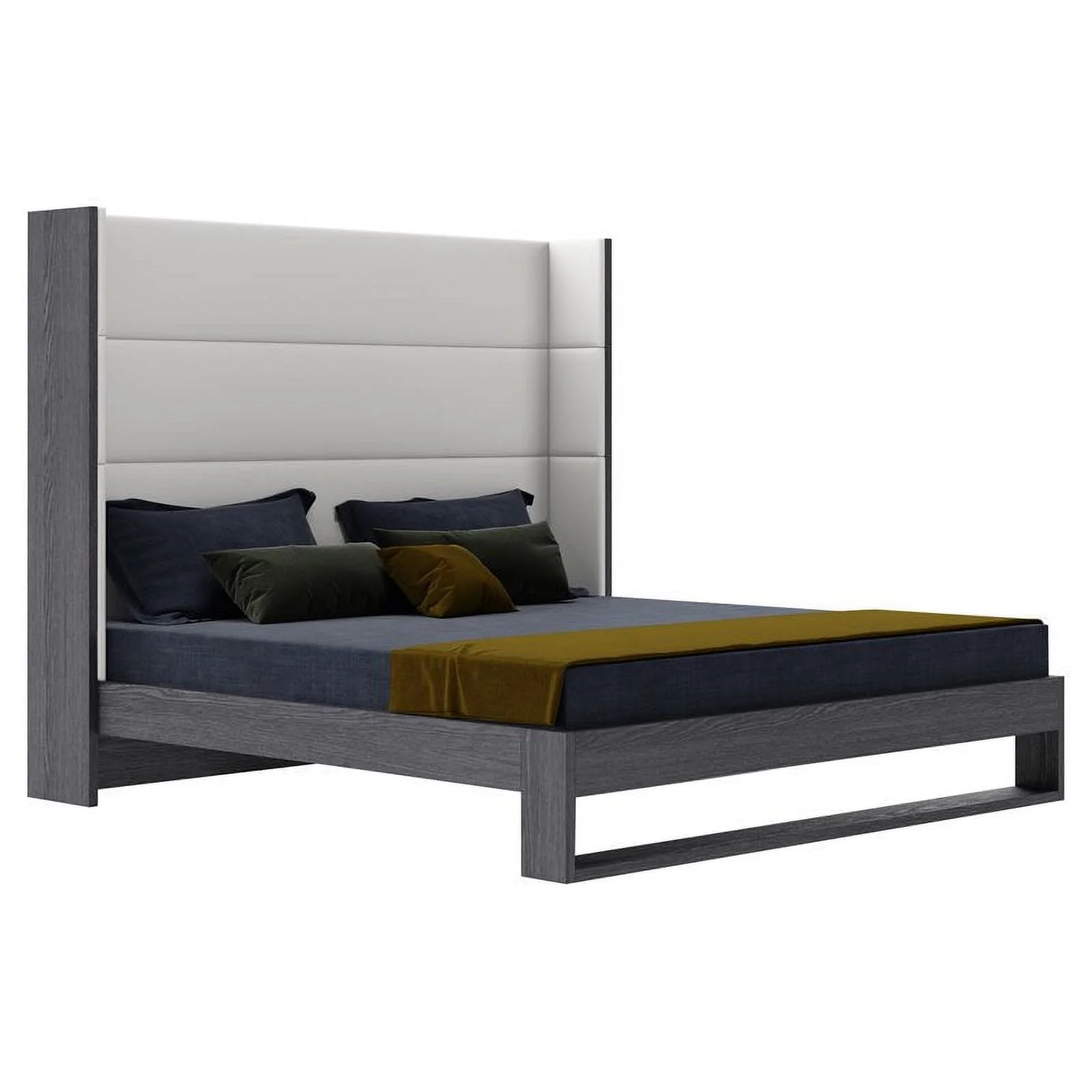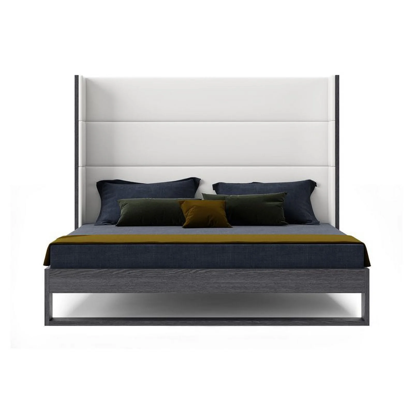 Modrest Heloise 89x96" Contemporary Vegan Leather EK Bed in Elm Gray/White