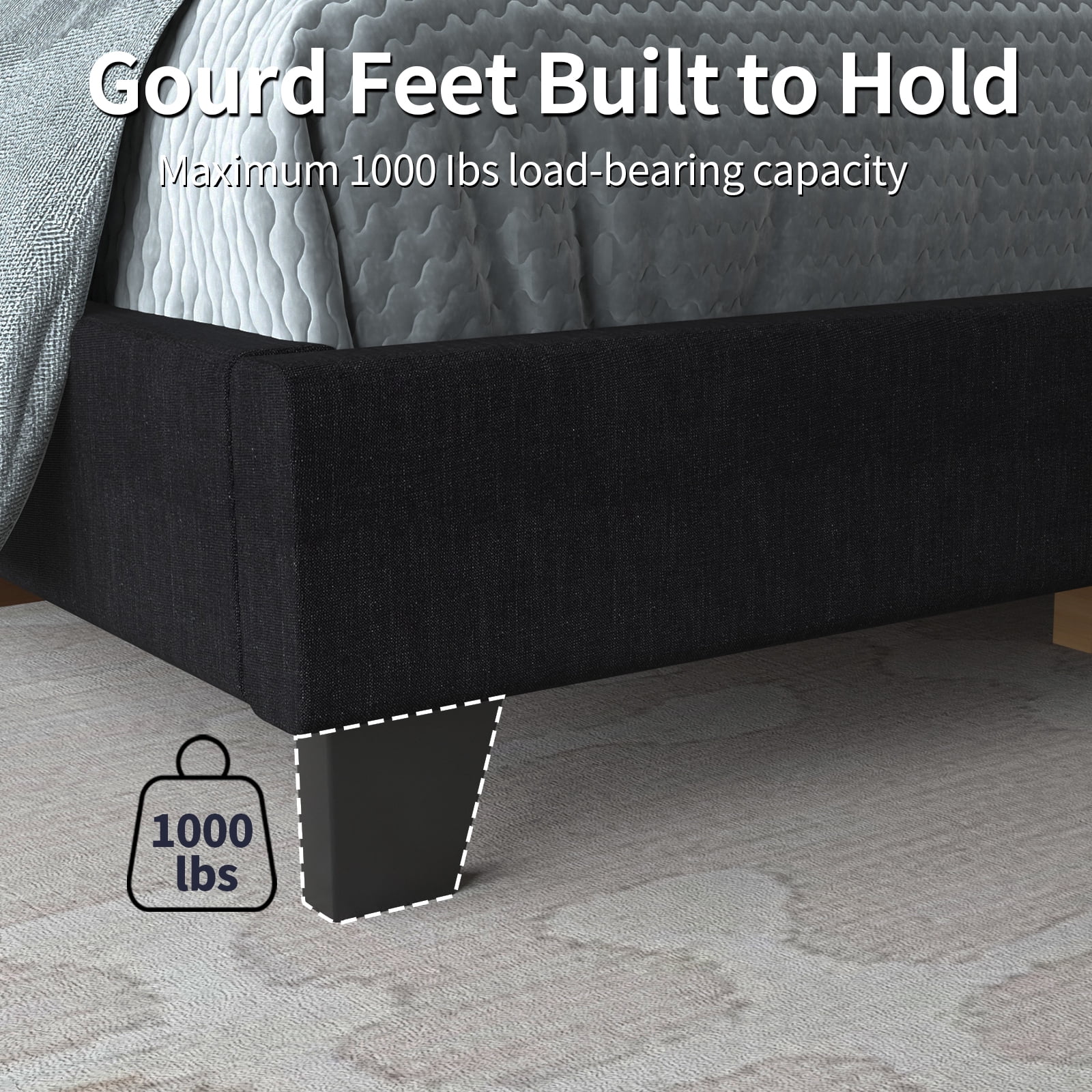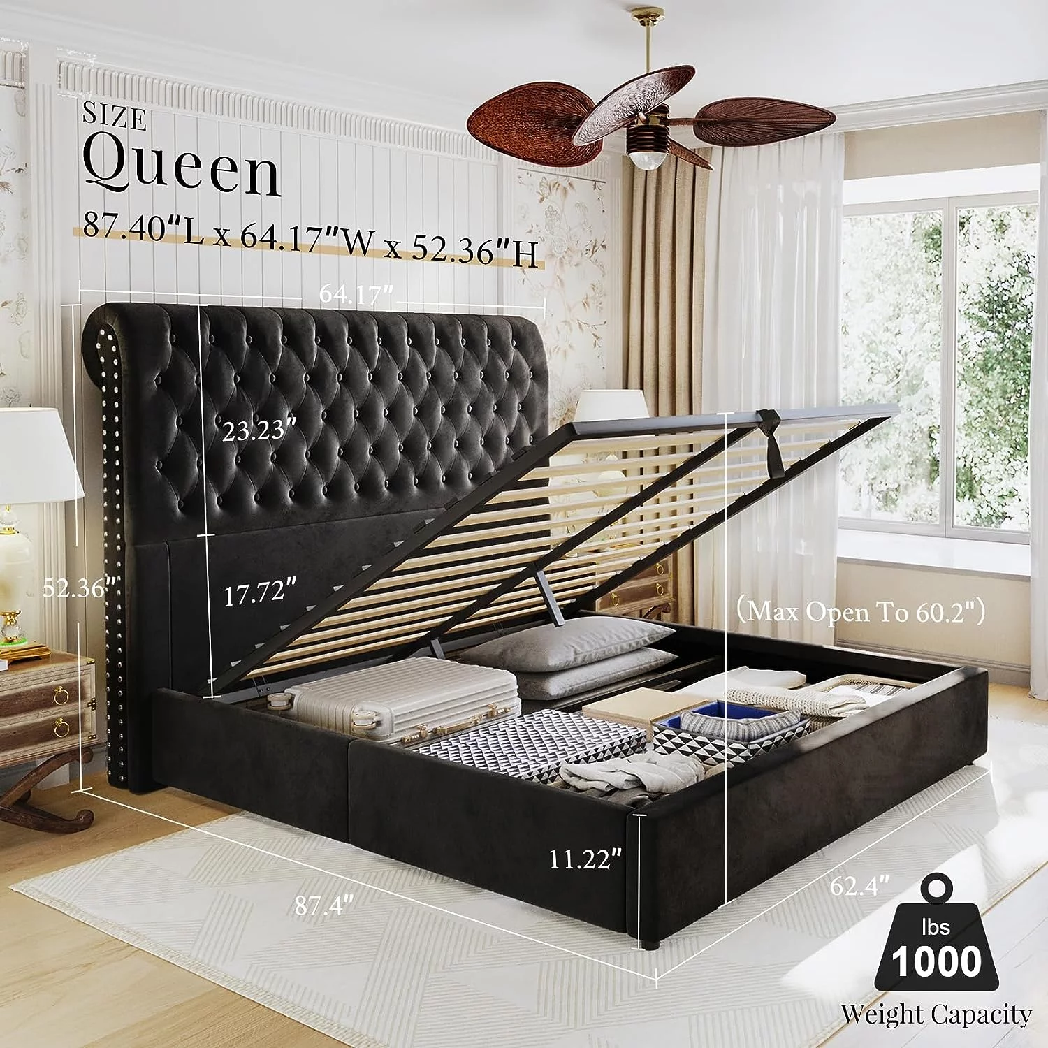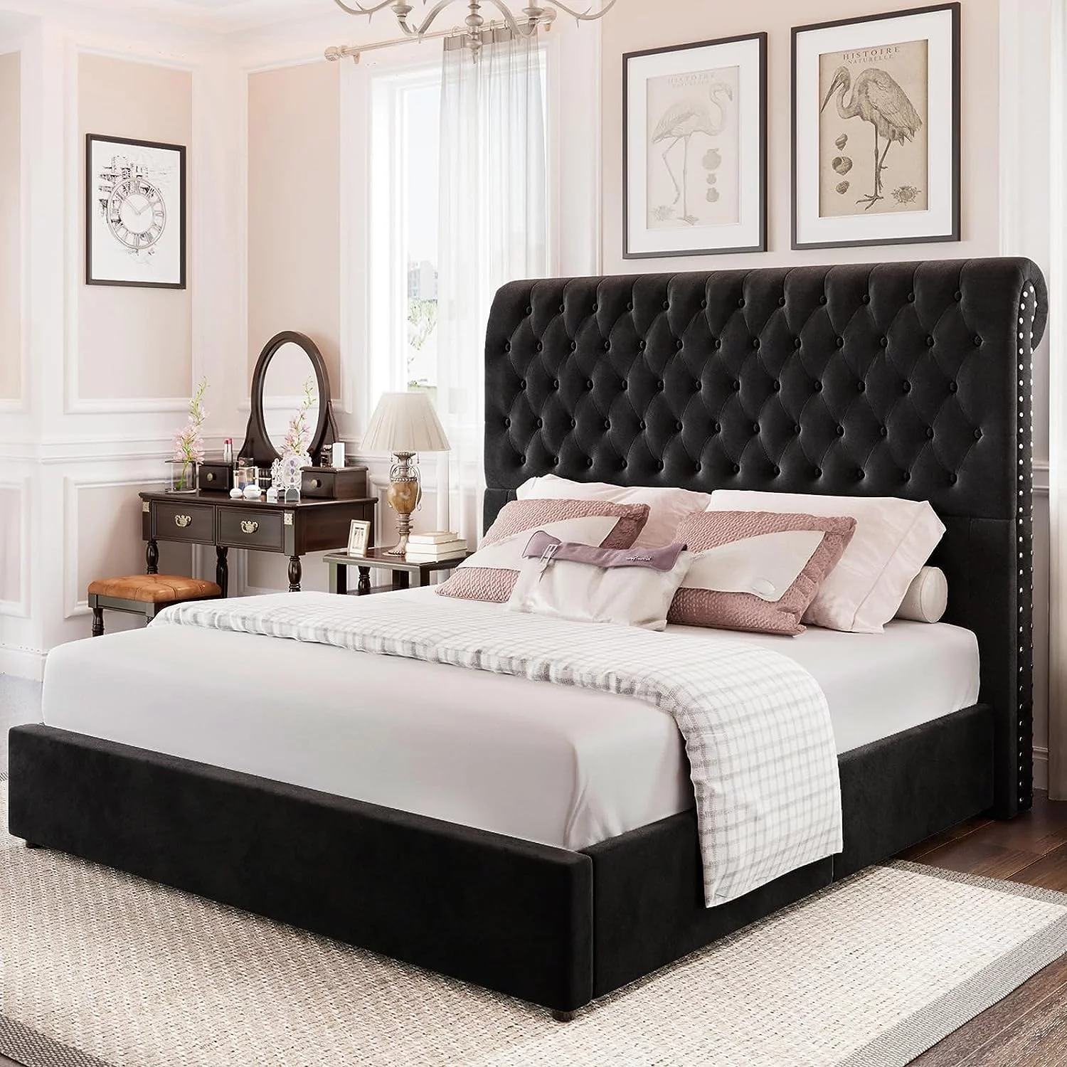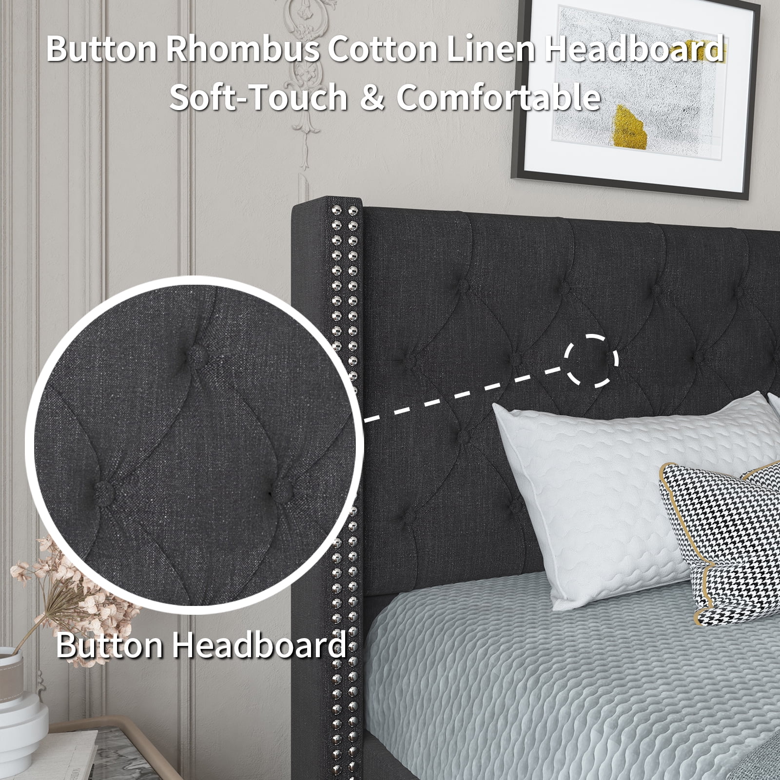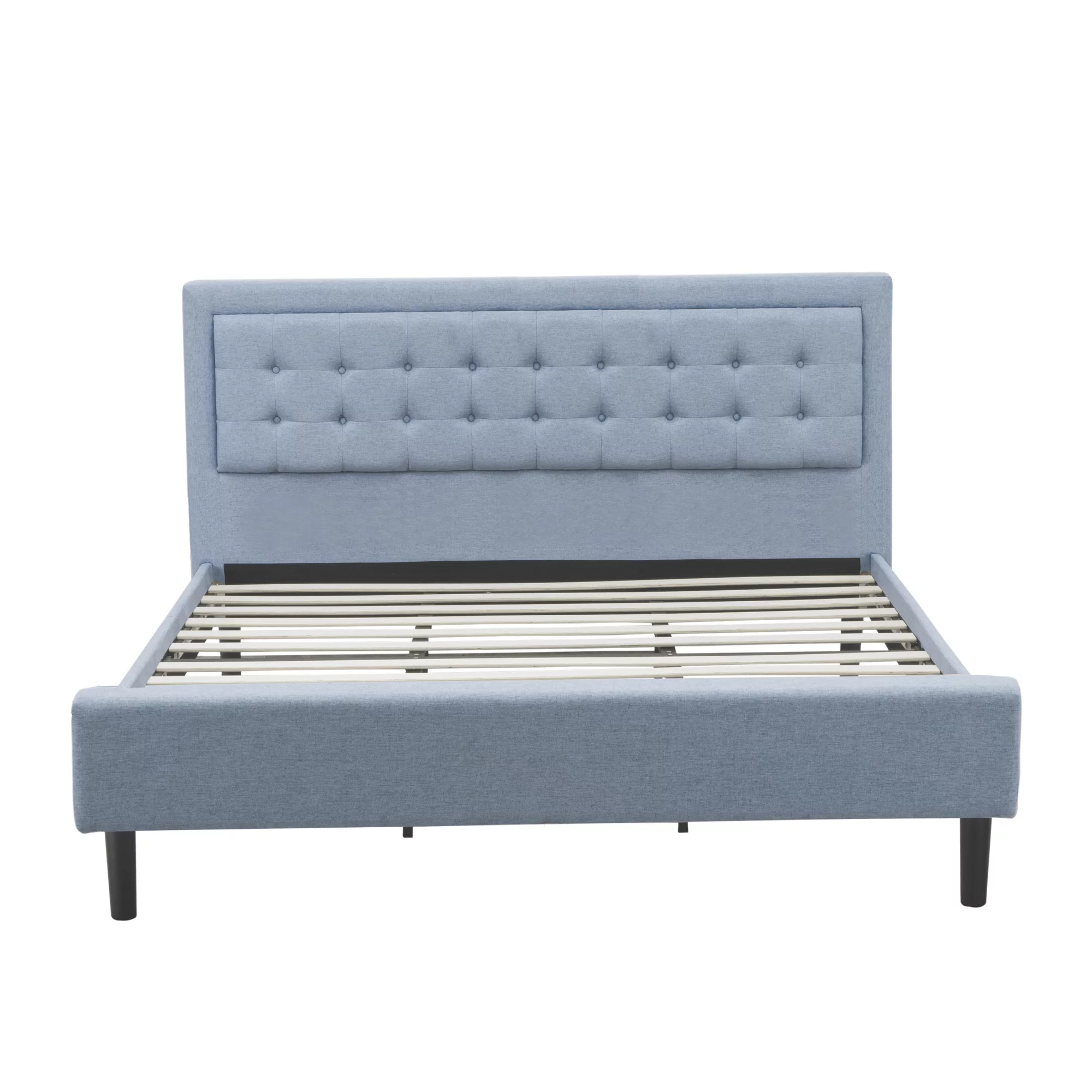 Sha Cerlin Blue King Size Platform Bed Frame with Tufted Headboard & Wingback, Adult