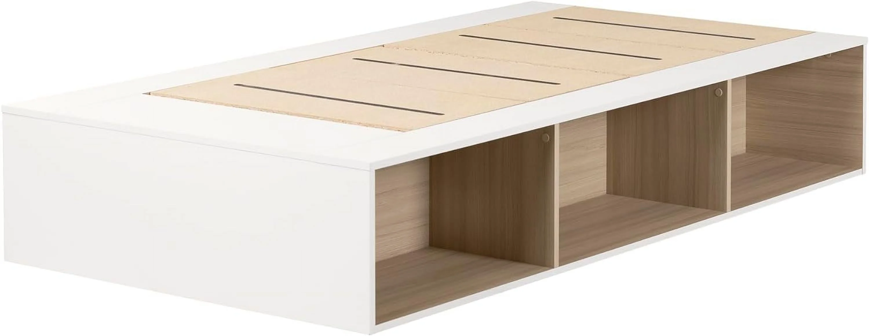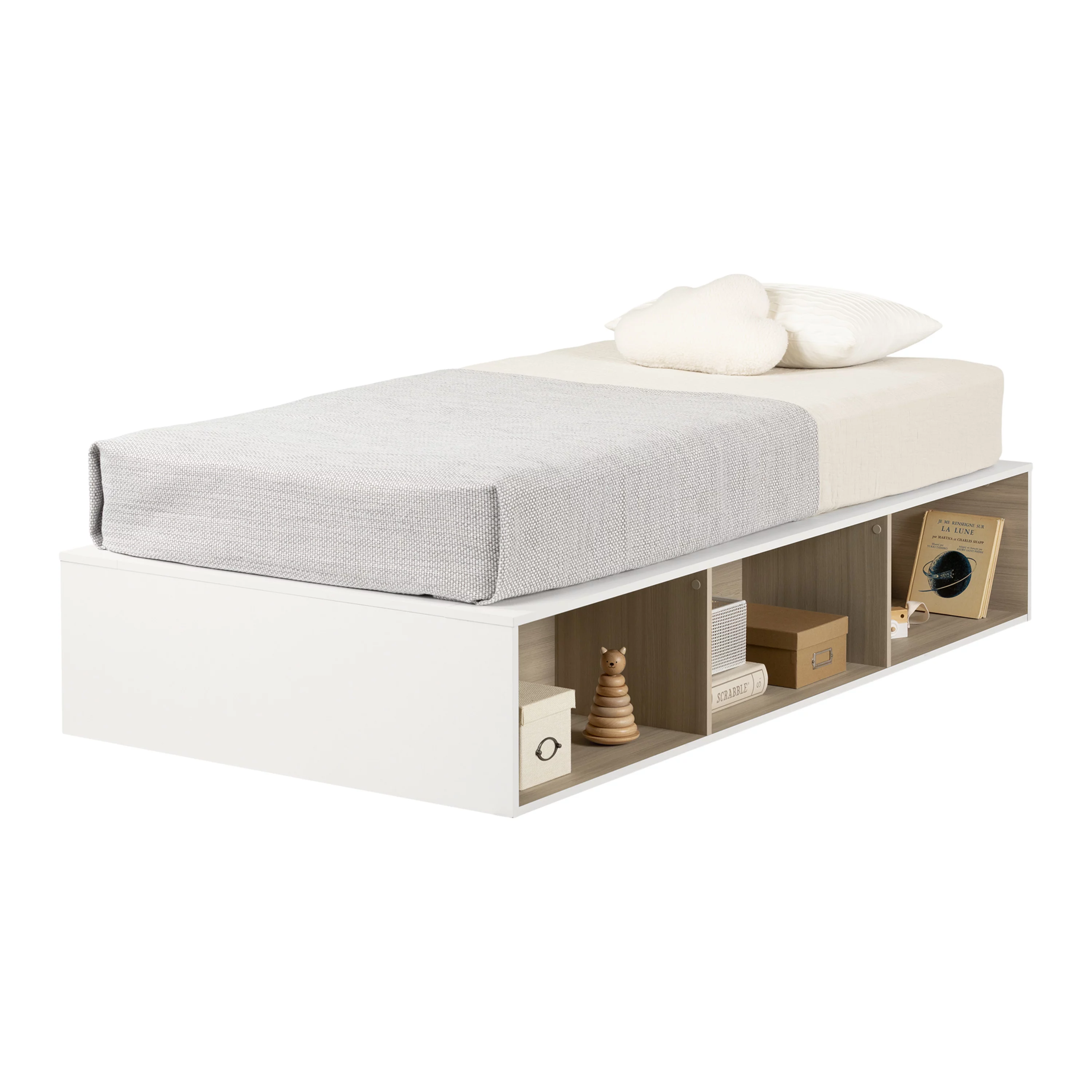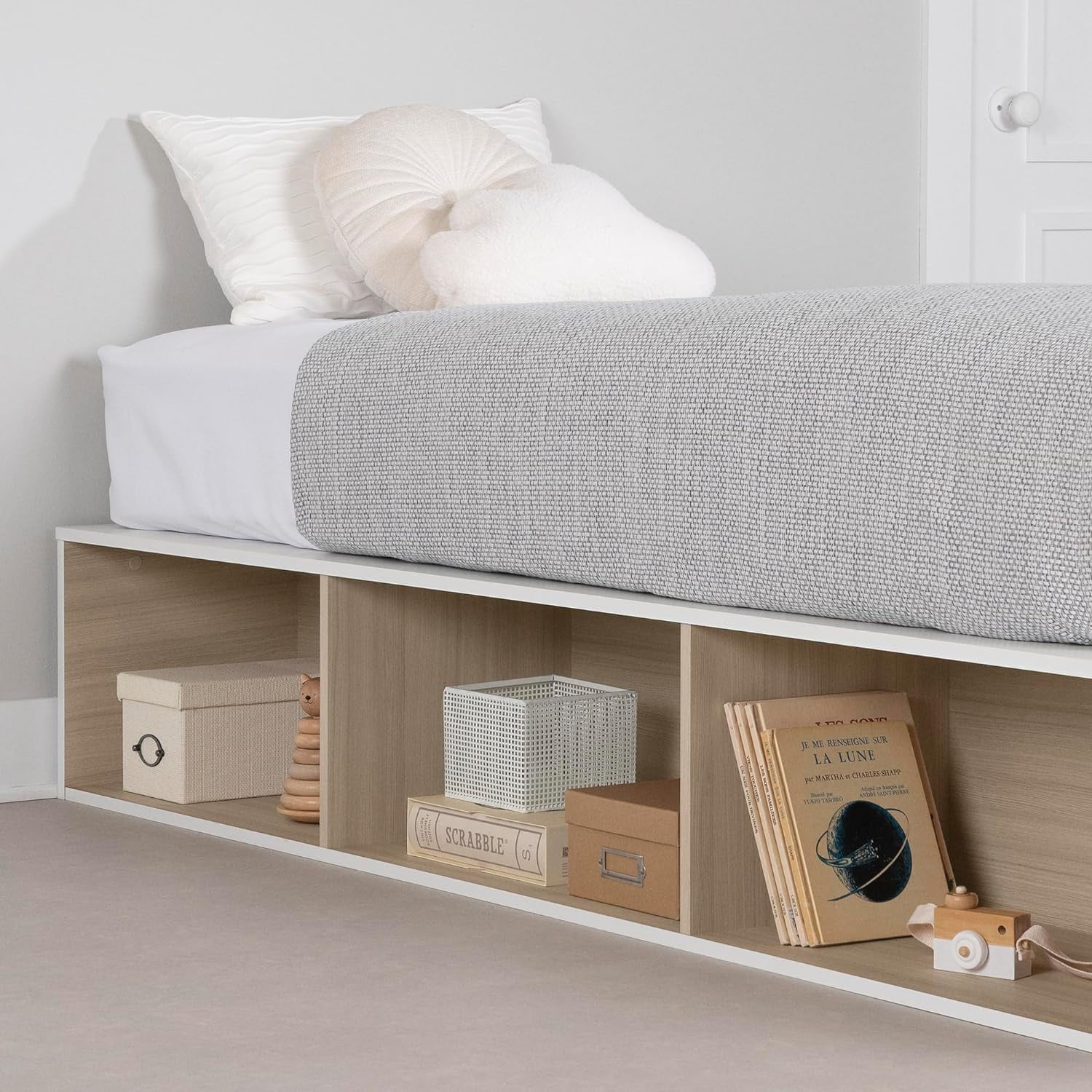 South Shore Hourra, Contemporary Twin Platform Bed with Open Storage, Soft Elm and White