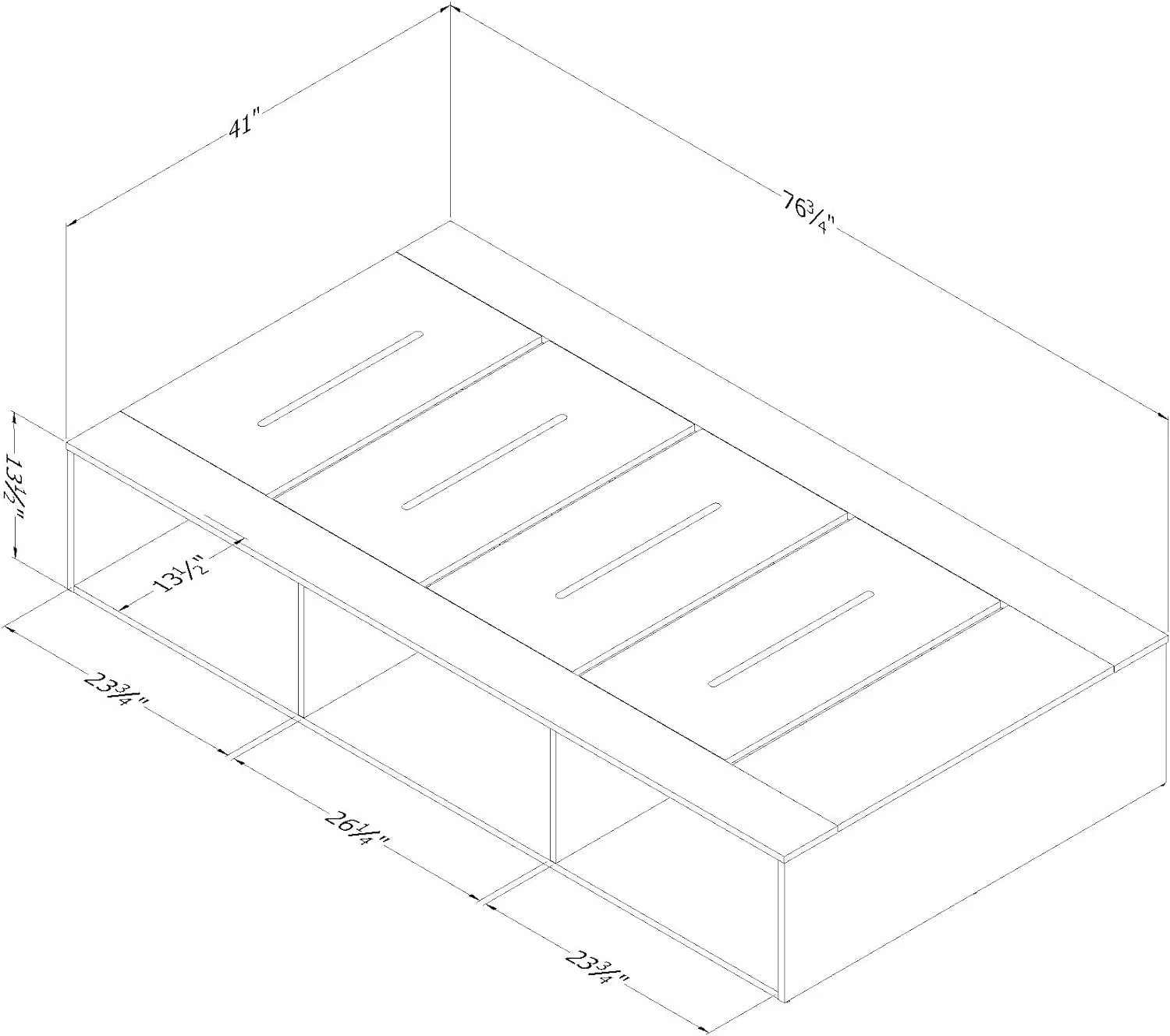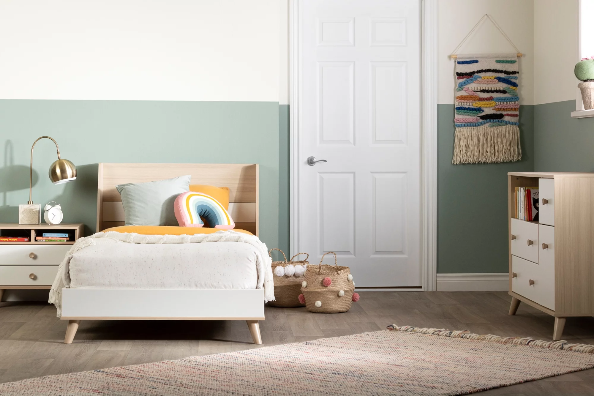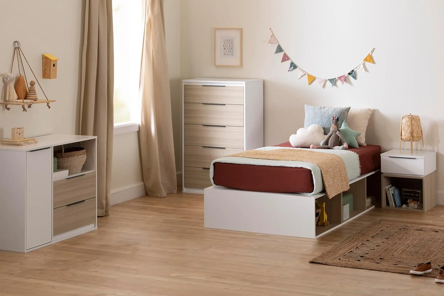 South Shore Hourra, Contemporary Twin Platform Bed with Open Storage, Soft Elm and White
