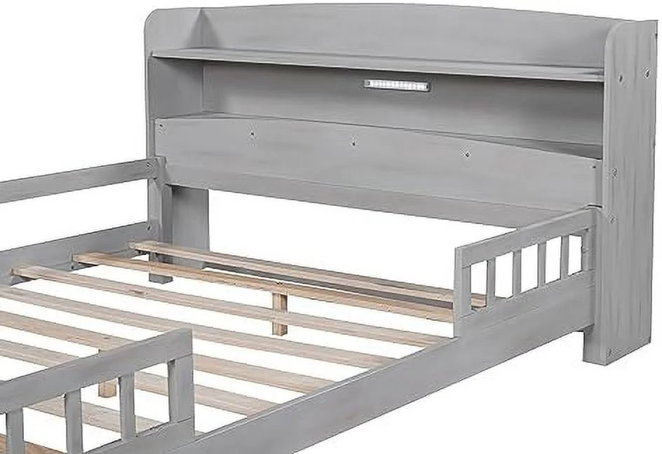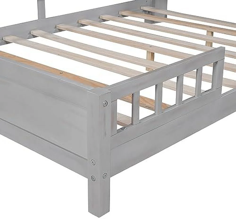 Royard Oaktree Full Size Daybed with Twin Trundle Bed Wood Sofa Bed with Slats Support, White