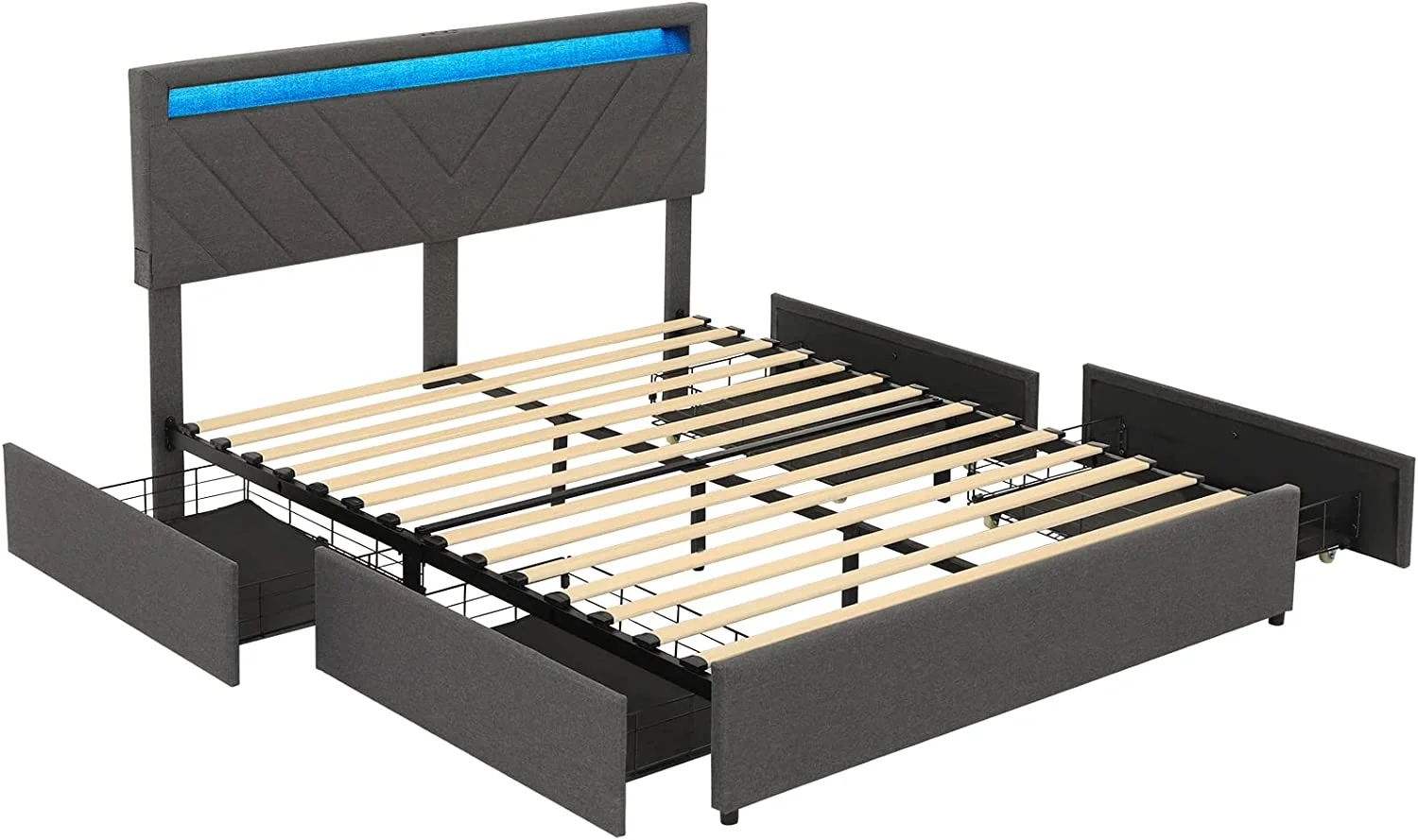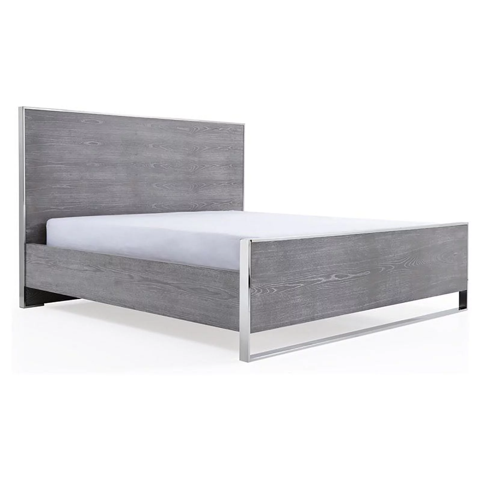 Modrest Charlene 80x84" Modern Stainless Steel Eastern King Bed in Elm Gray