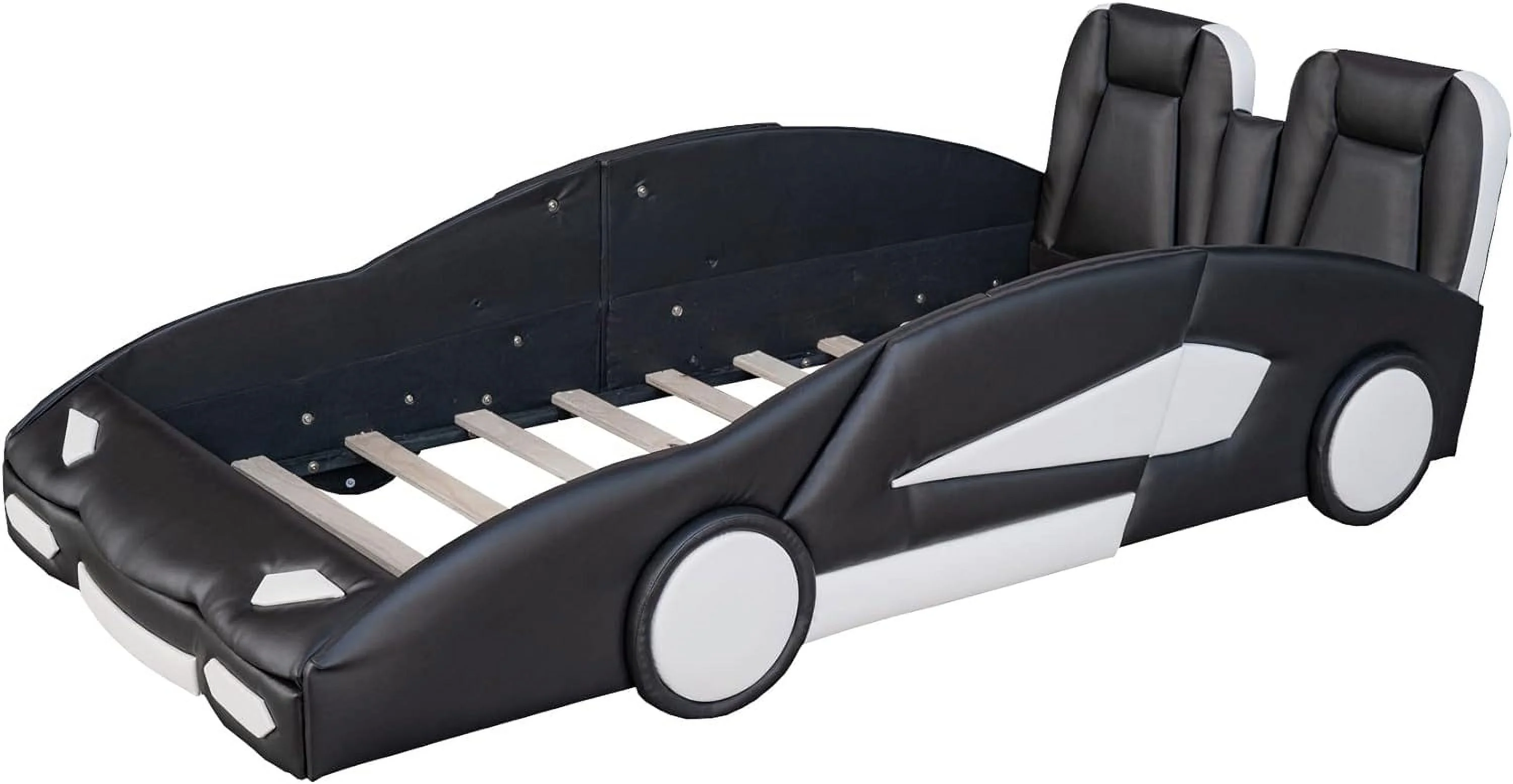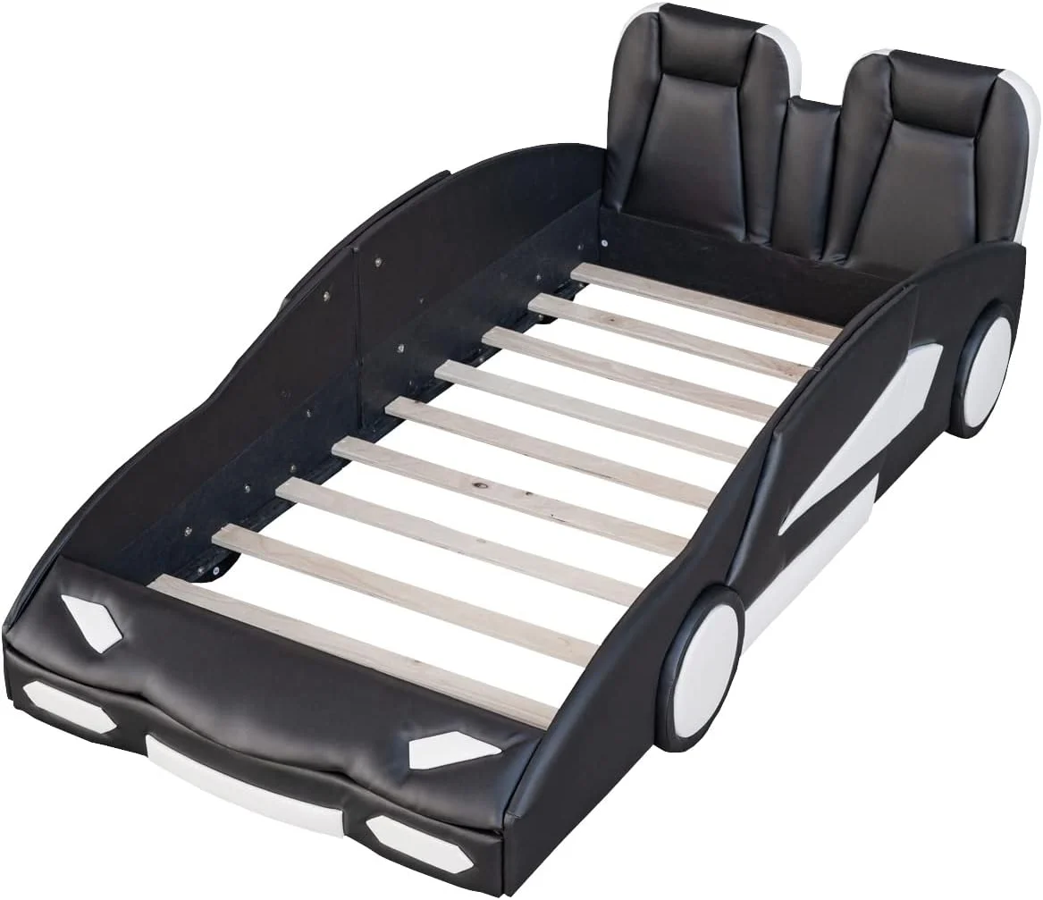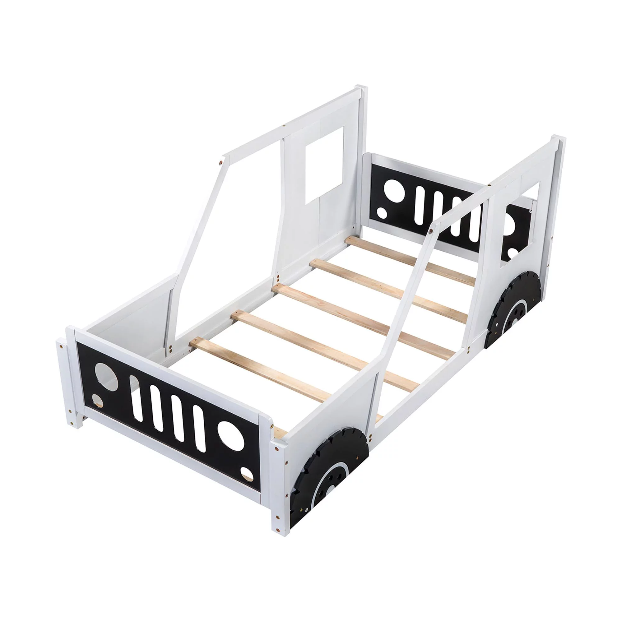 CoSoTower Twin Size Classic Car-Shaped Platform Bed with Wheels, White