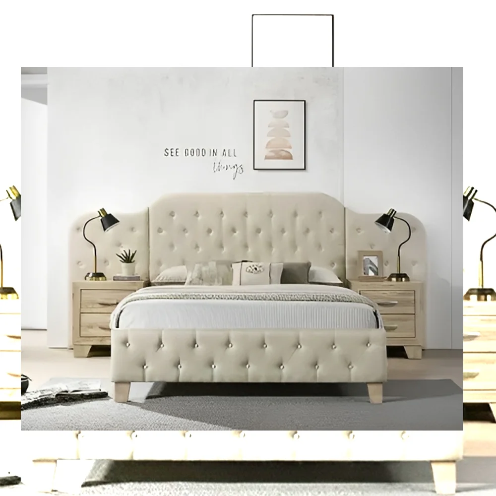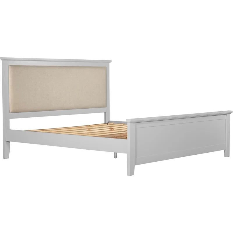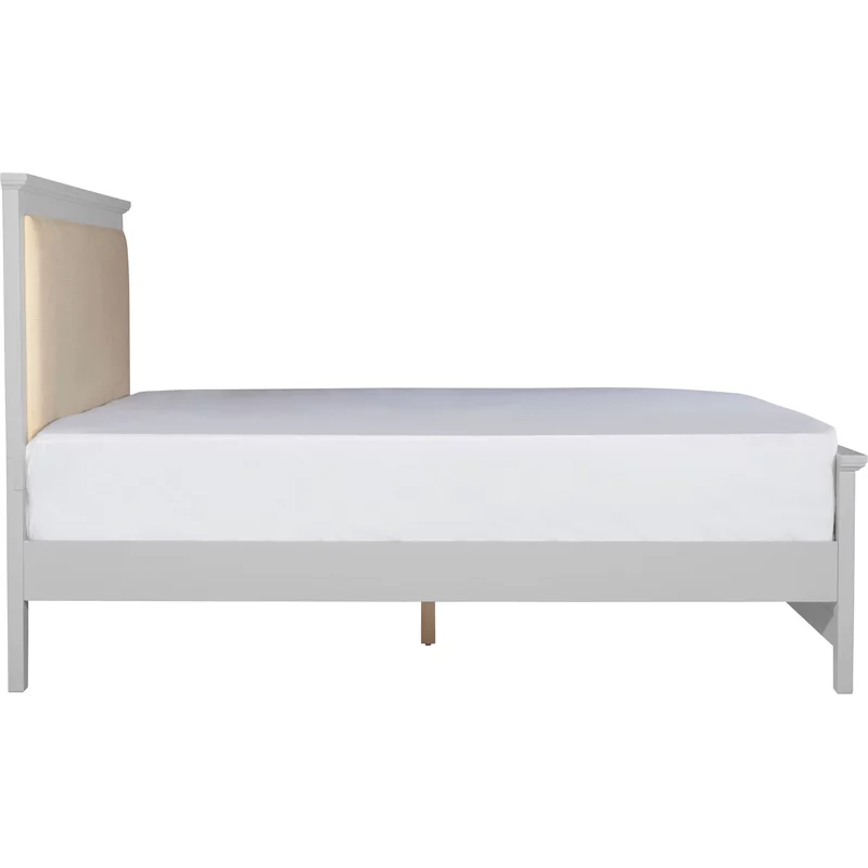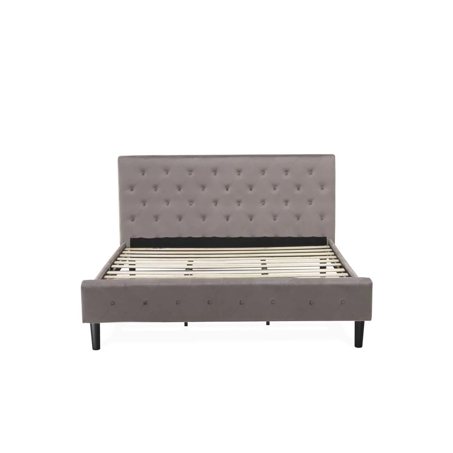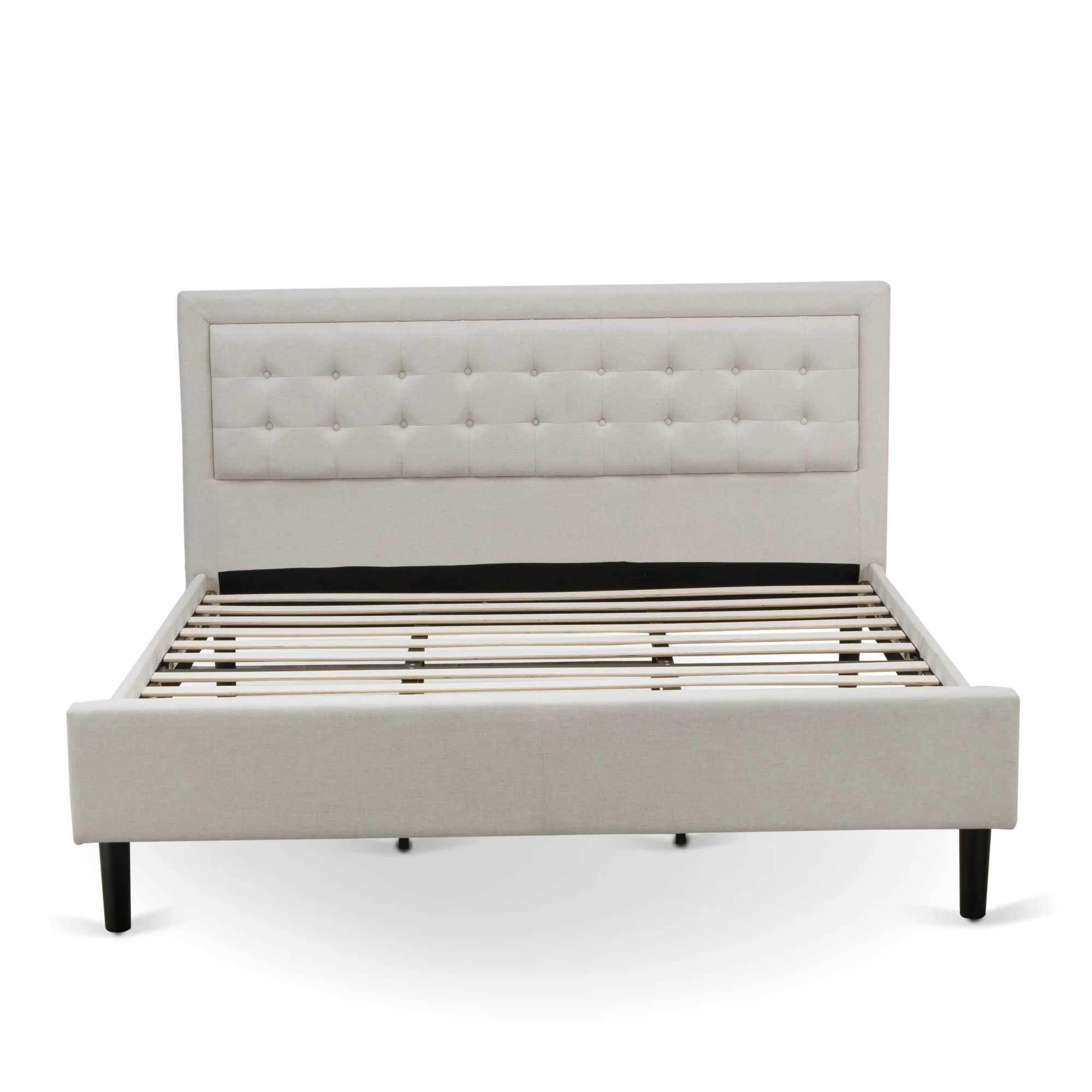 East West Furniture Fannin Wood and Linen Fabric King Size Bed in Mist Beige