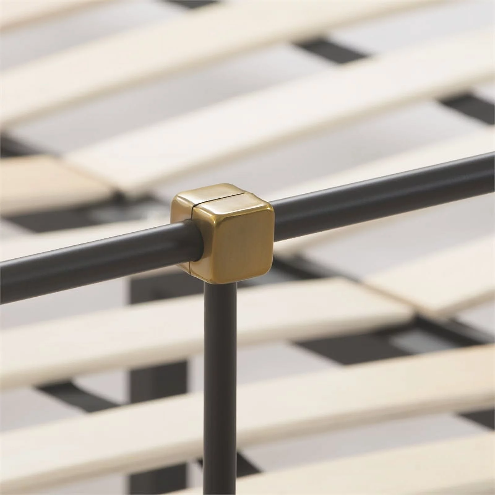 East West Furniture Nolan Engineered Wood King Bed in Black/Taupe Brown