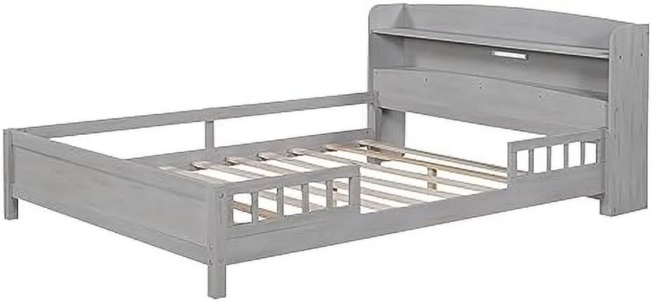 Kingfisher Lane Farmhouse Wood King Panel Bed in Weathered Brown Elm