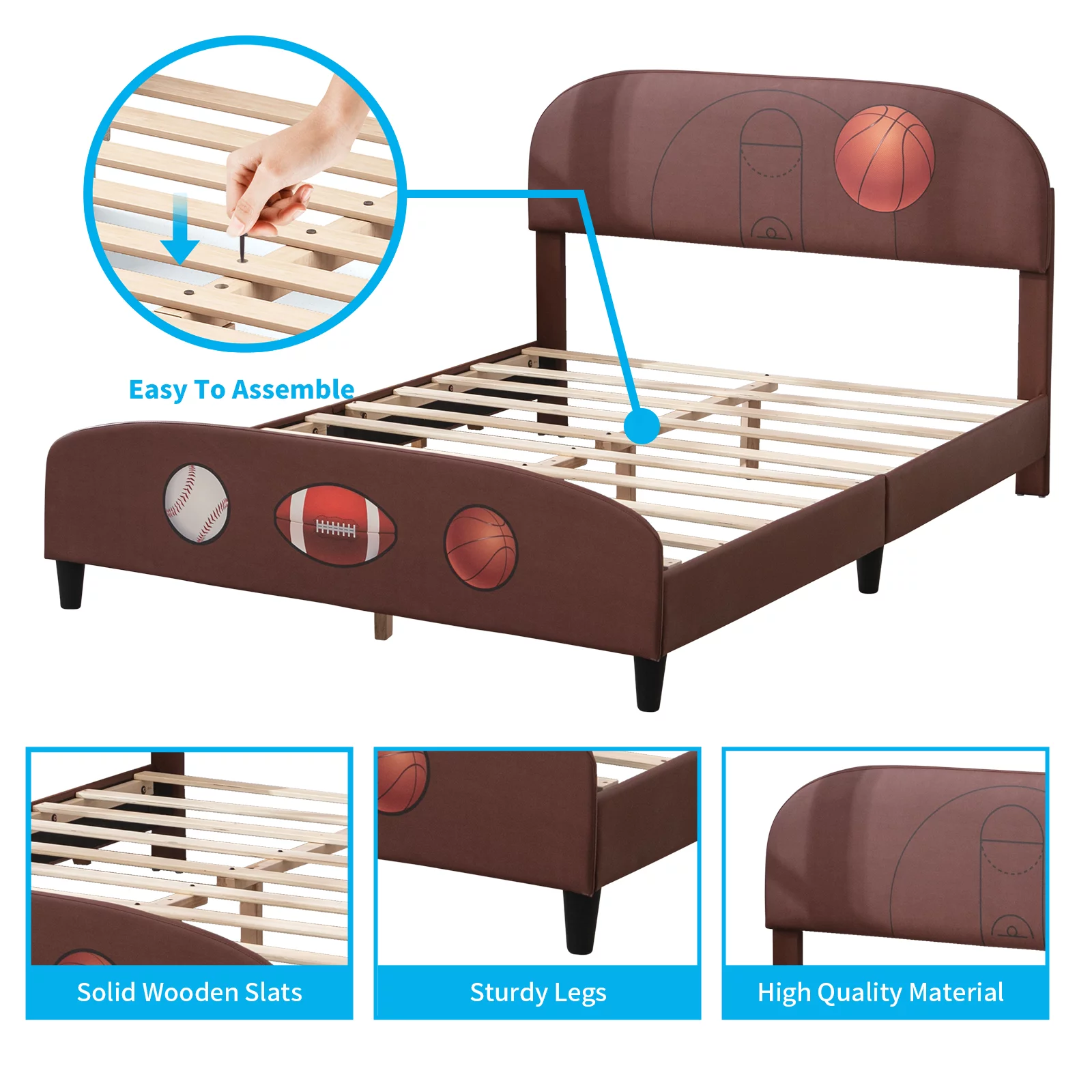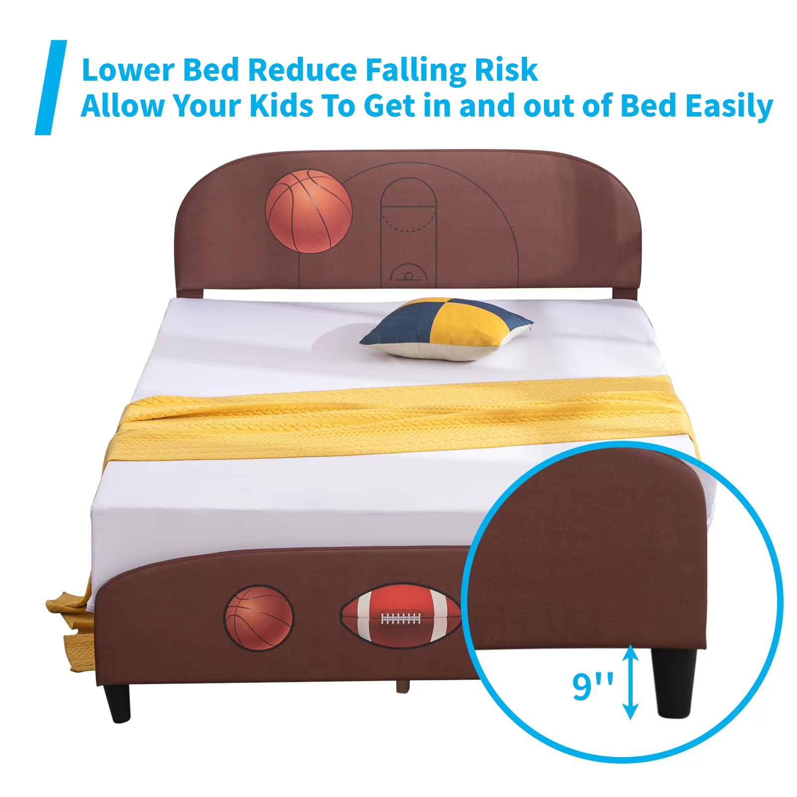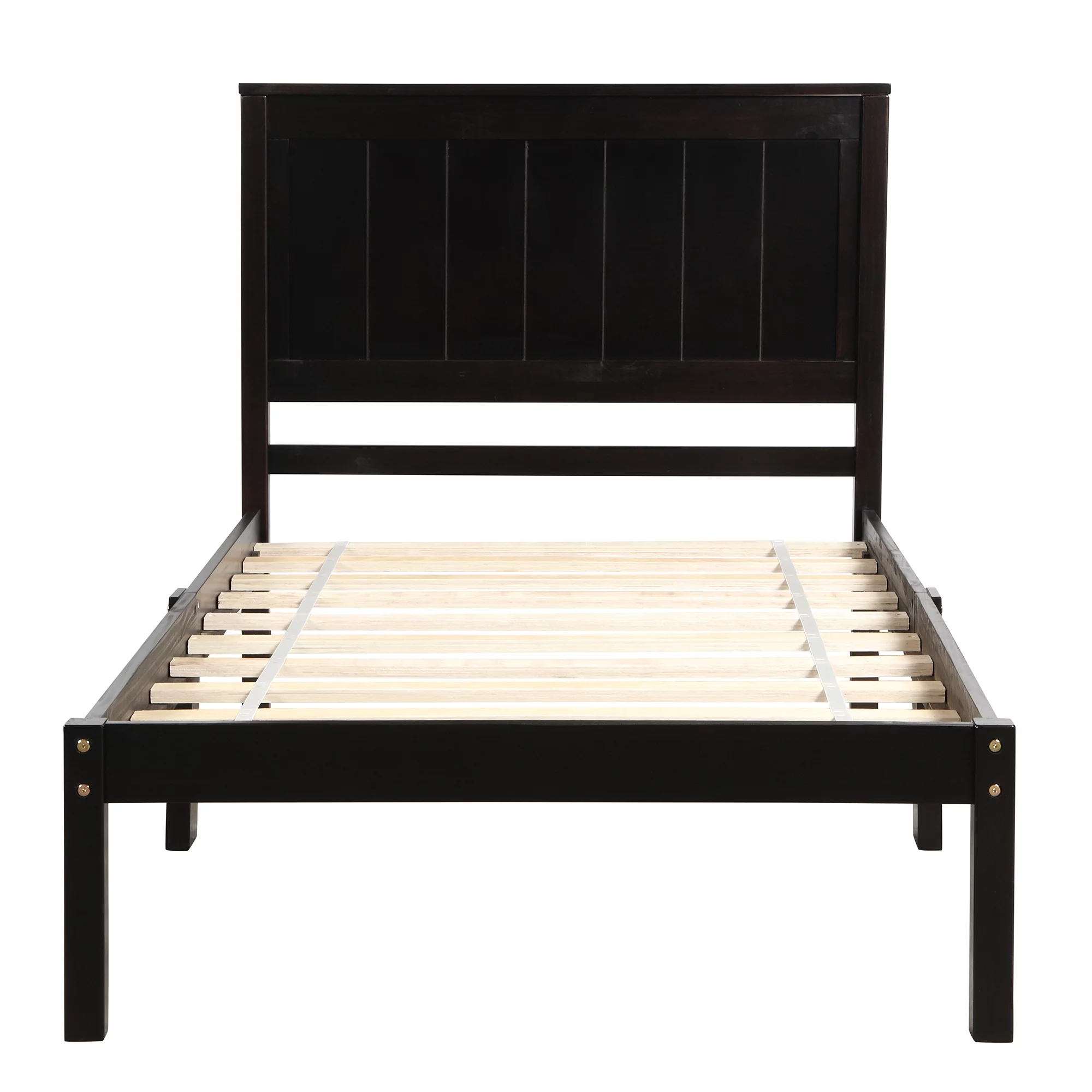 Euroco Wood Twin Size Platform Bed with Headboard and Footboard for Kids, Espresso