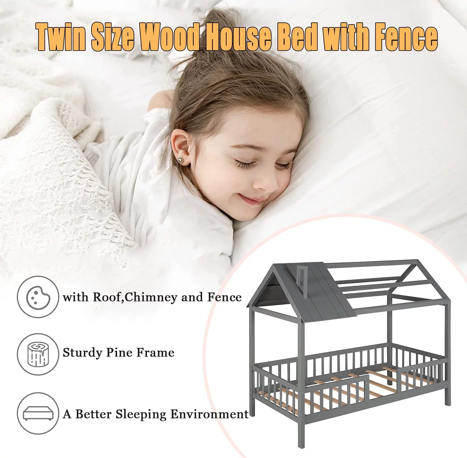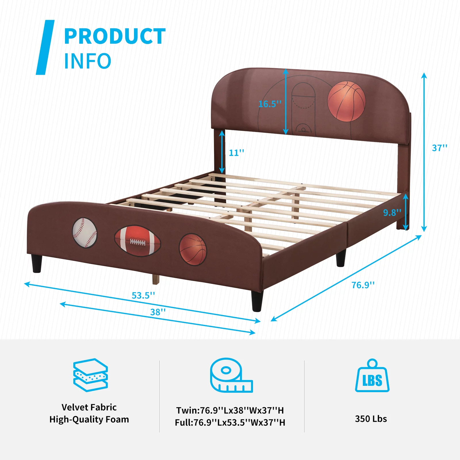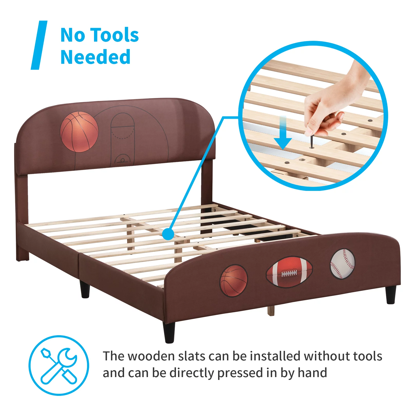 Euroco Wood Twin Size Platform Bed with Headboard and Footboard for Kids, Espresso