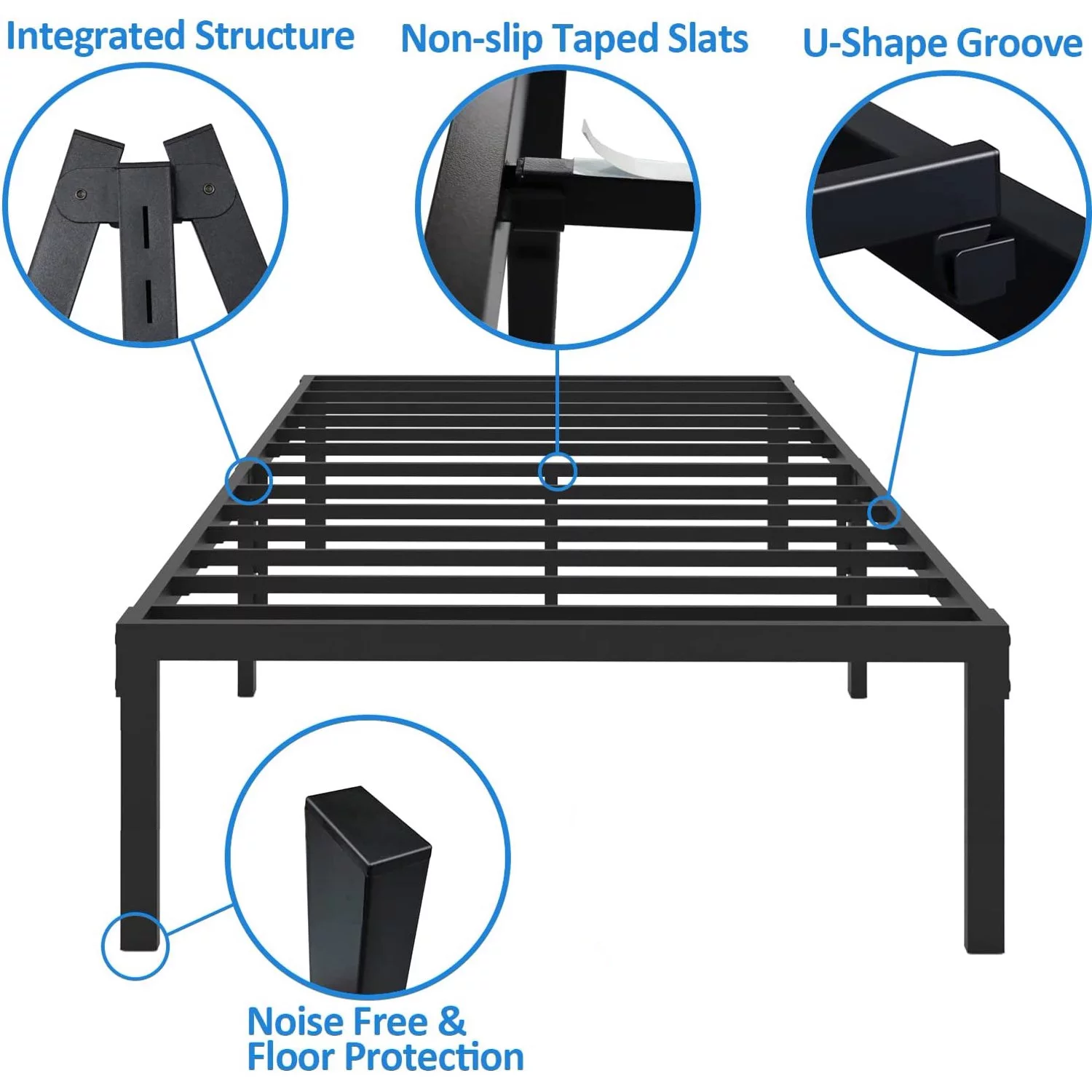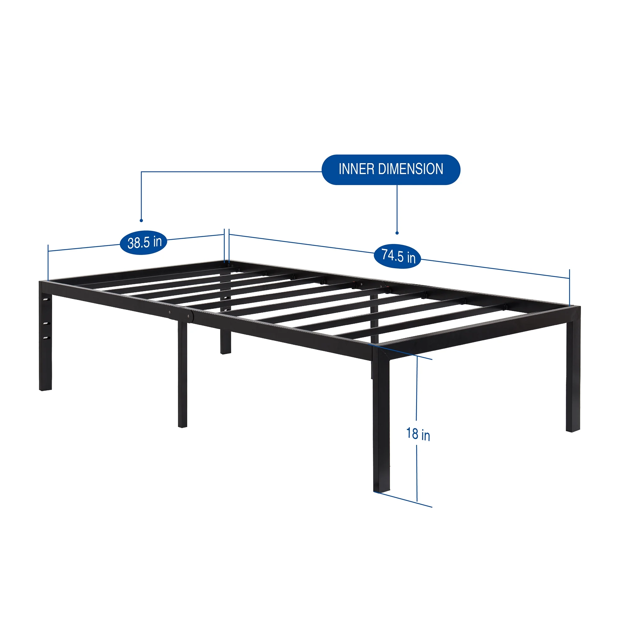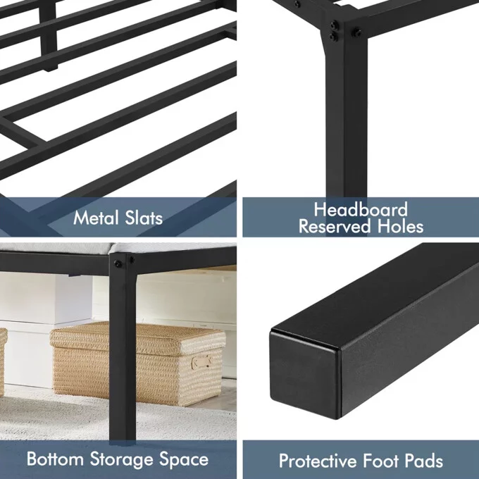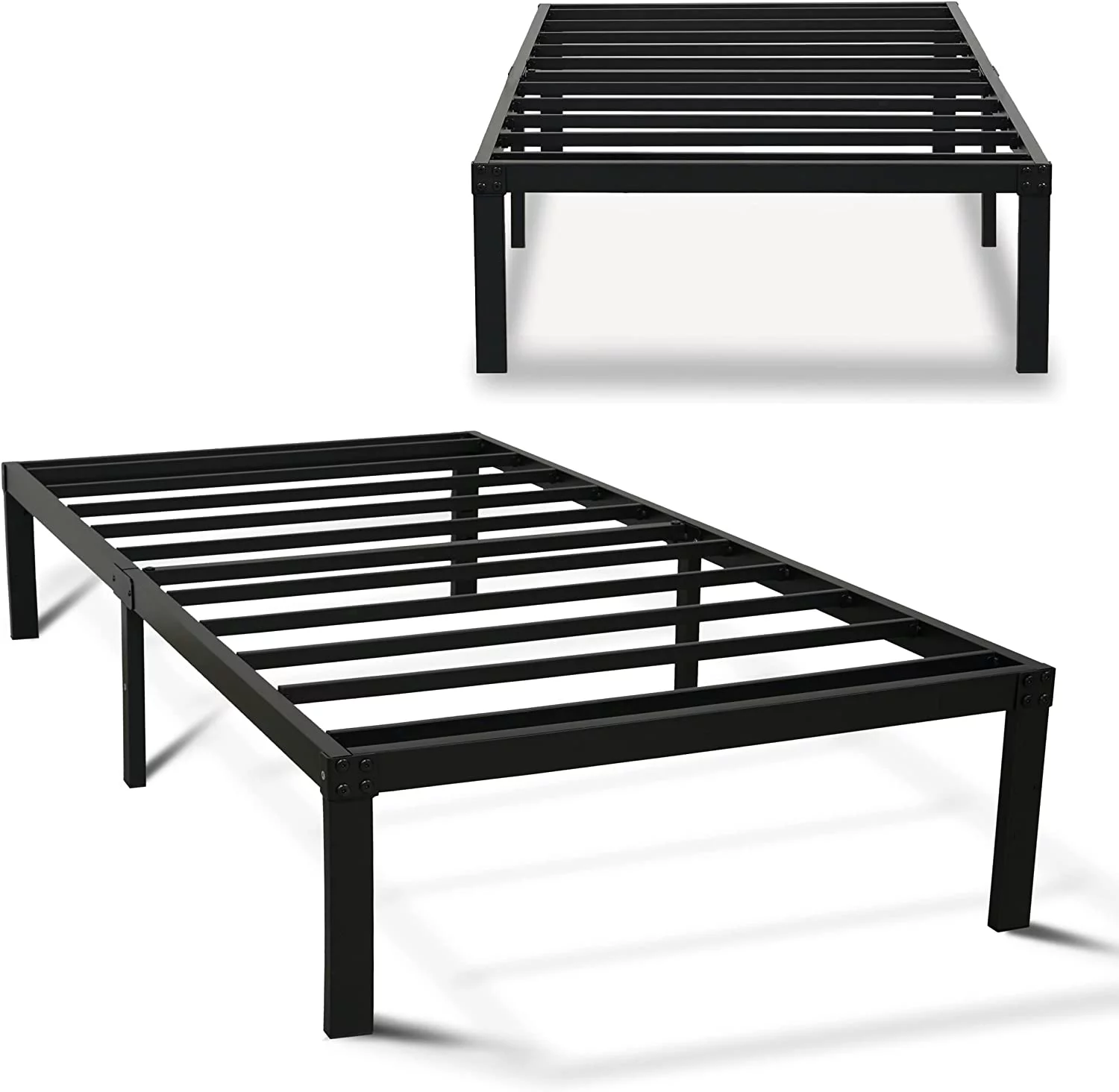 GrandRest 18" Adult Dura Metal Bed Frame, Non-Slip, Easy Assembly, Noise Free, Maximum Storage, Black, Twin Size