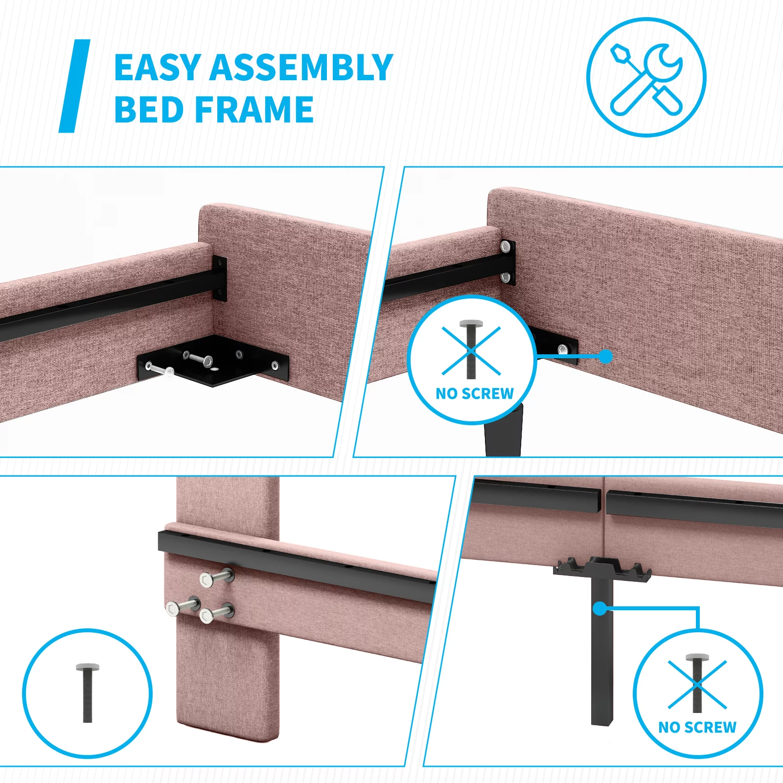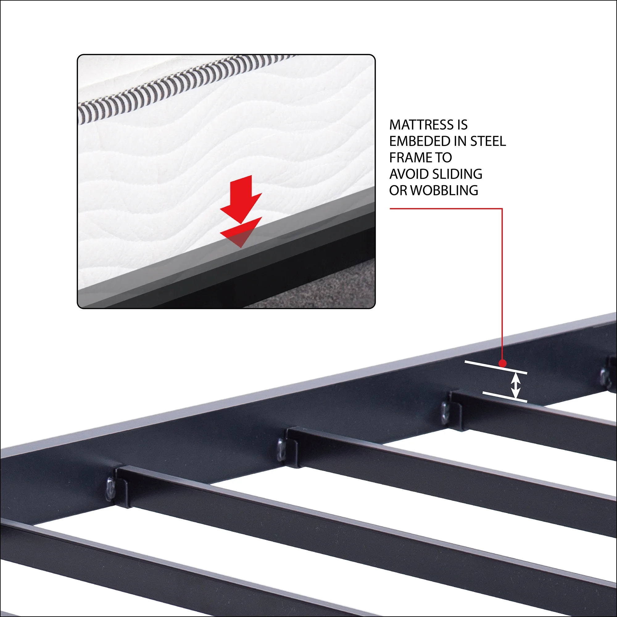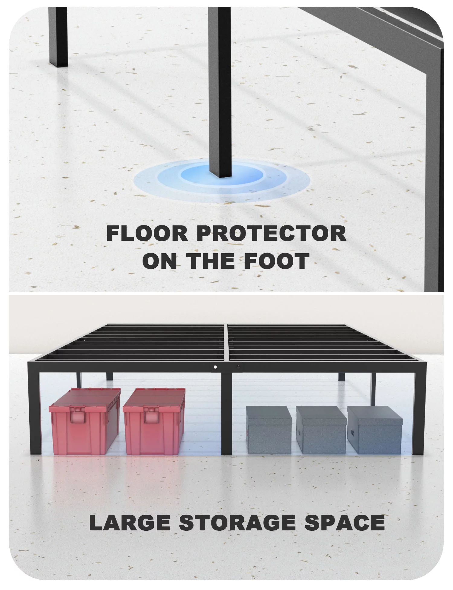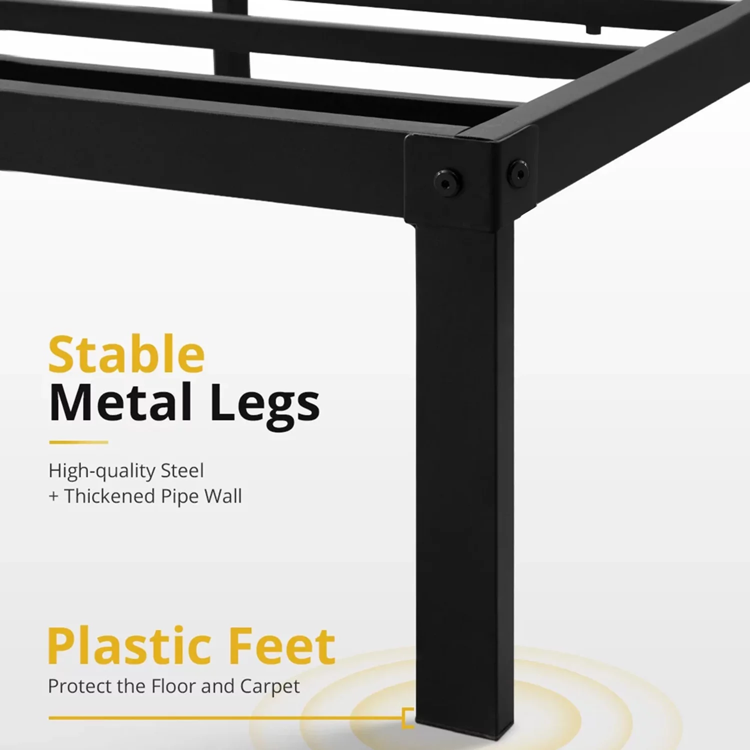 GrandRest 18" Adult Dura Metal Bed Frame, Non-Slip, Easy Assembly, Noise Free, Maximum Storage, Black, Twin Size