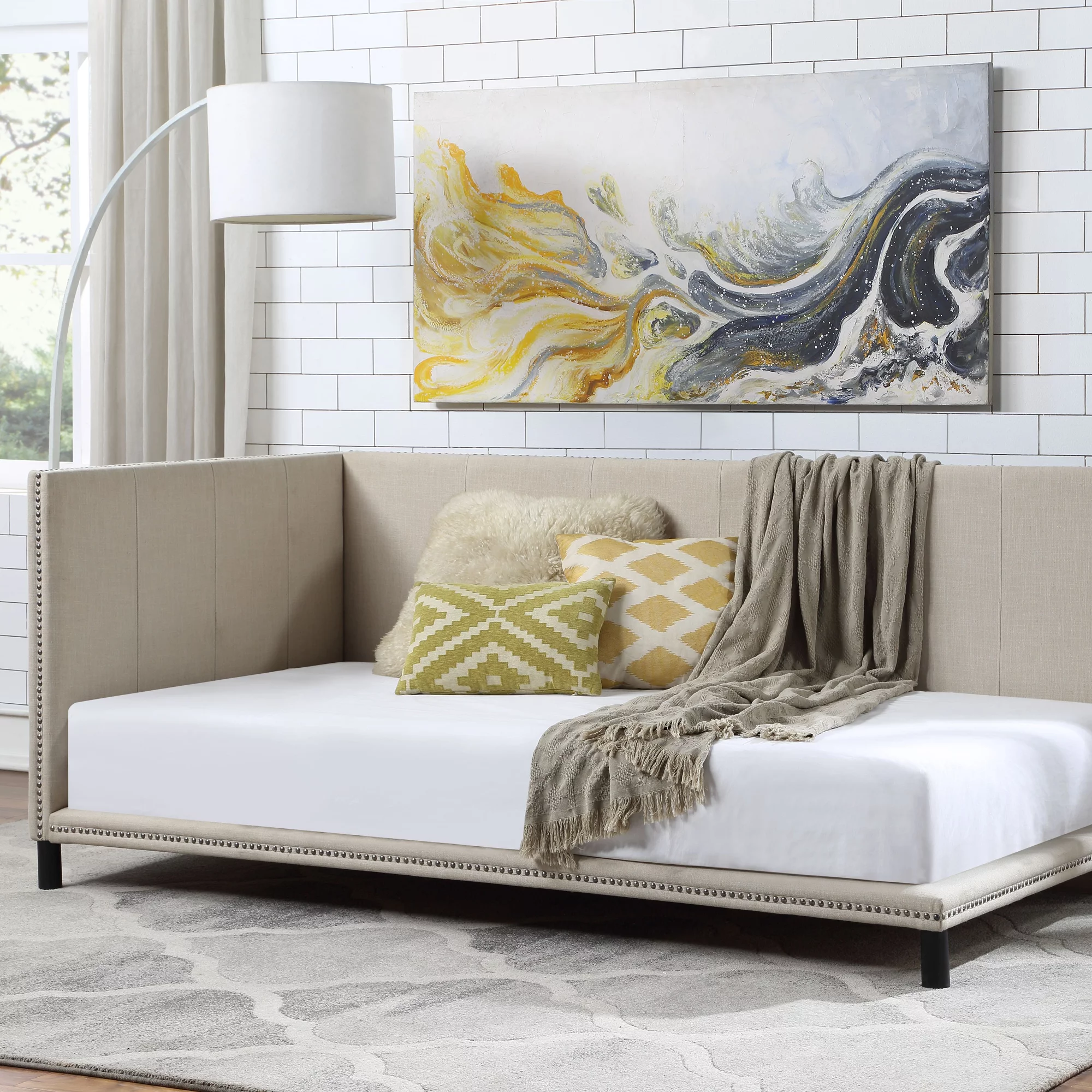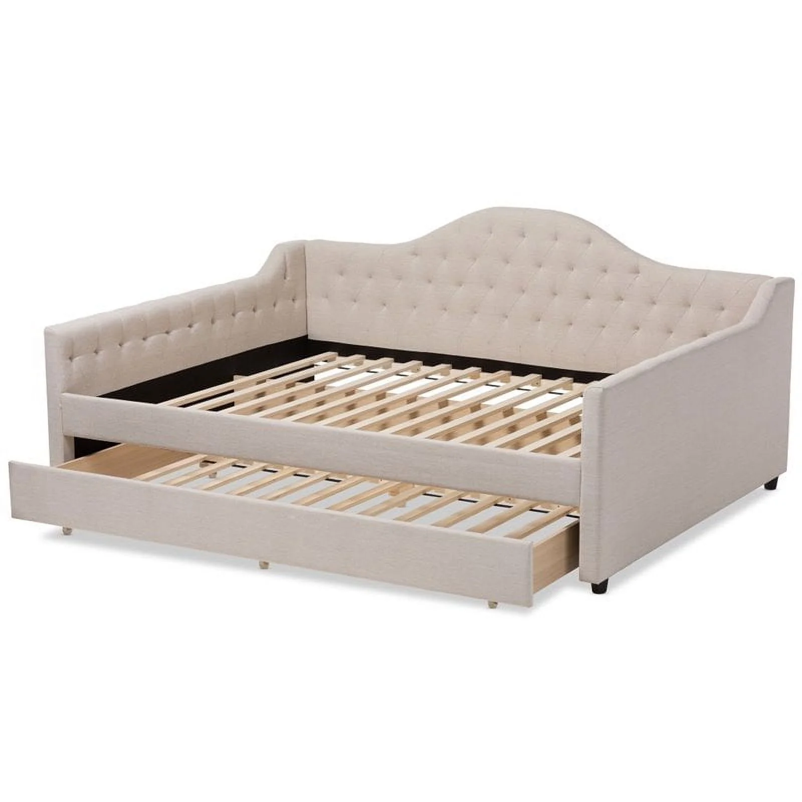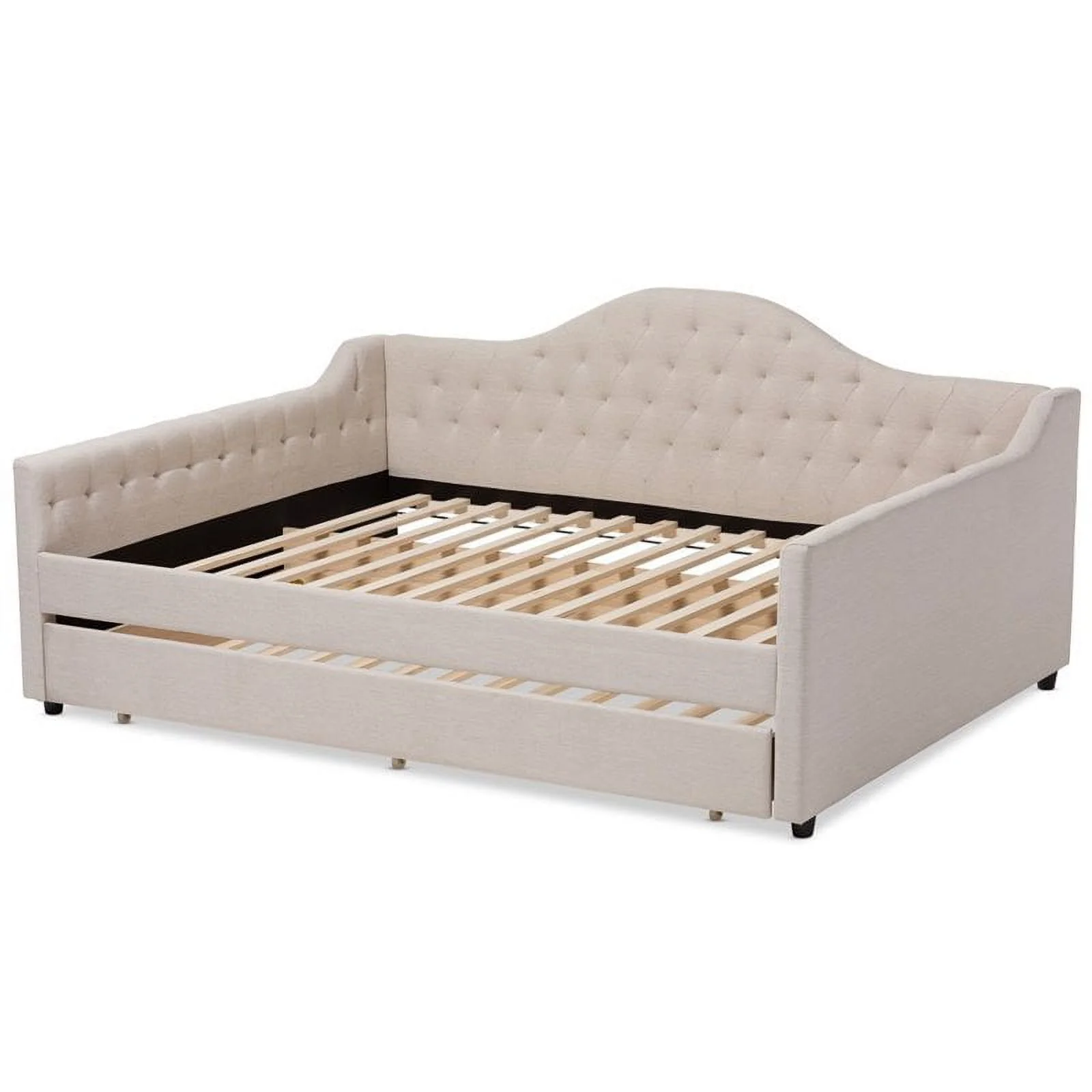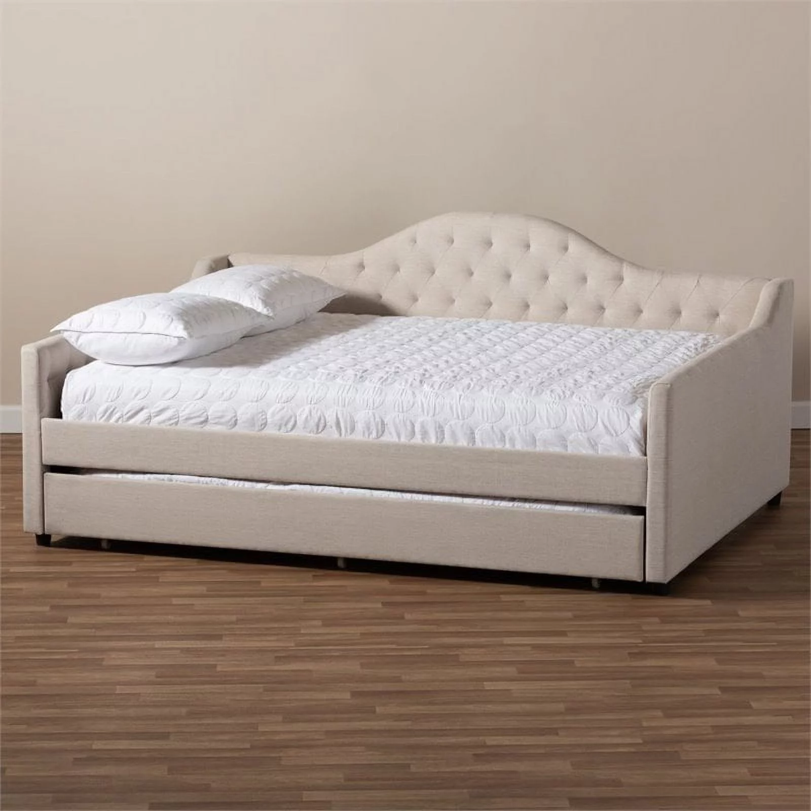 Allora Fabric Tufted Curved Headboard Full Daybed with Trundle in Light Beige