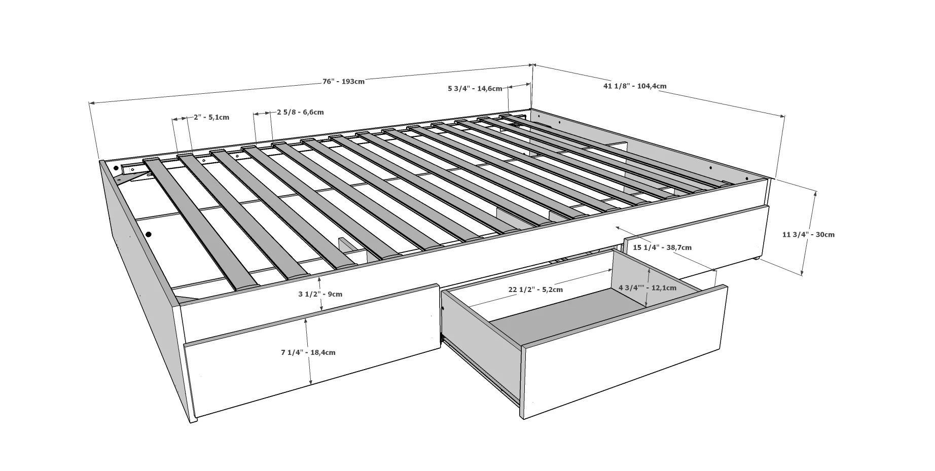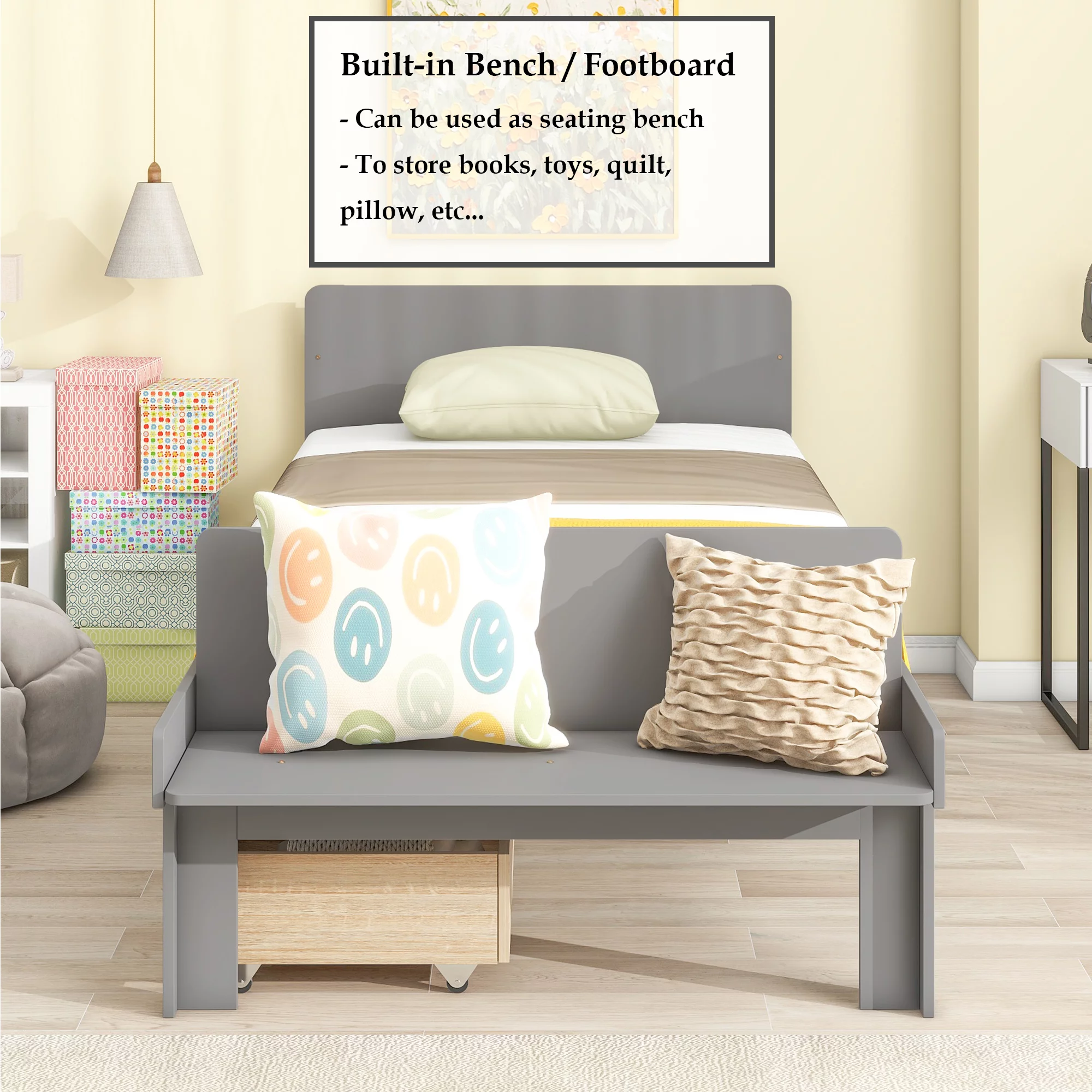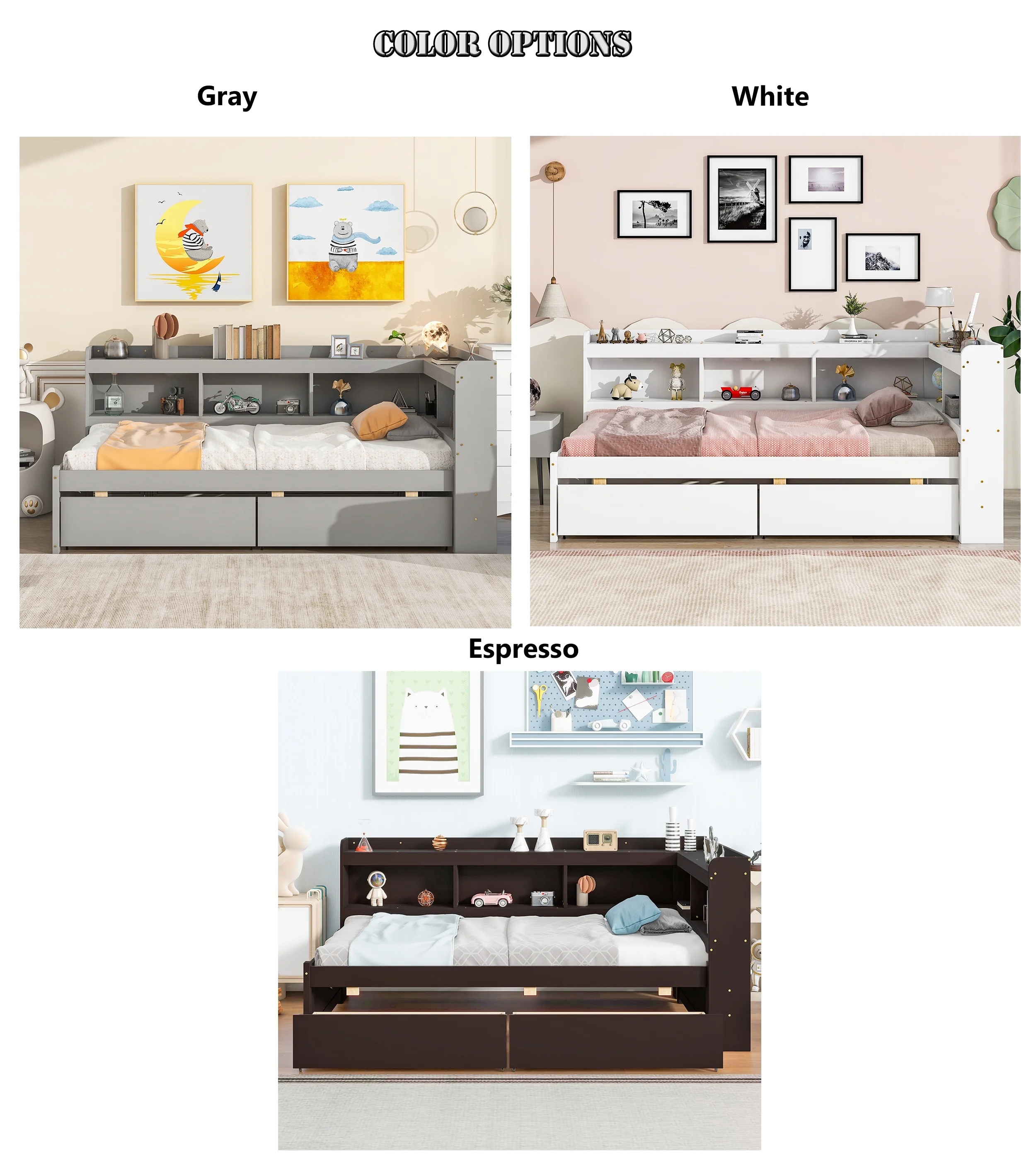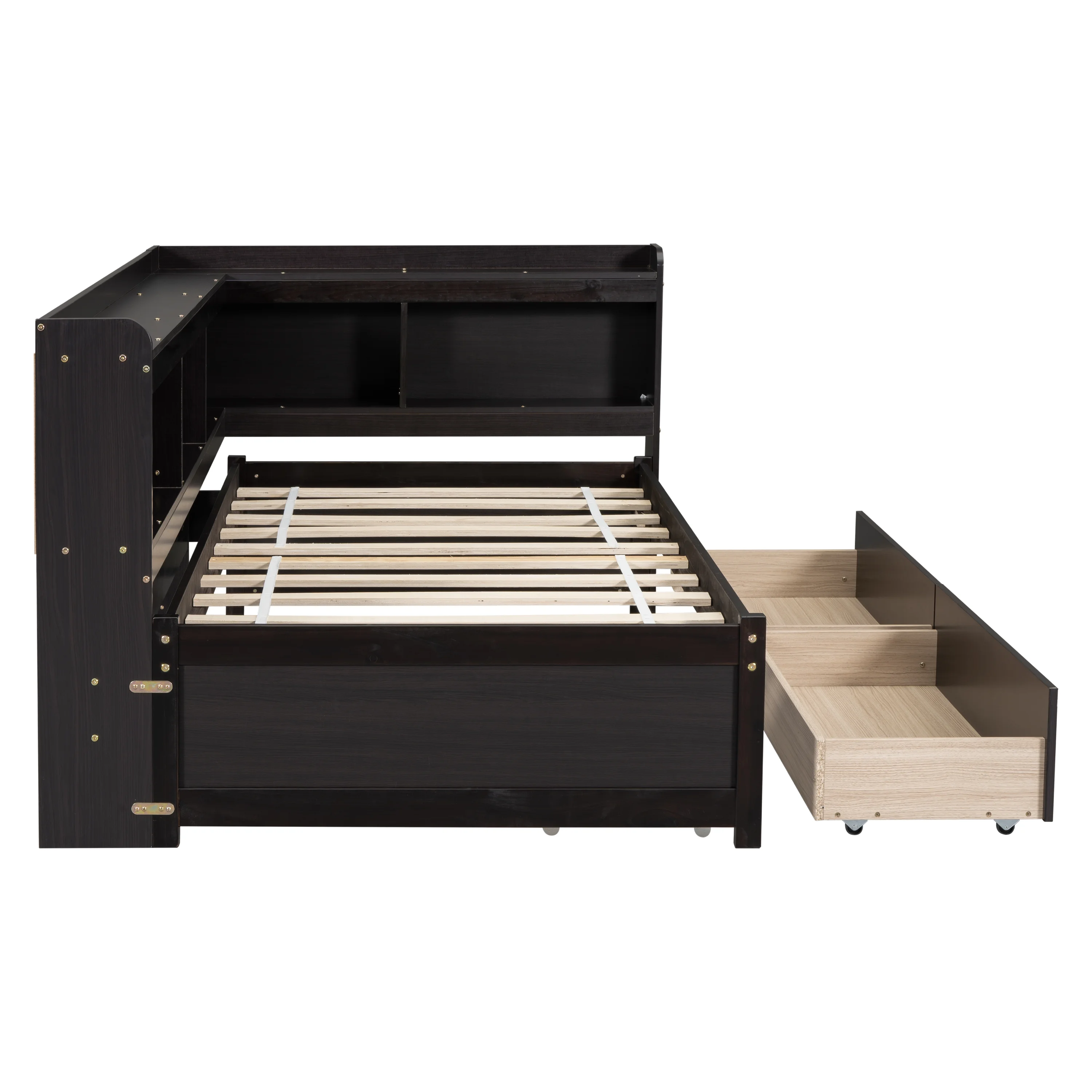 Euroco Wood Twin Platform Bed with Headboard & 2 Storage Drawers for Kids, Espresso