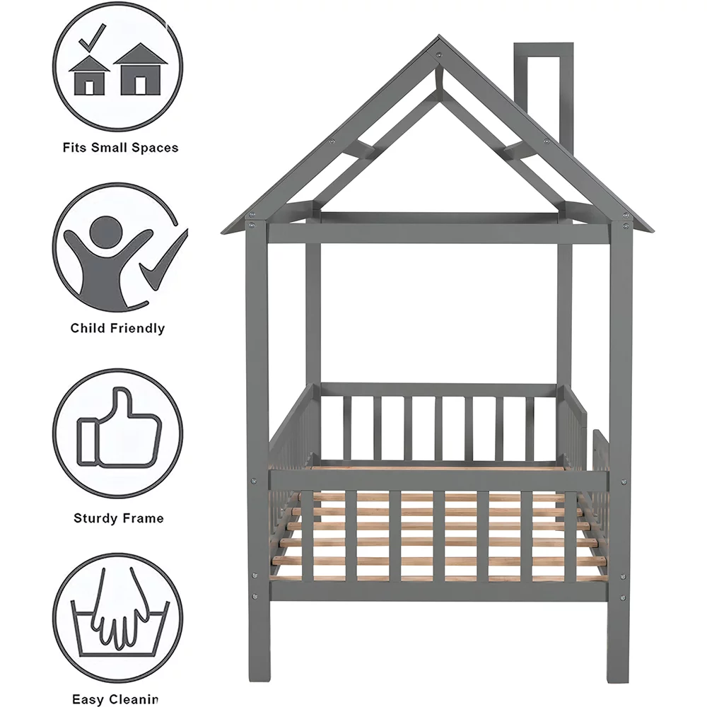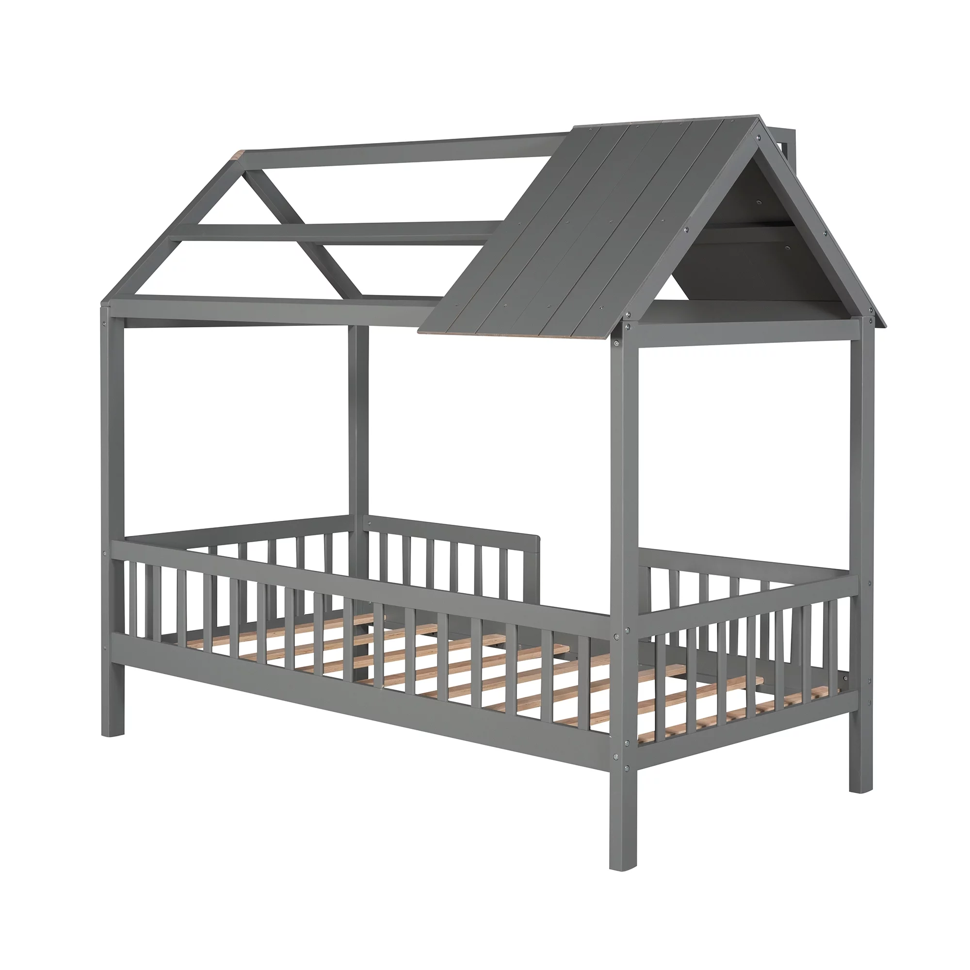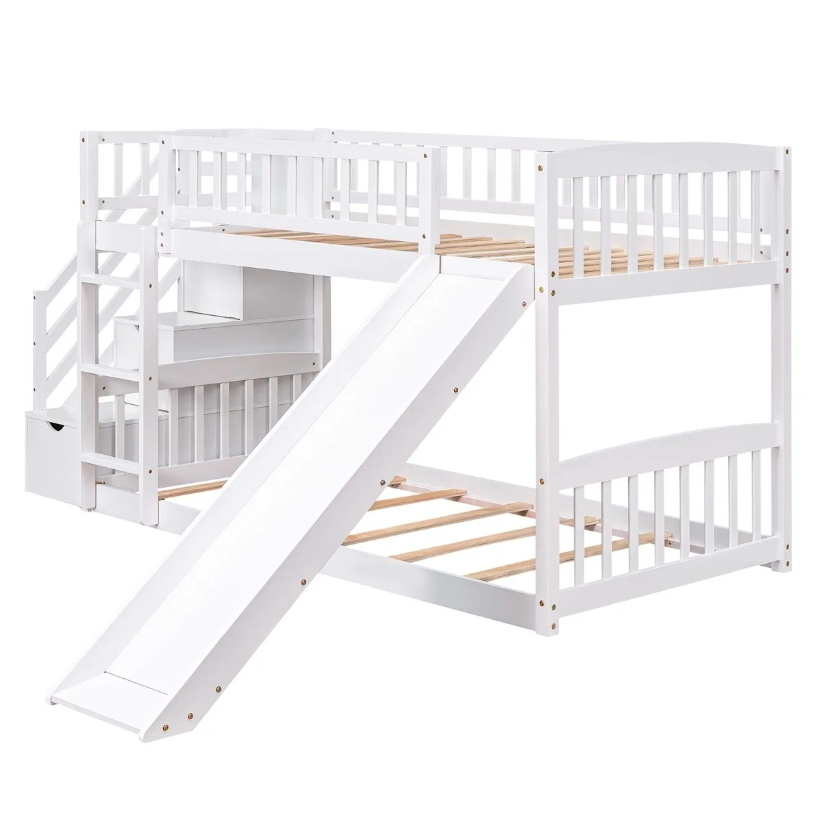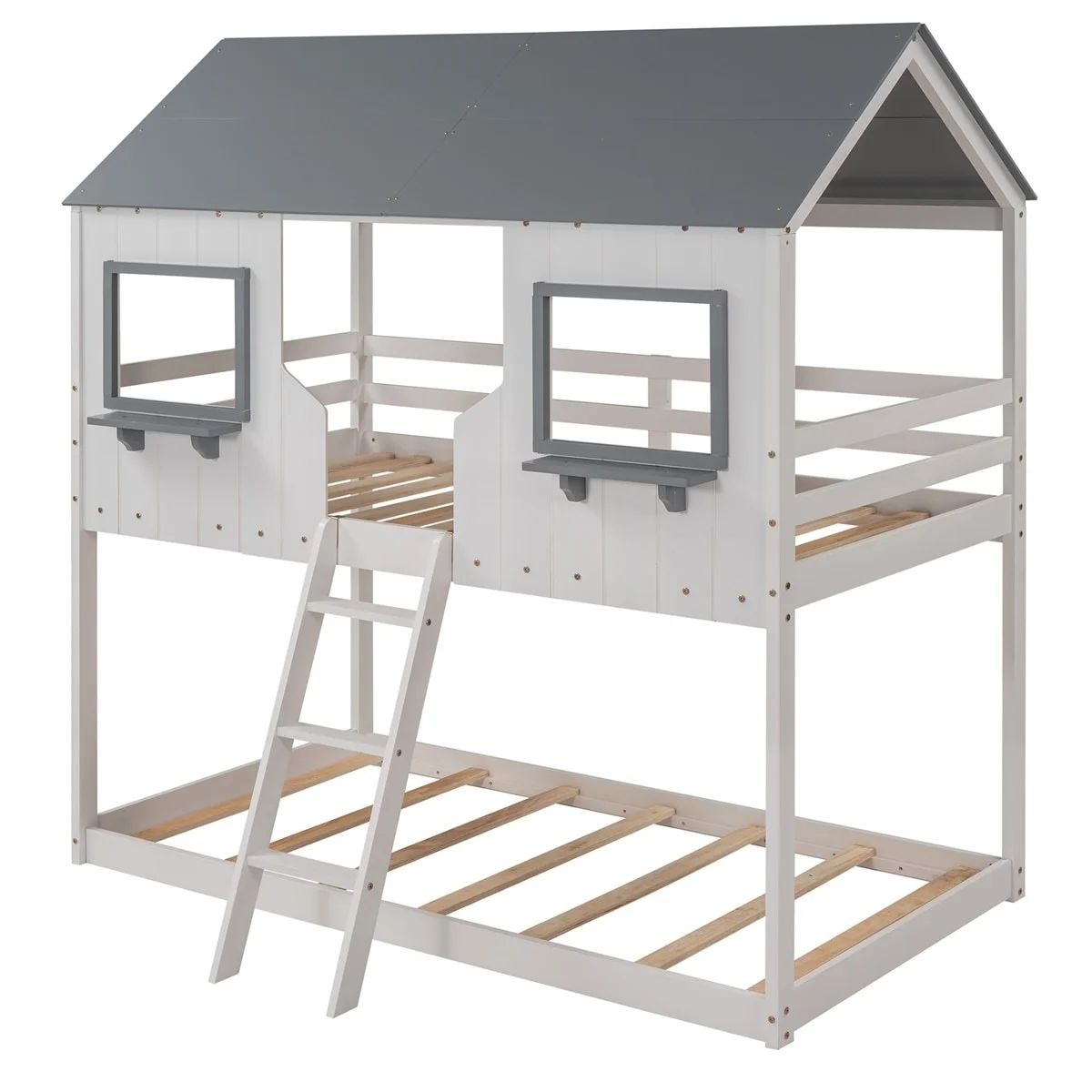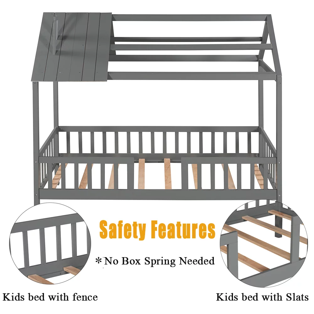 MERAX Full and Twin Size L-Shaped Bunk Bed with Slide and Short Ladder Grey
