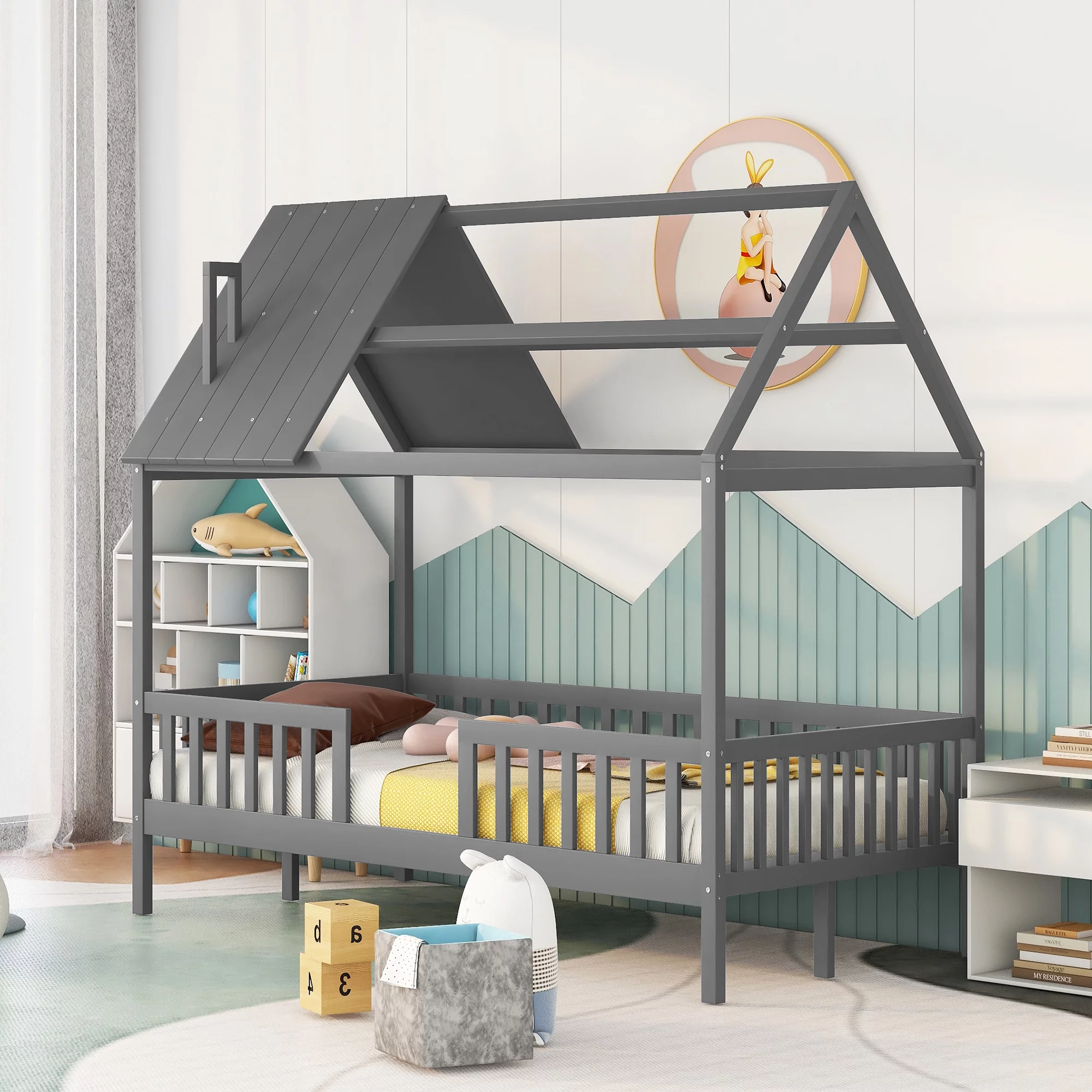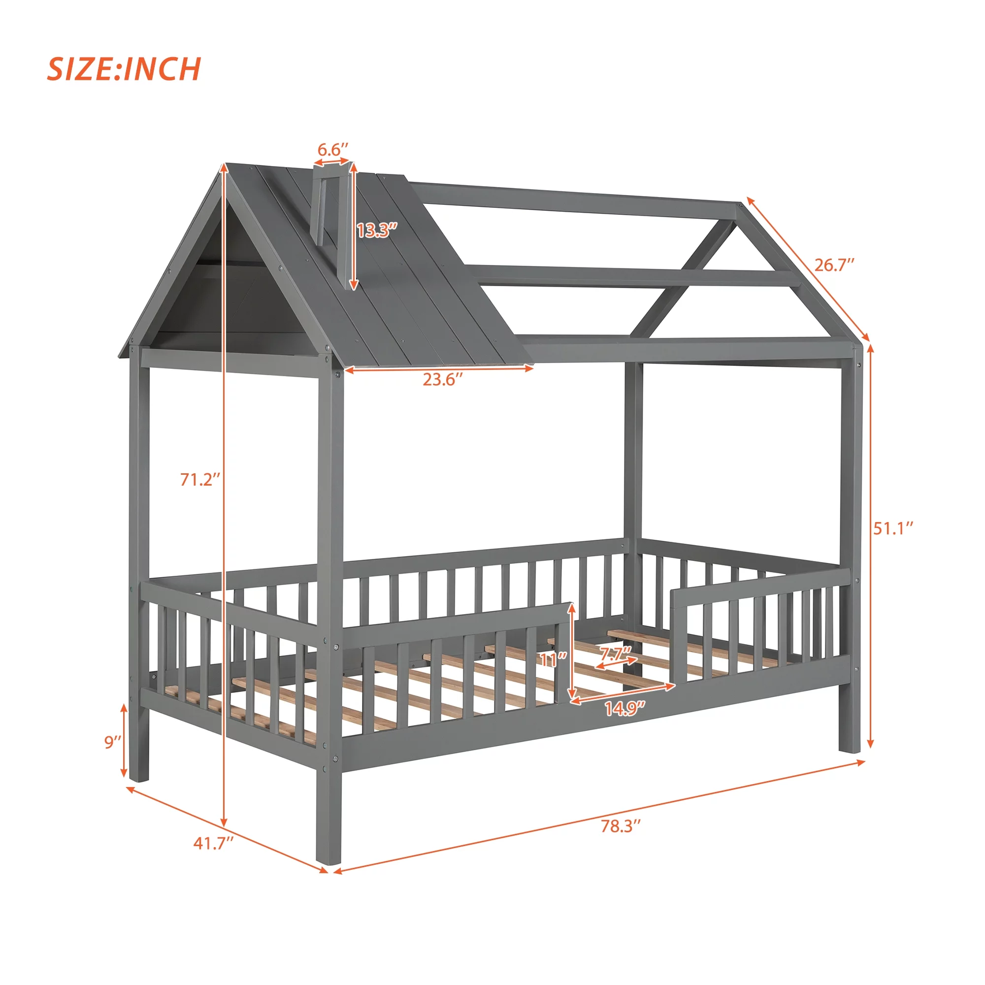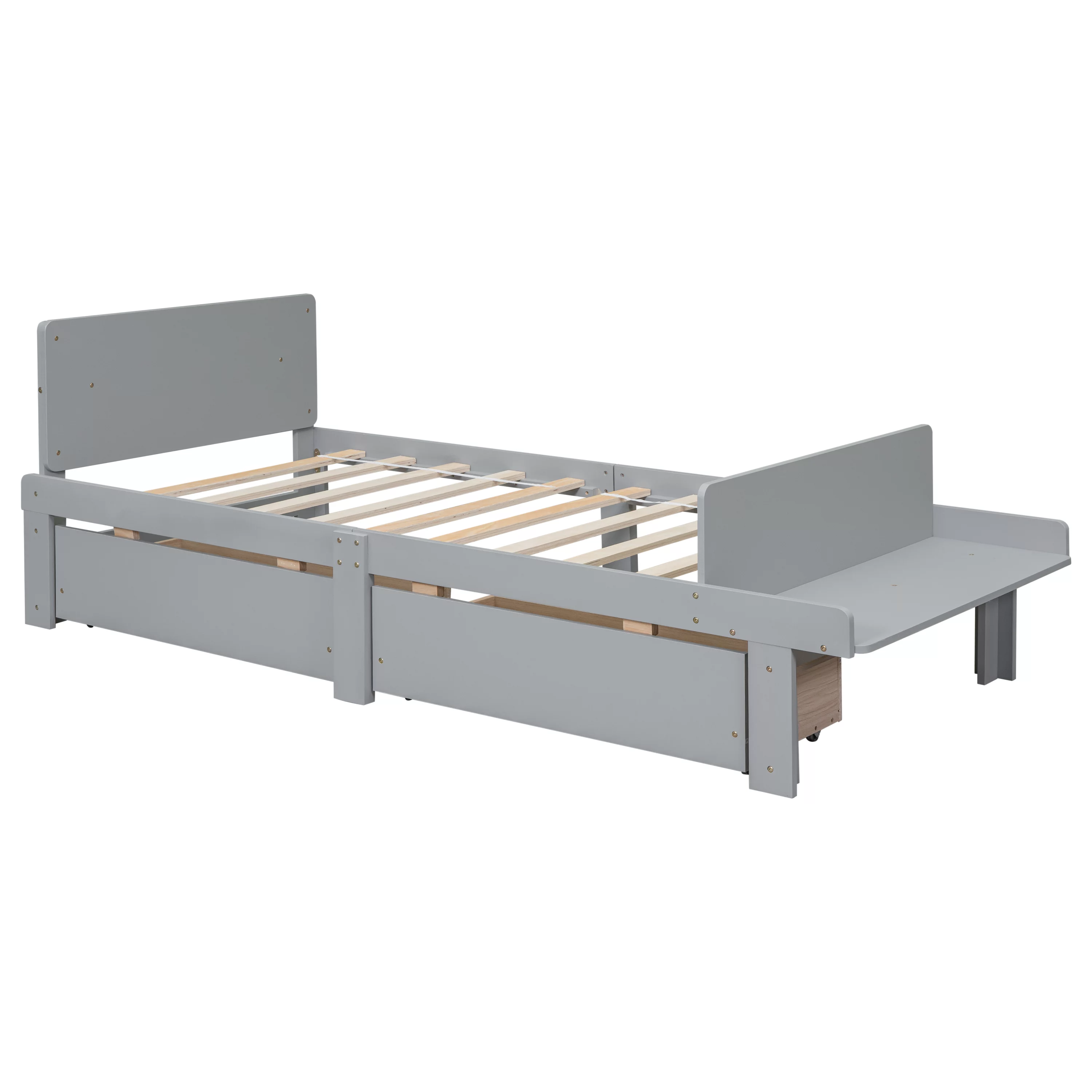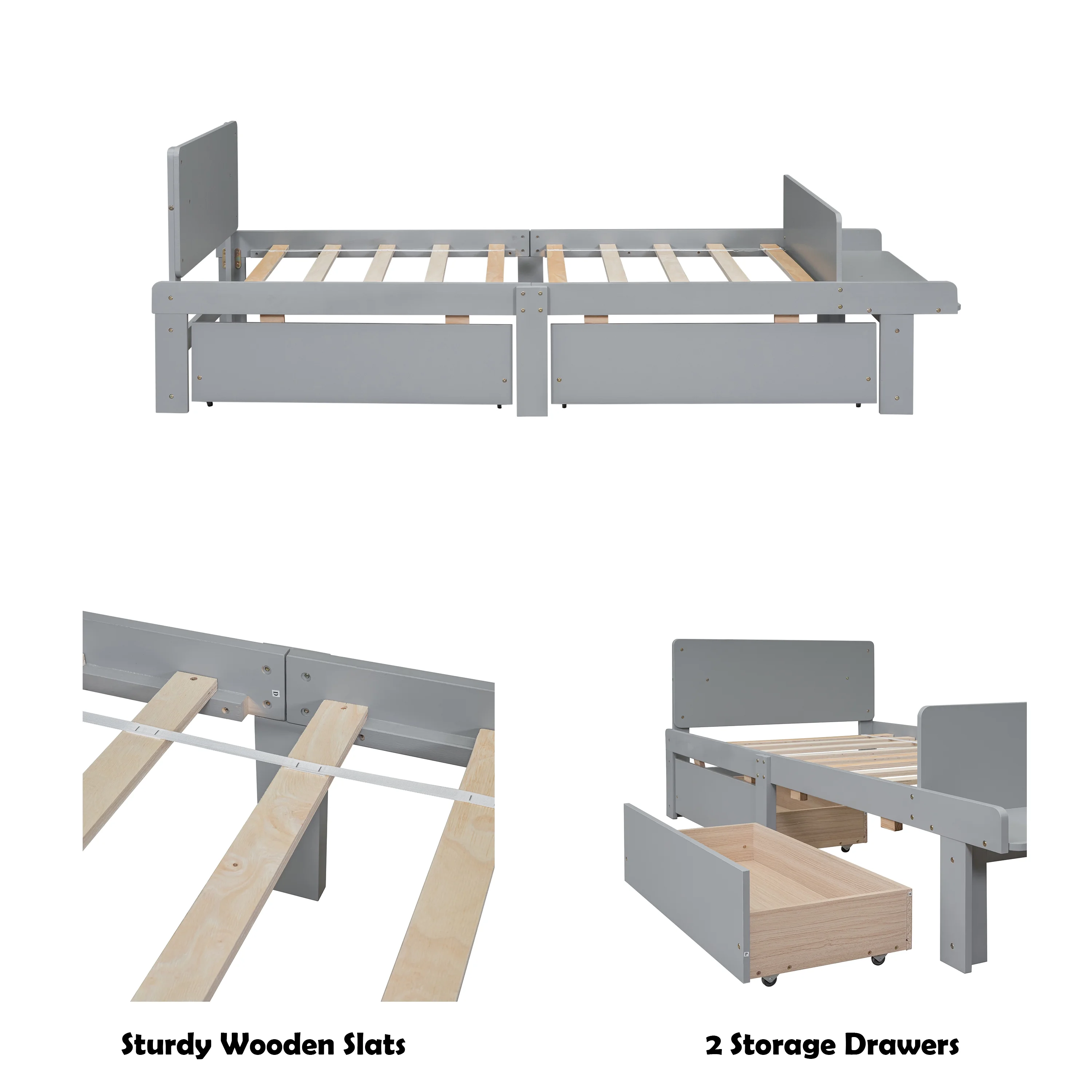 MERAX Full and Twin Size L-Shaped Bunk Bed with Slide and Short Ladder Grey