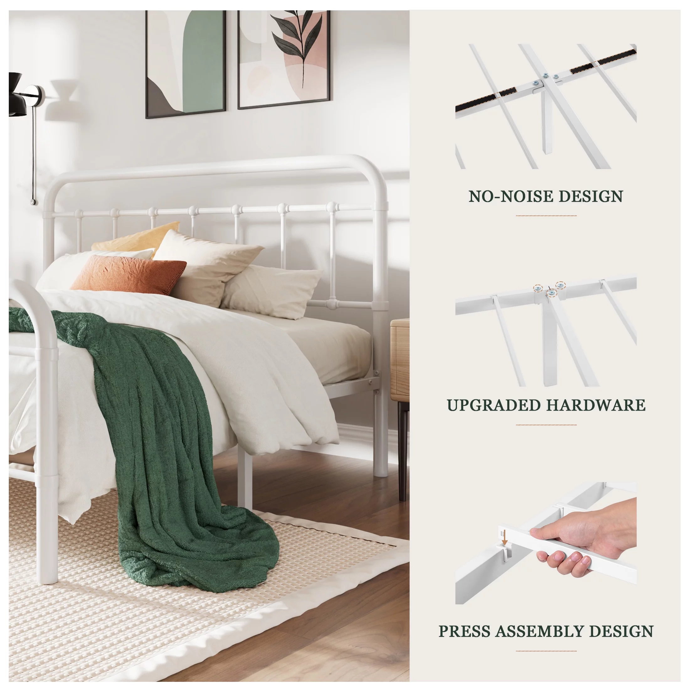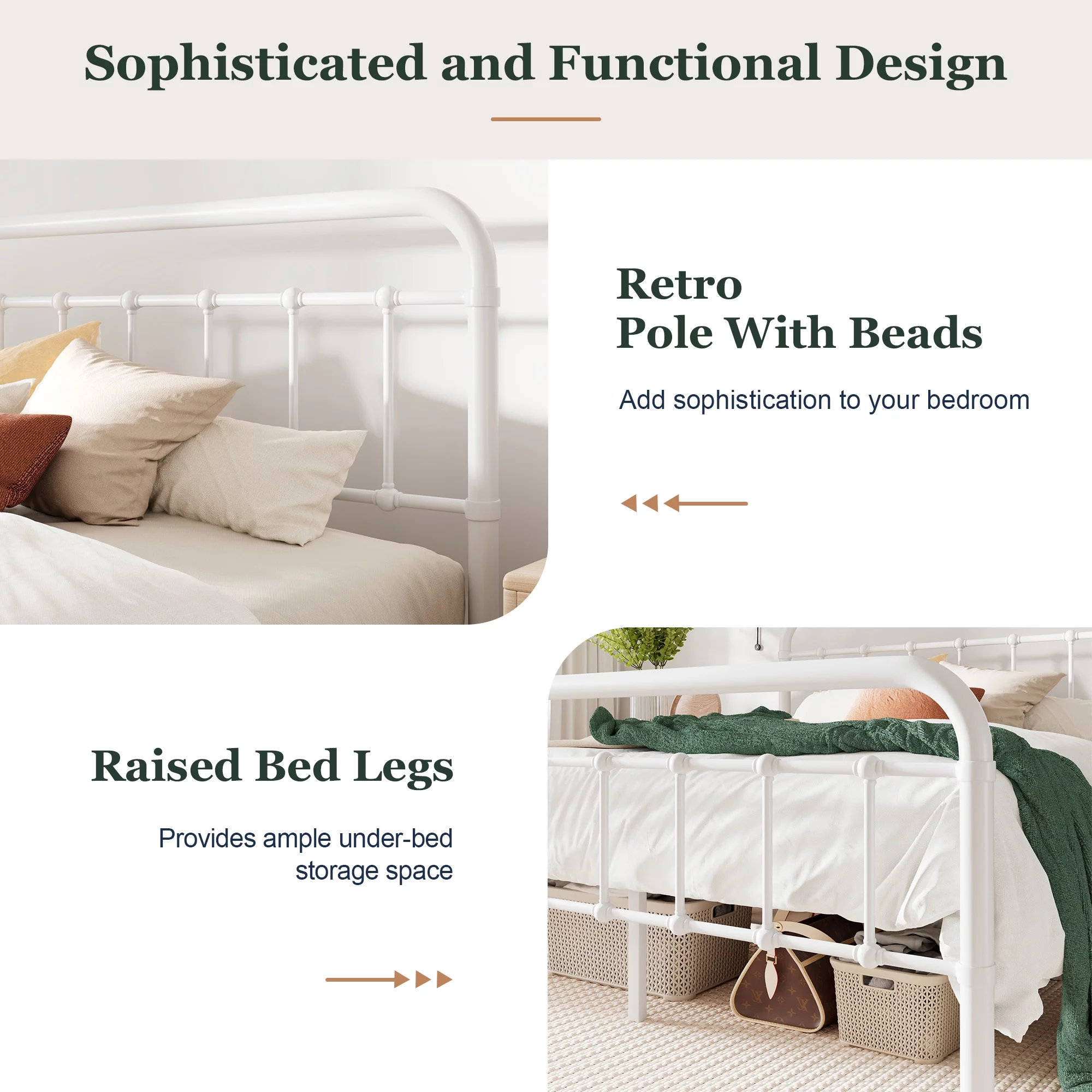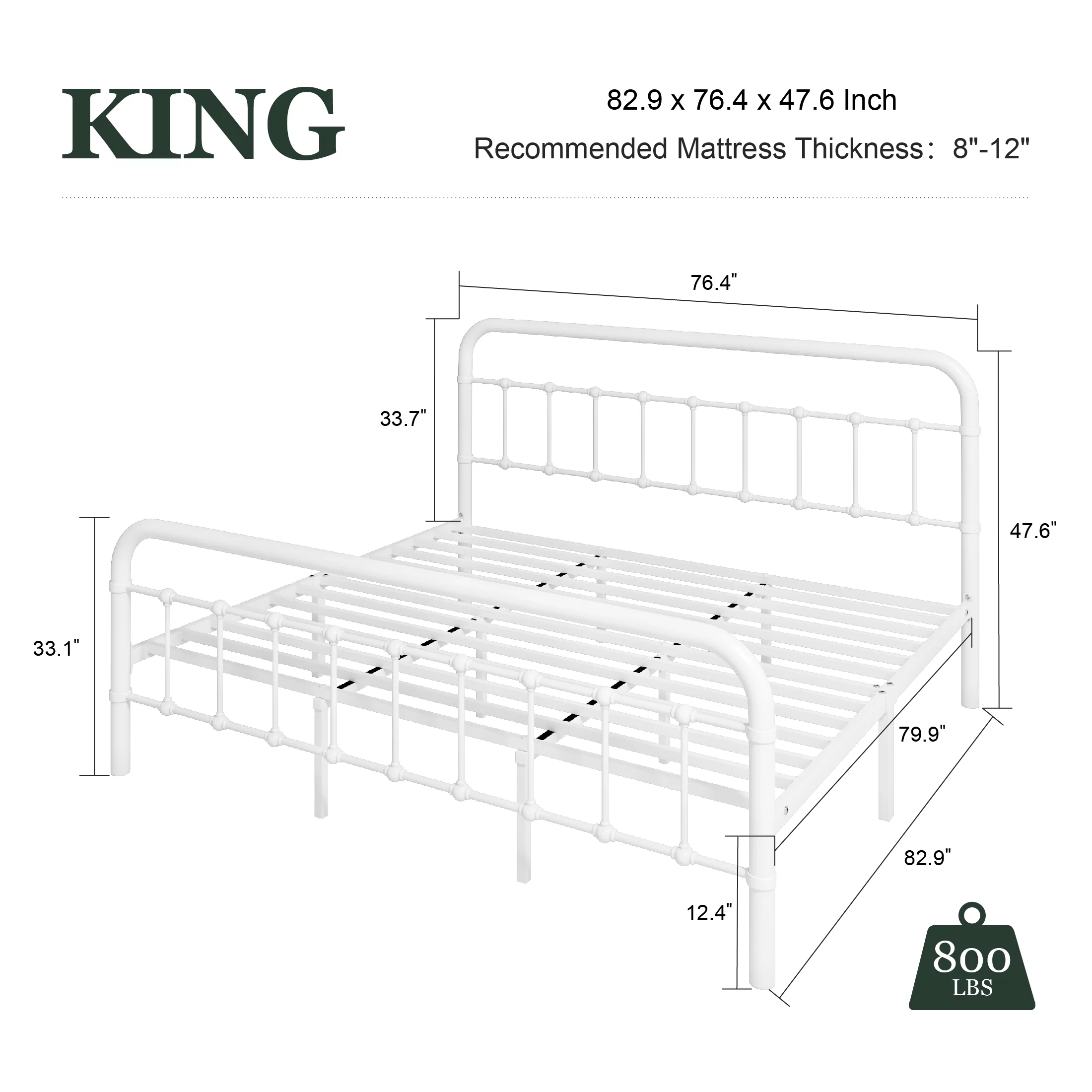 Amolife King Size Metal Platform Bed Frame with Vintage Headboard&Footboard, White